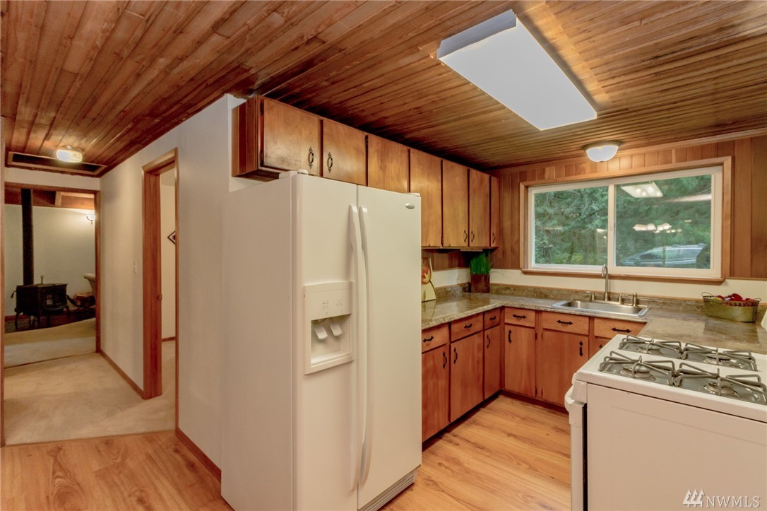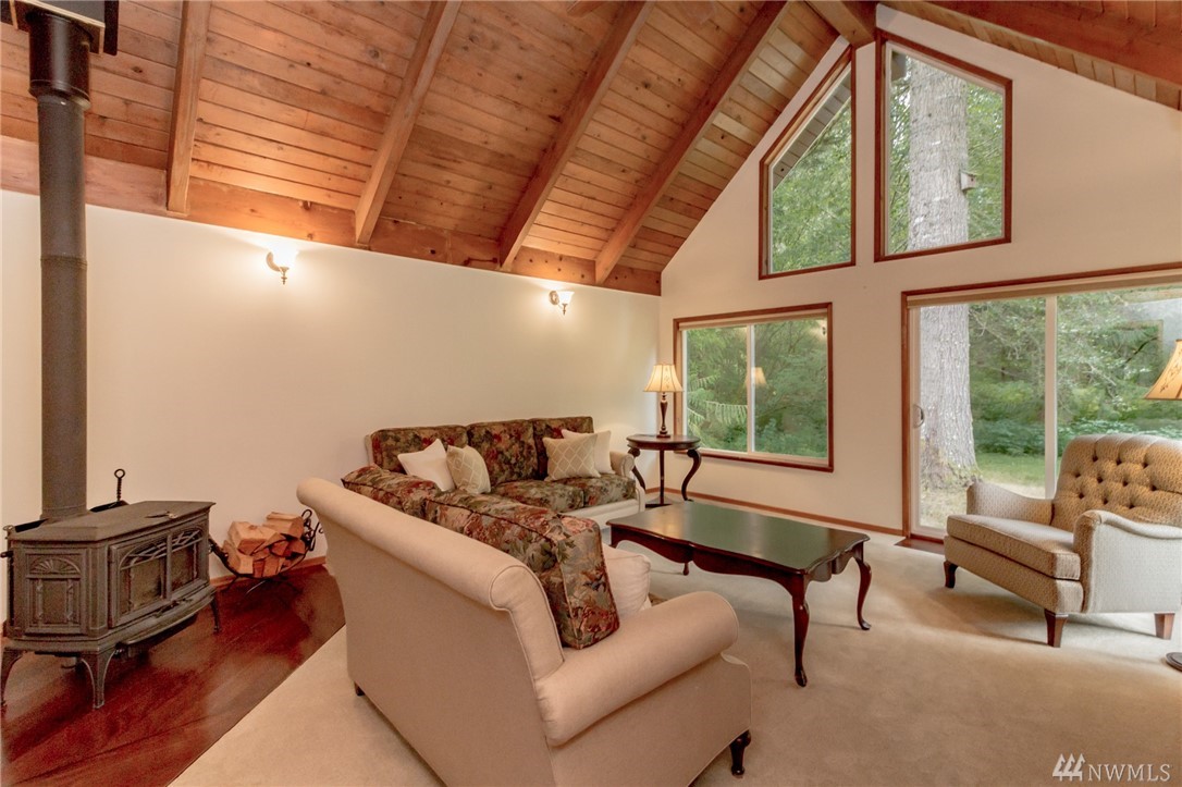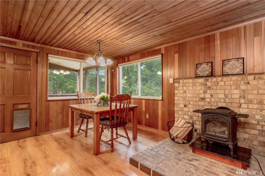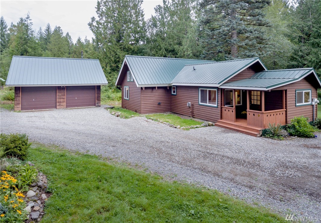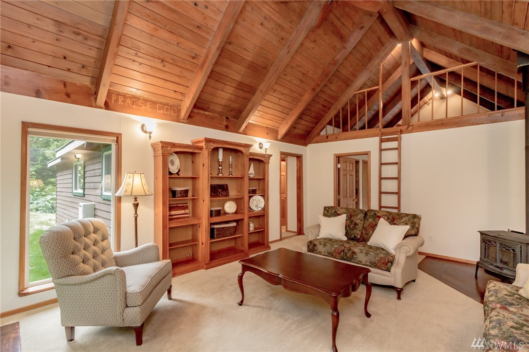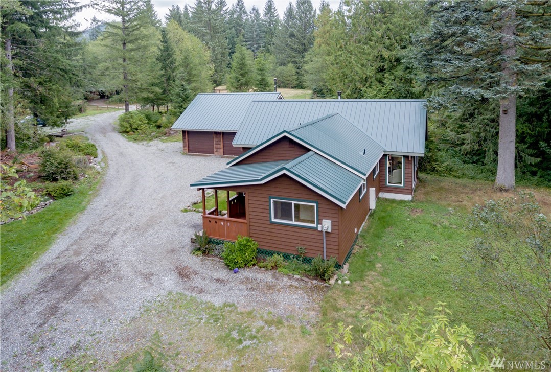Unique 10-acre retreat offers heavenly seclusion yet good access to Covington-Kent-Renton area. Warmly inviting, spotless and move-in-ready: fresh paint, new carpet, solid panel doors and newer trim throughout. Vaulted ceilings & loft add to the charm. Newly refinished exterior with insulated (R41) 50 yr metal roof, double pane vinyl windows & filtered water system. Detached, insulated, stove-heated garage/shop with storage loft. Level property offers fenced pastures, 2-stall barn, garden space.
