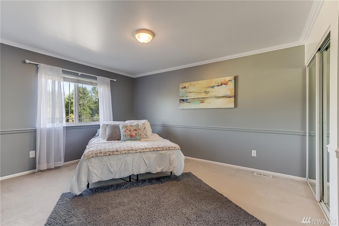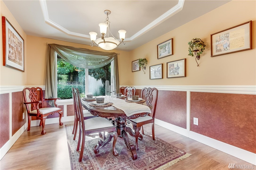 Made for entertaining! Get comfortable by the gas fireplace or host a dinner in the formal dining room that boasts coffered ceilings & wainscoting. Kitchen features granite tile counters, cabinetry w/ a built-in glass rack & a breakfast bar. 4 spacious bedrooms, including a master suite w/ a fully upgraded master & the ultimate finishing touch —a sliding barn door. Outside you’ll find the secluded backyard & party deck. Huge 3-car garage w/ tons of storage & bonus room over garage
