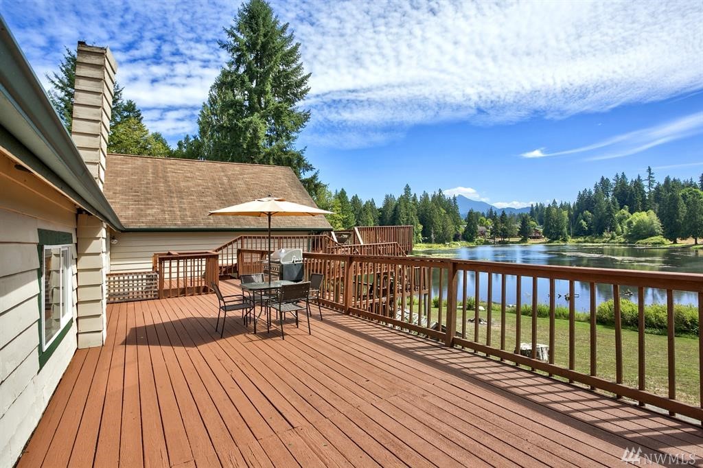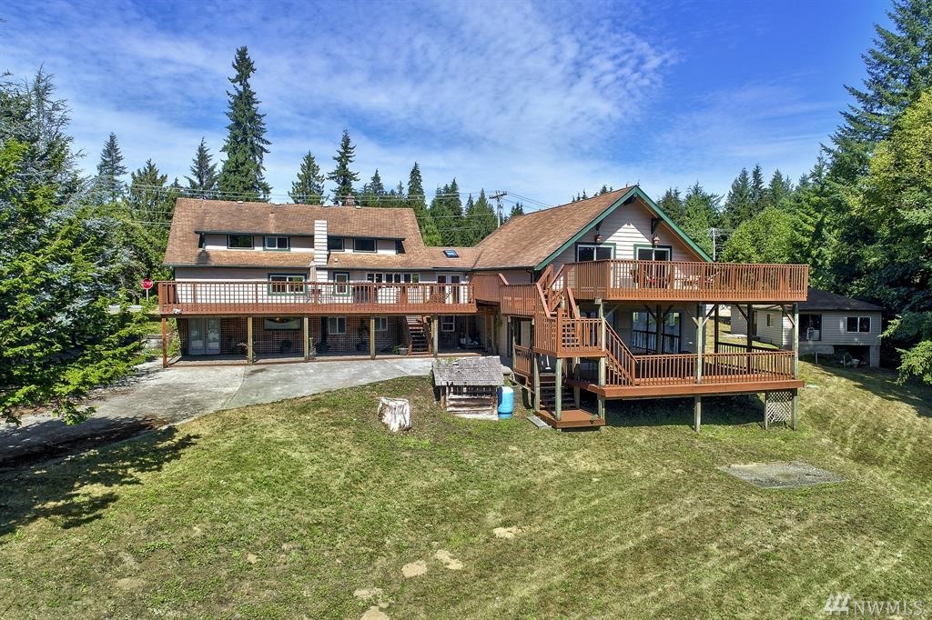 Peaceful Lake Front Home w/ Cascade Mountain Views. Enjoy 200+ ft of waterfront living along Gardner Lake in Granite Falls in this updated 6000+ sqft home featuring 2 large family rooms w/ lake views, 2 master beds/ main floor & lower level. Lower level has a grand master bath /w travertine tile walk-in shower tub combo w/ additional rainfall shower head. 2 additional beds, w/ 3+ finished rooms. Large lake view kitchen, 2500 sqft multi-level deck, separate 700 sqft structure & poss MIL.