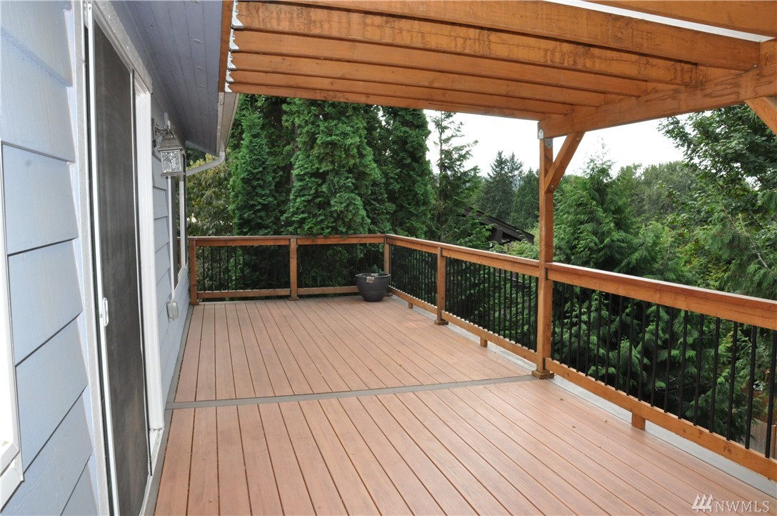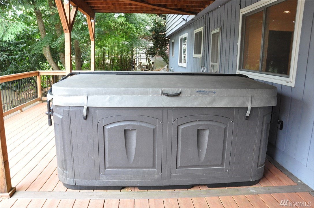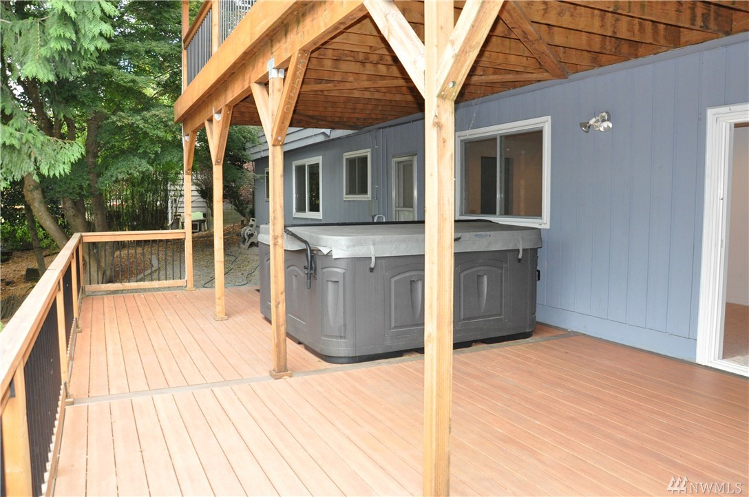 Spacious 4 bedroom home features a remodeled kitchen with granite counters and updated appliances. Newer windows/sliders, furnace, blinds and lights. Two master bedrooms, one up and one down for potential MIL. 2 car garage and expansive newer deck to enjoy territorial views and sunsets. 2 year old high-end hot tub in private backyard to relax in! Peaceful and quiet location on cul-de-sac in award winning Northshore School District. Possible mother-in-law downstairs. Don't let this one get away!