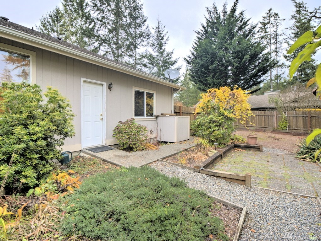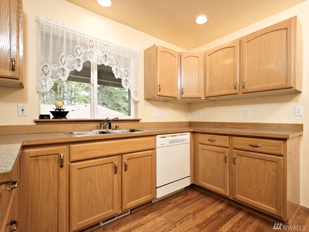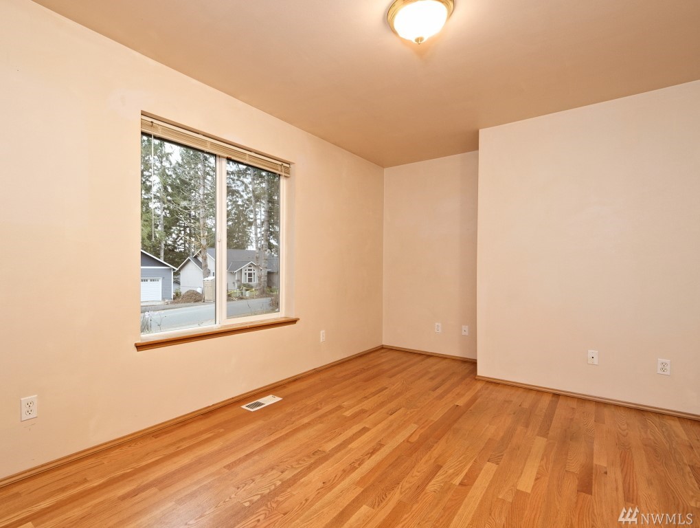One level living~LakeLand Village Golf Course community. Split floor plan & EASY change to 3 bedroom by adding closet doors to the "den". Hardwood floors throughout entry, kitchen, nook. Living area with fireplace & high ceilings, lots of natural light. Master has attached bath with two sinks, tub, separate shower. Beautiful gardens in fenced back yard, corner lot. Extra large garage includes utility sink. LakeLand offers golf, restaurant, private trout stocked lake, clubhouse, security patrol.