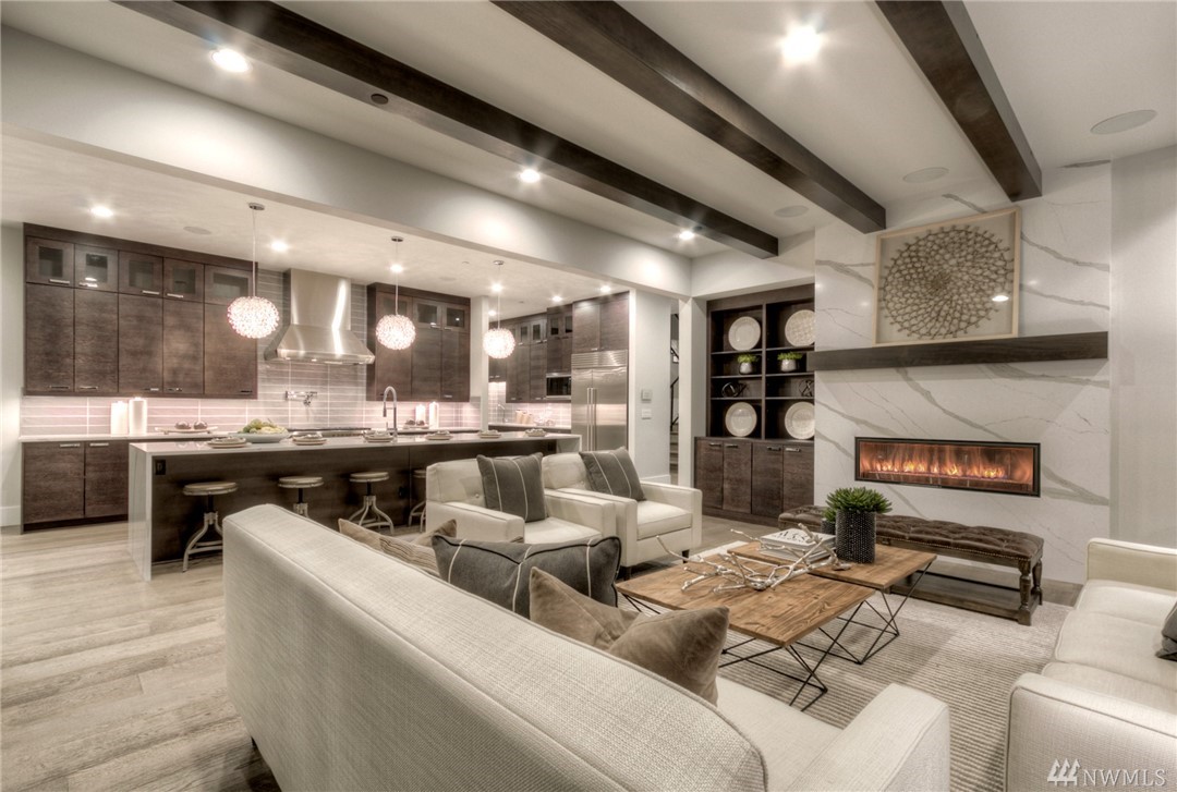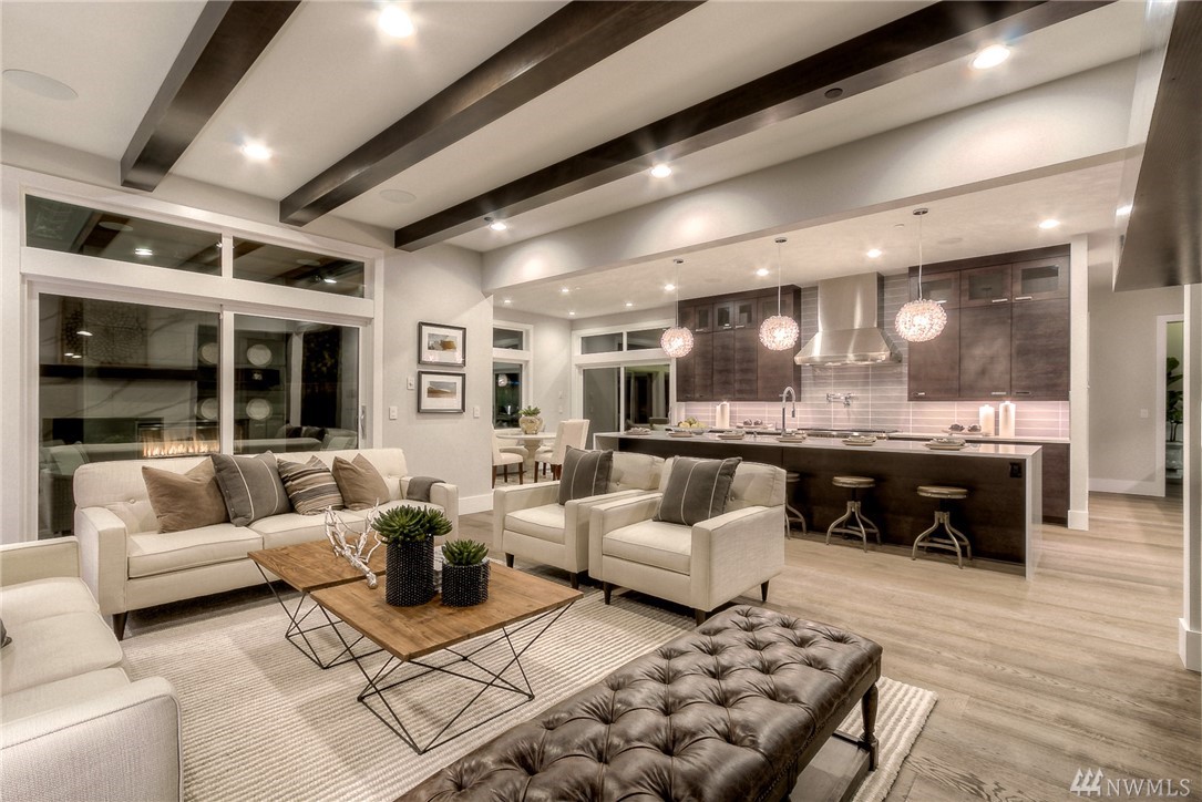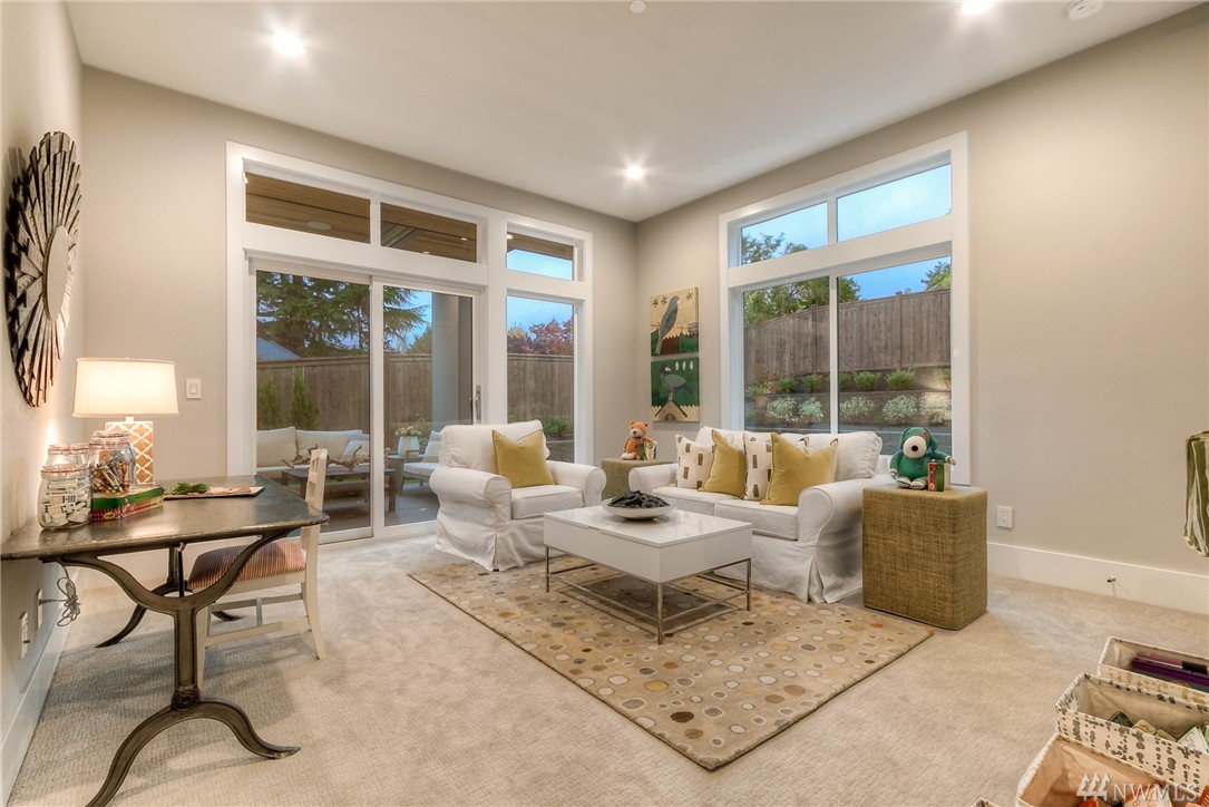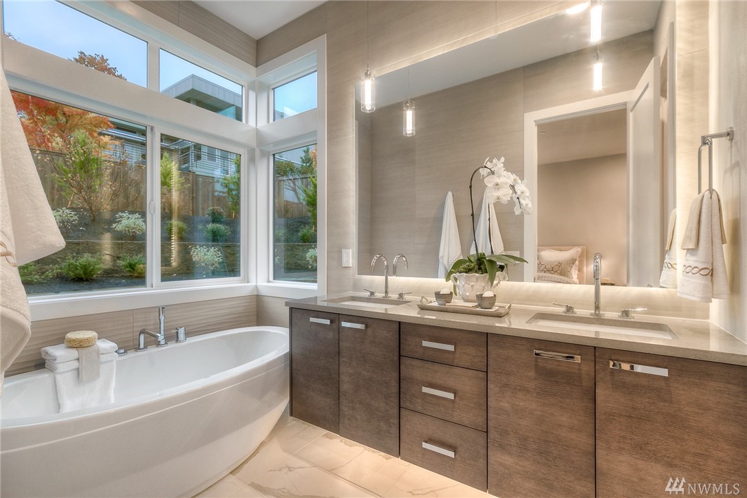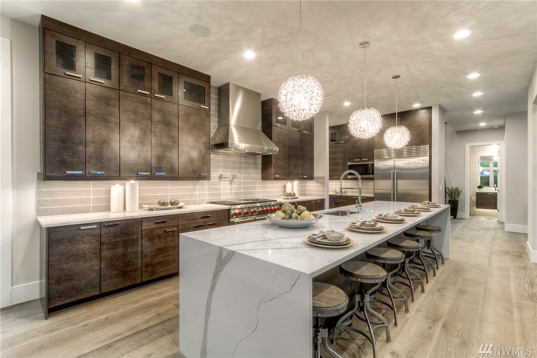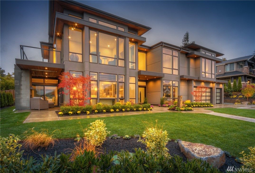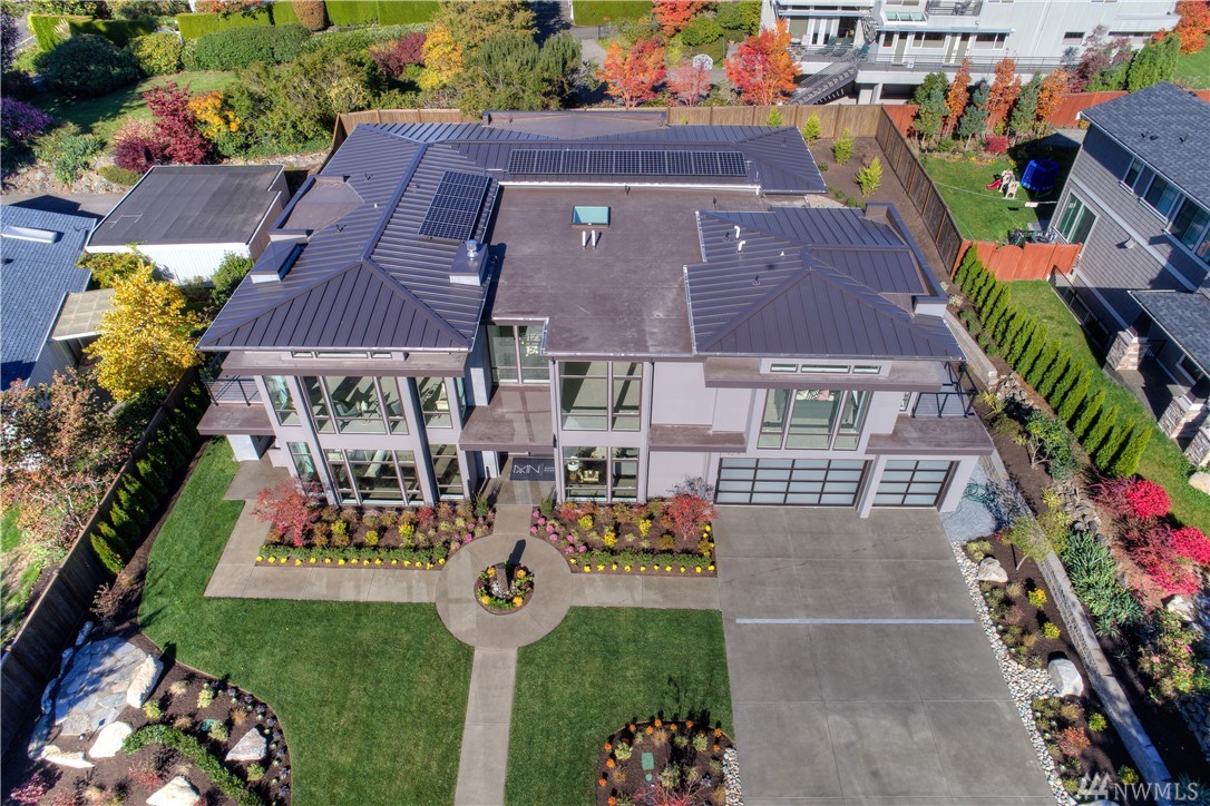 MN Custom Homes presents this stunning Contemporary on a private road. Green Home & Smart Home features throughout: solar panels, electric car charger, Alexa enabled garage doors, lights+power & much more. Main floor includes a guest suite, Sub-Zero/Wolf appliances, and 2 heated outdoor living areas. Master Suite includes fireplace, private deck, giant walk-in closet & spectacular Bath. Additional rec rooms include a Theatre, bonus play rooms. Nationally ranked Bellevue Schools.