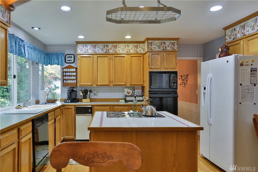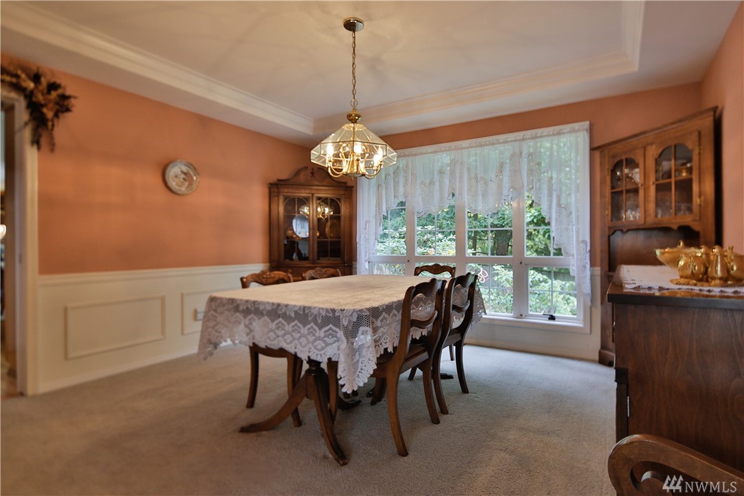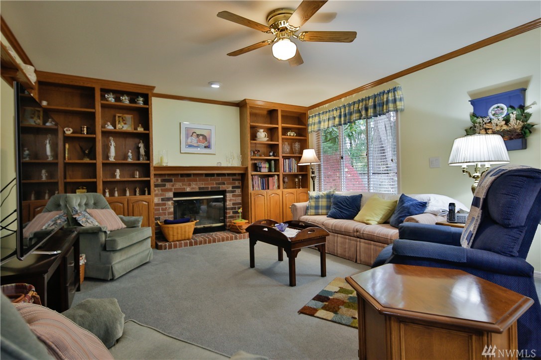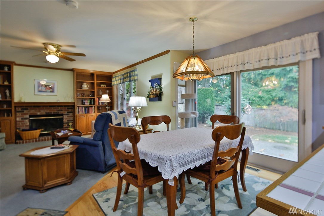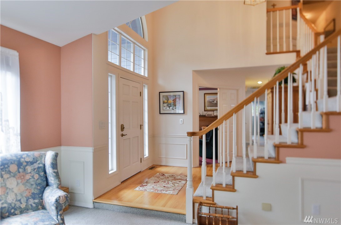 Schneider constructed home on cul-de-sac in a private, quiet upscale neighborhood. Open floor plan with vaulted ceilings, formal entry w/ hardwood flooring, formal living & dining room, expansive eat-in kitchen opens to family room w/ built-in shelving & gas fireplace, easy access to private entertaining patio, den/office at entry w/ paned french doors. Enjoy the ease & convenience of the sprinkler system & gas generator. Close proximity to Seattle, Bellevue Airport, Sounder, parks & shopping.