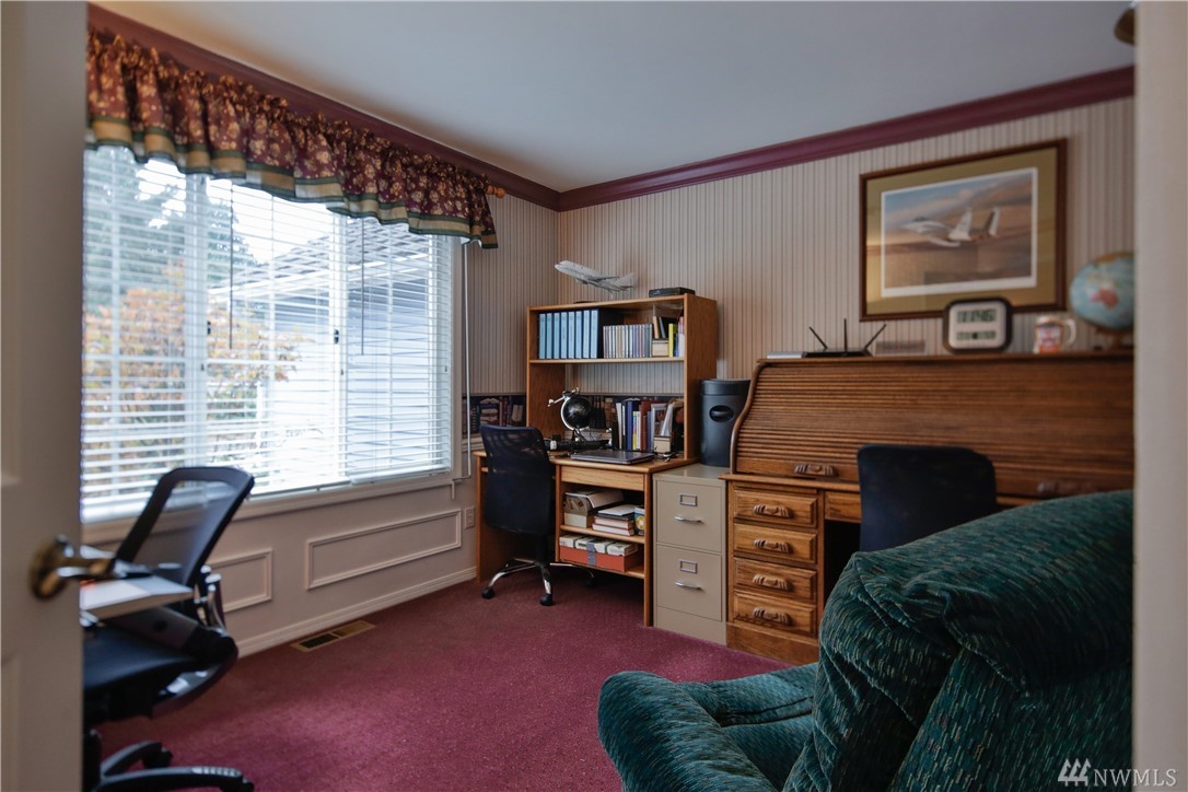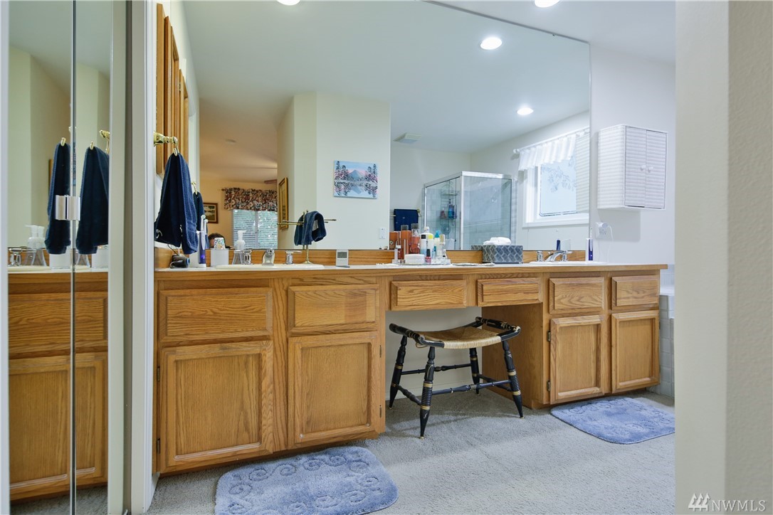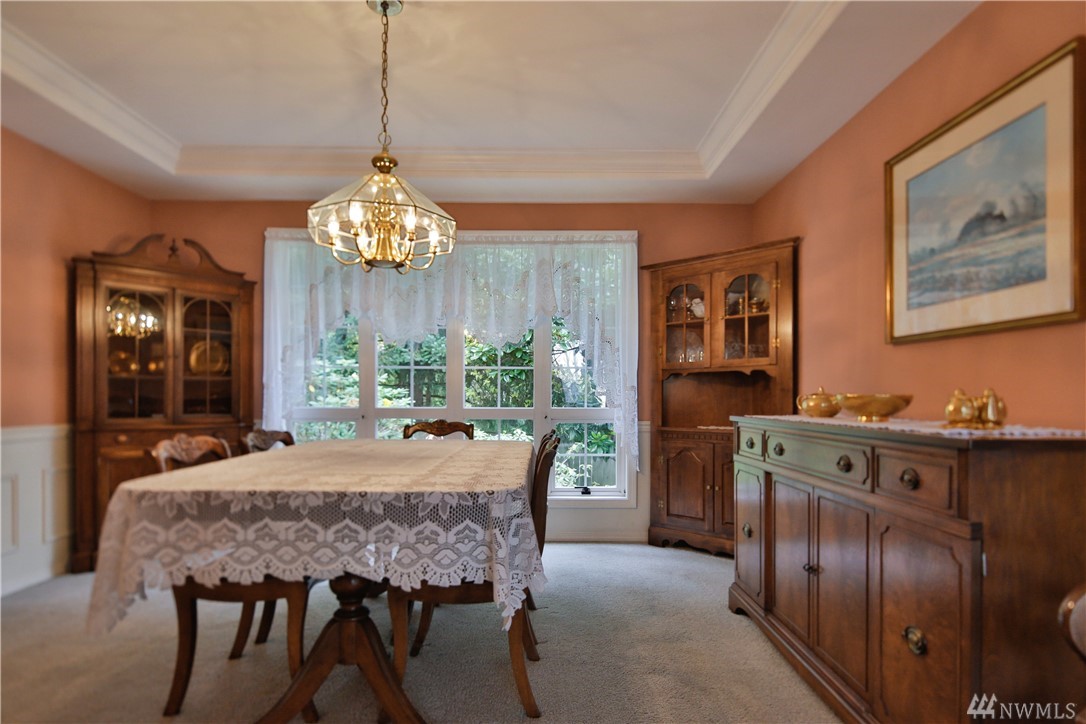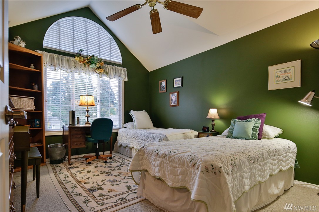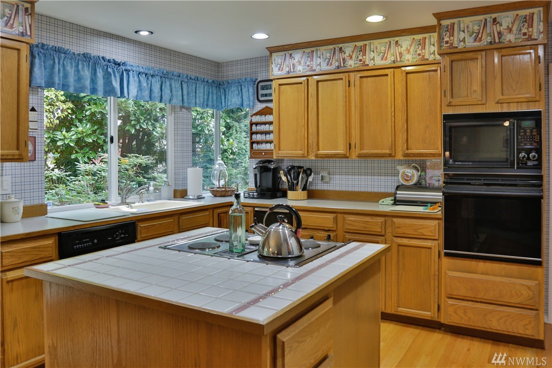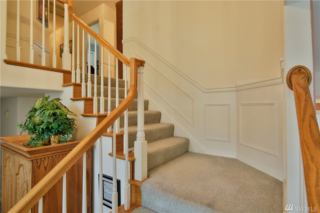 Schneider constructed home on cul-de-sac in a private, quiet upscale neighborhood. Open floor plan with vaulted ceilings, formal entry w/ hardwood flooring, formal living & dining room, expansive eat-in kitchen opens to family room w/ built-in shelving & gas fireplace, easy access to private entertaining patio, den/office at entry w/ paned french doors. Enjoy the ease & convenience of the sprinkler system & gas generator. Close proximity to Seattle, Bellevue Airport, Sounder, parks & shopping.