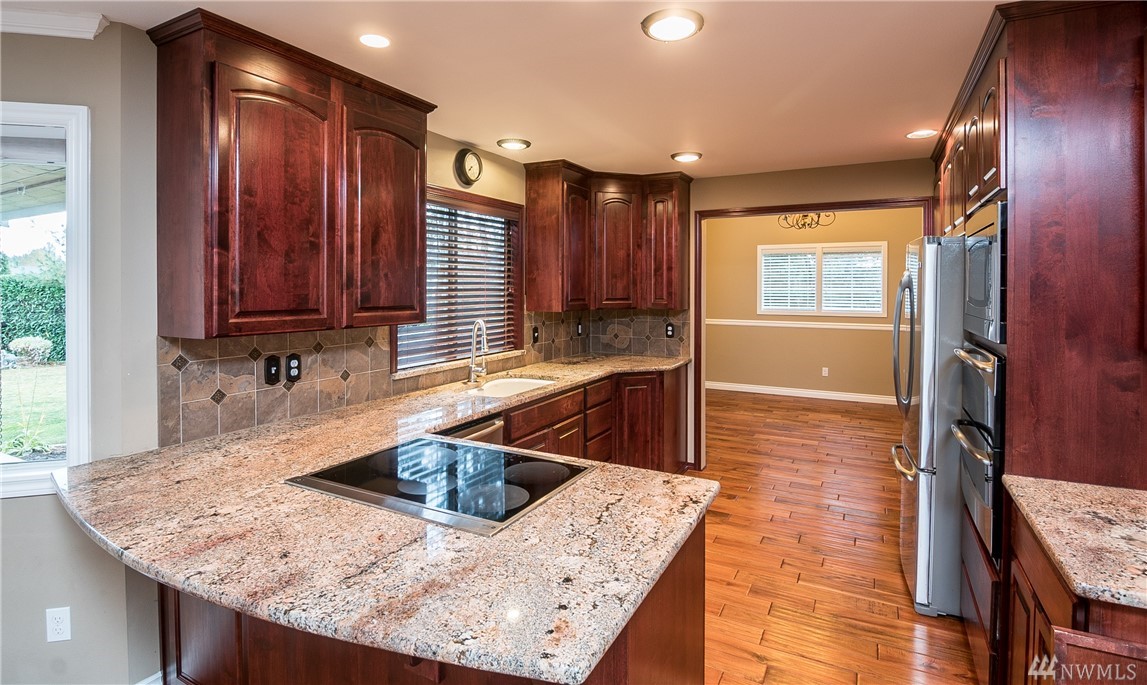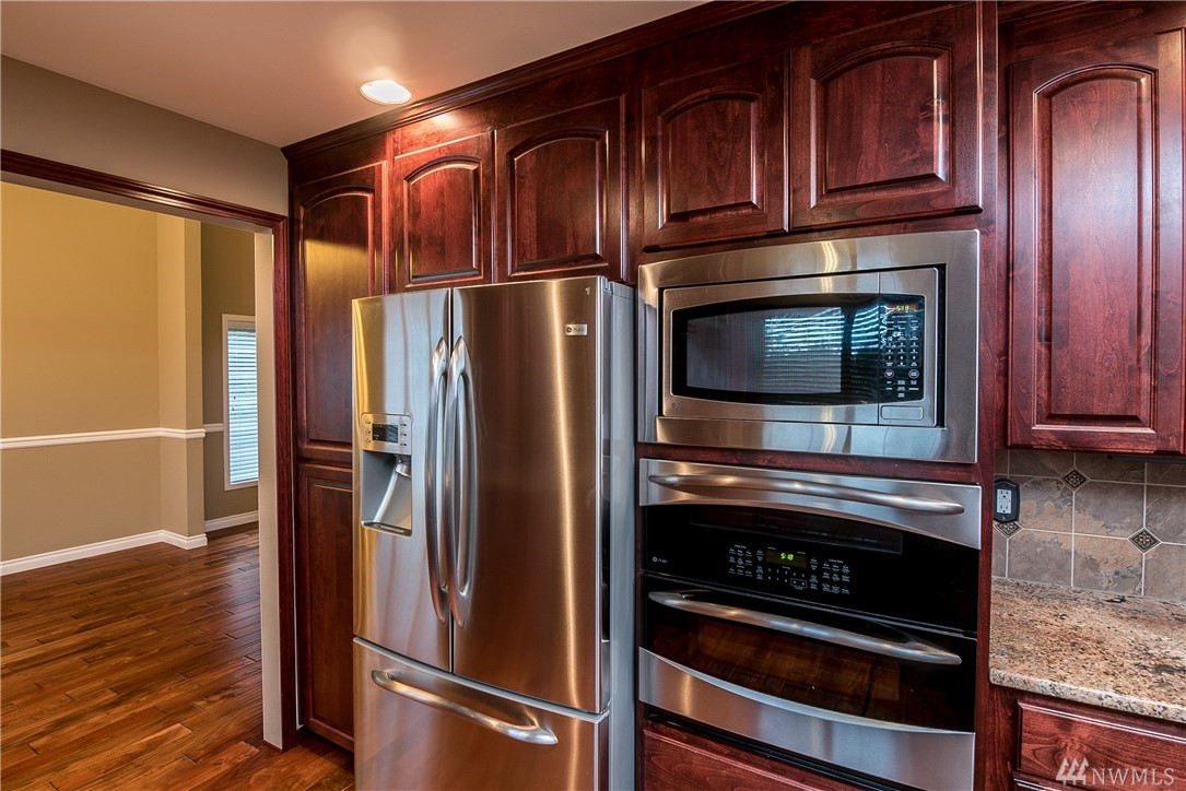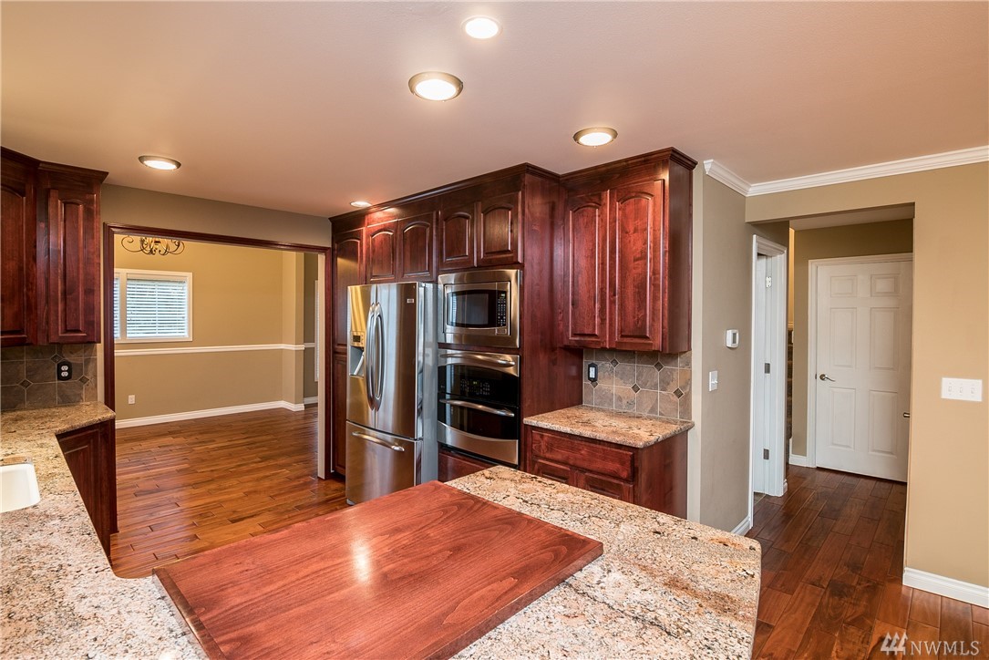 Spectacular home on 2 acres of outstanding property & detached shop. Craftsmanship shines throughout! Boasting hand scraped h/wood floors, vaulted ceilings, crown molding & staircase w/cast iron balaster, Lg eat in gourmet kitchen w/ granite, custom cabinets & ss appliances flows perfect to open concept family room w/ gas fireplace & french doors leading to a stunning yard & lg covered patio. Master w/5 pc bath, jetted tub & walk-in closet. RV parking, sprinklers, AC. Too many features to list!