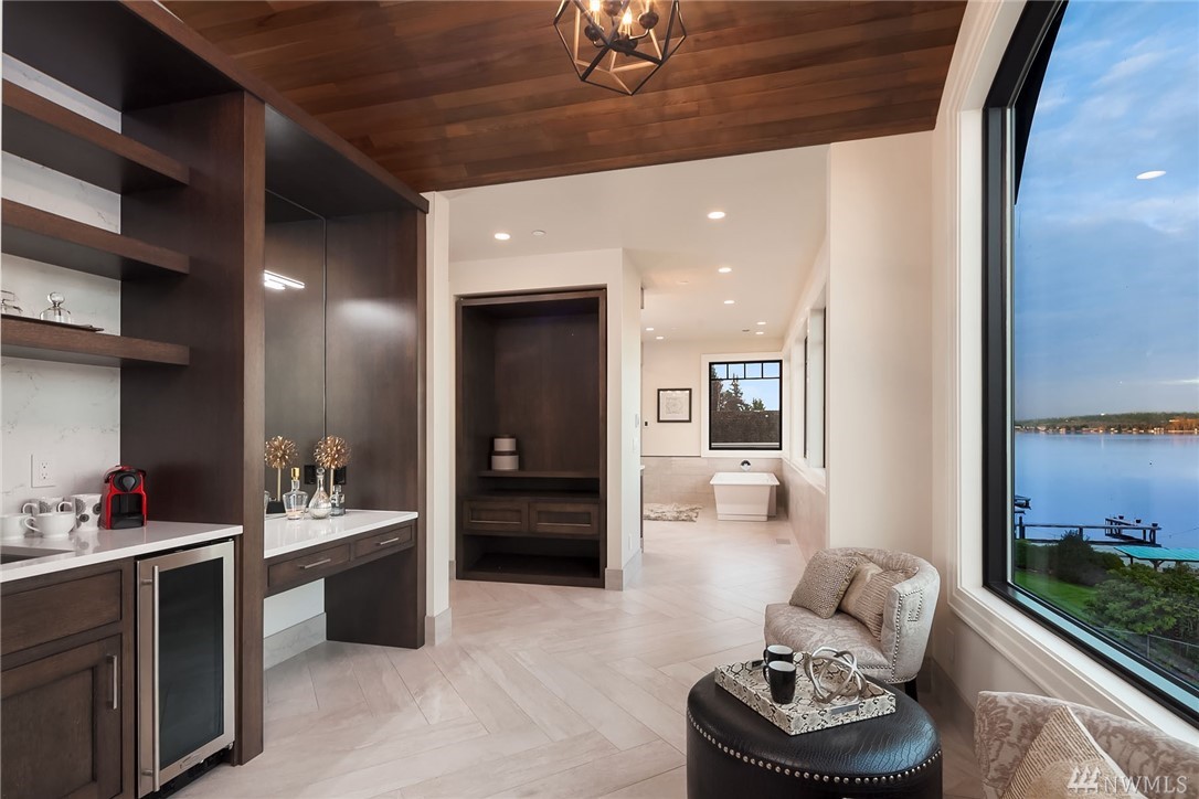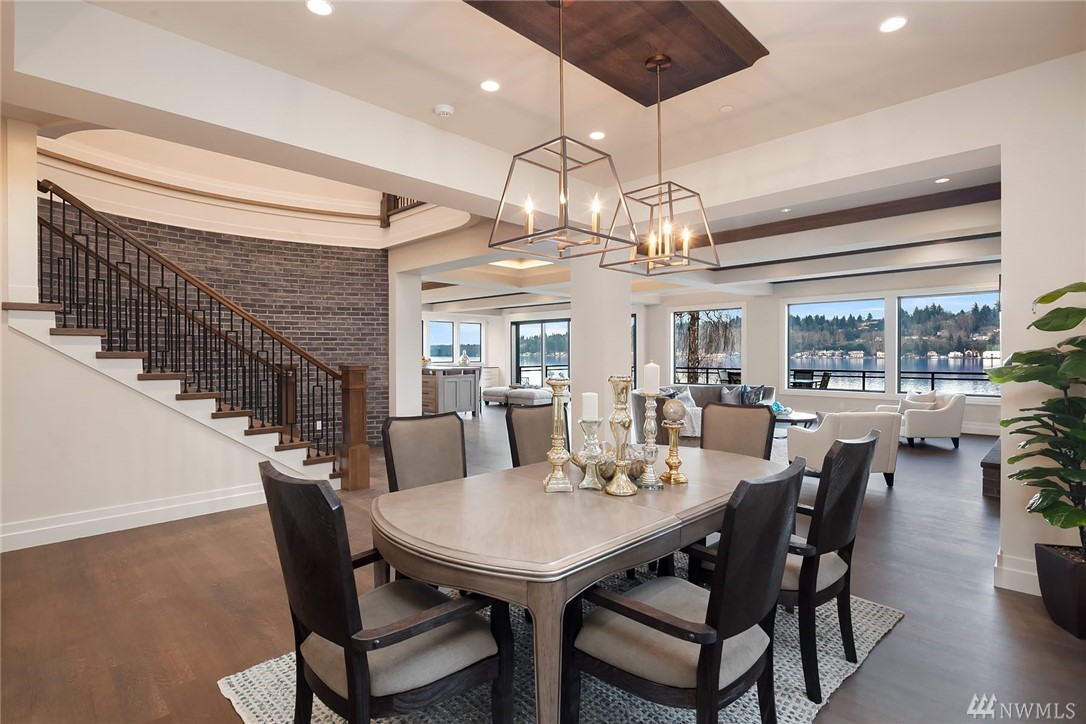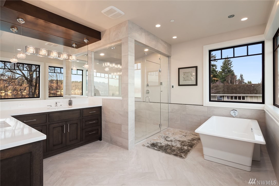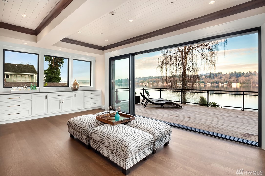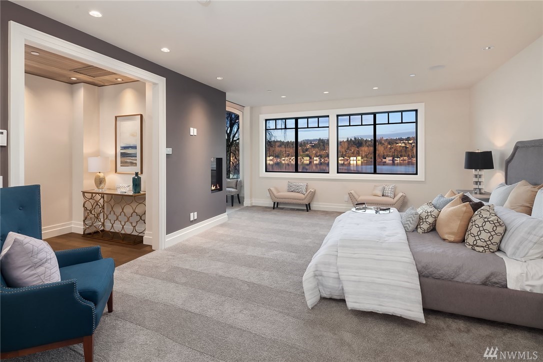 Waterfront living at its finest! Newly Constructed by Legacy Homes of WA. Classic architecture w/ a refreshing twist. Sweeping 180 degree lake views in the spa-like Owners Suite on upper floor. Second Master Suite on main. Elevator accessing 3 floors. The "Lake Room" on lower level is reminiscent of a world class resort where guests move freely between indoor & outdoor spaces for year round entertaining. Terraced lawn leads to new dock w/ deep water moorage & 75" of Lake WA shoreline.