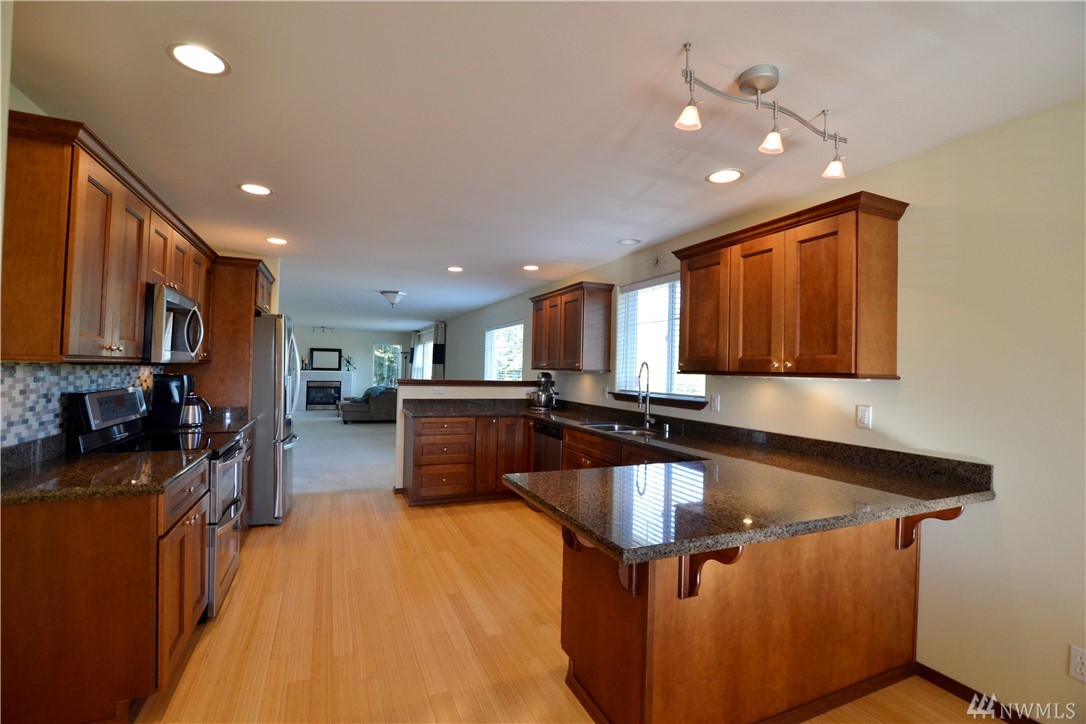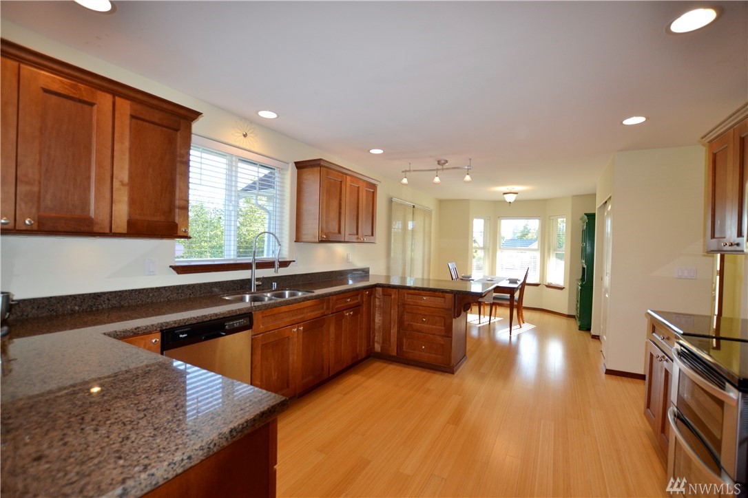 Meticulously maintained 3215 sq ft home with 4 beds, 3.75 baths and a 3 car garage! Main floor master with 5 piece bath/walk in closet, and an additional master bedroom upstairs. This home is an entertainer's delight with lots of airy space to host gatherings and a large patio off living room. Upgrades galore: gas fireplace, slab granite counters, bamboo flooring, double oven, roll up additional garage door to backyard, and more. Super close proximity to Rainier Vista Park for adventuring!