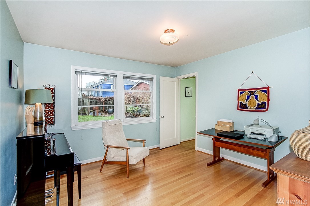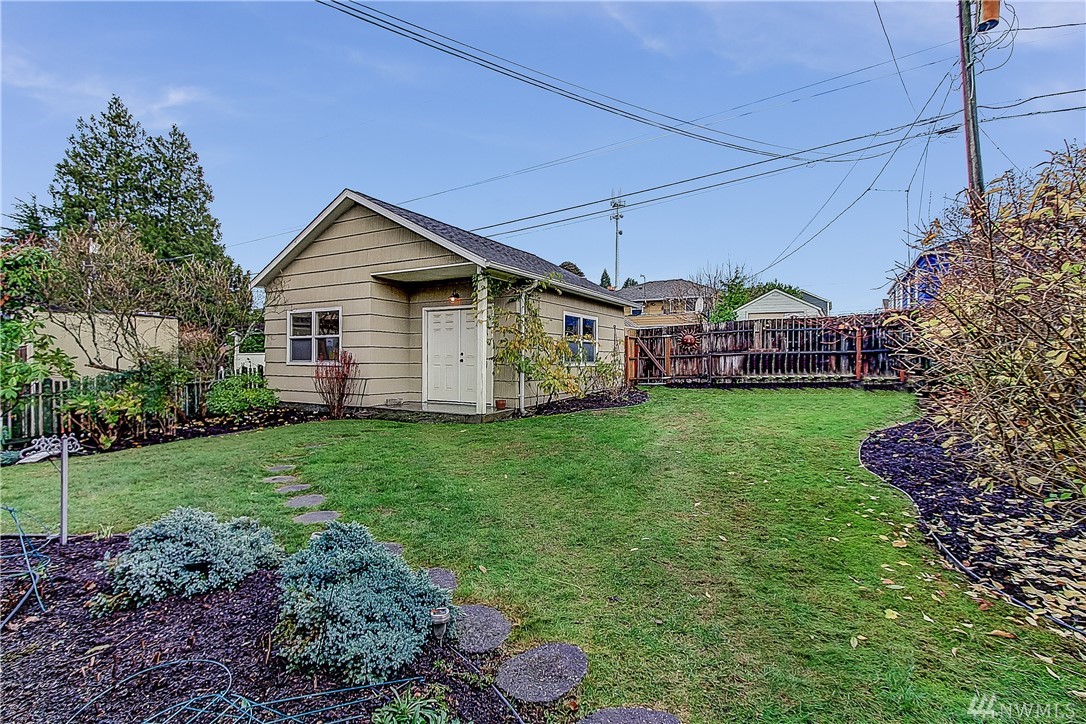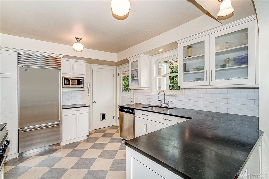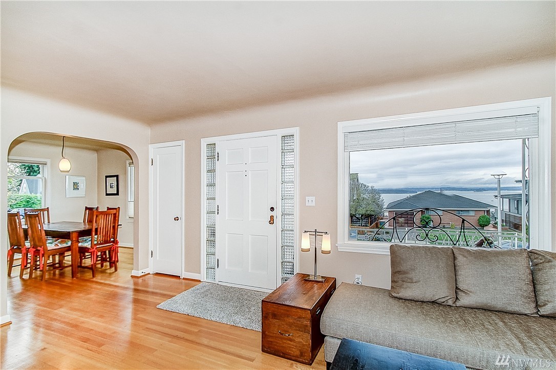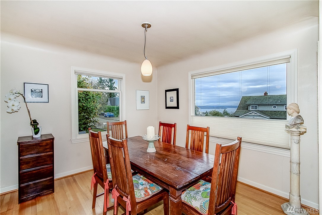 Majestic sunsets from the top of Gatewood Hill with Sound & Mountain views. Coved ceilings & hardwood floors grace the living & dining rooms. Inviting updated kitchen with quality stainless appliances and Viking Stove. Remodeled with white subway tiles, charcoal colored counters & marmoleum flooring. Upstairs master suite with a private bath & deck for enjoying the NW views. The full unfinished basement is ready for your vision. Mature landscaping beautifies the fenced in backyard.