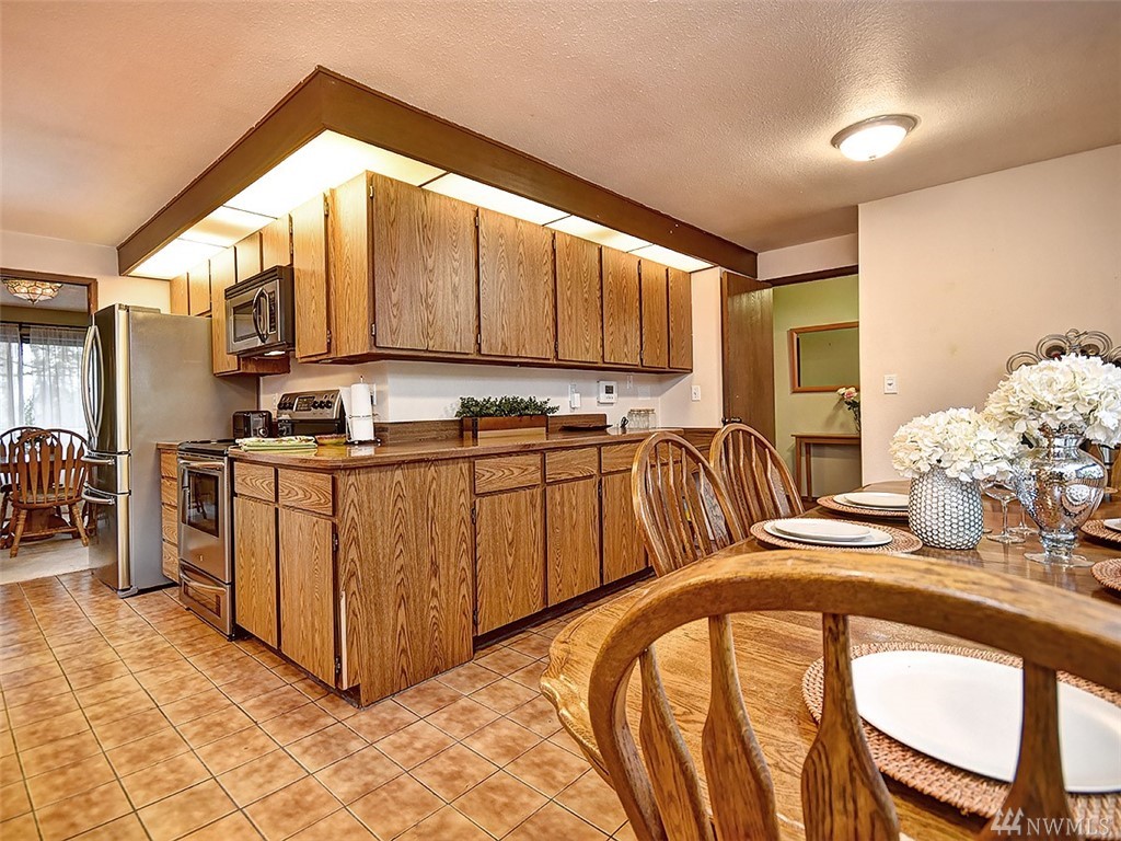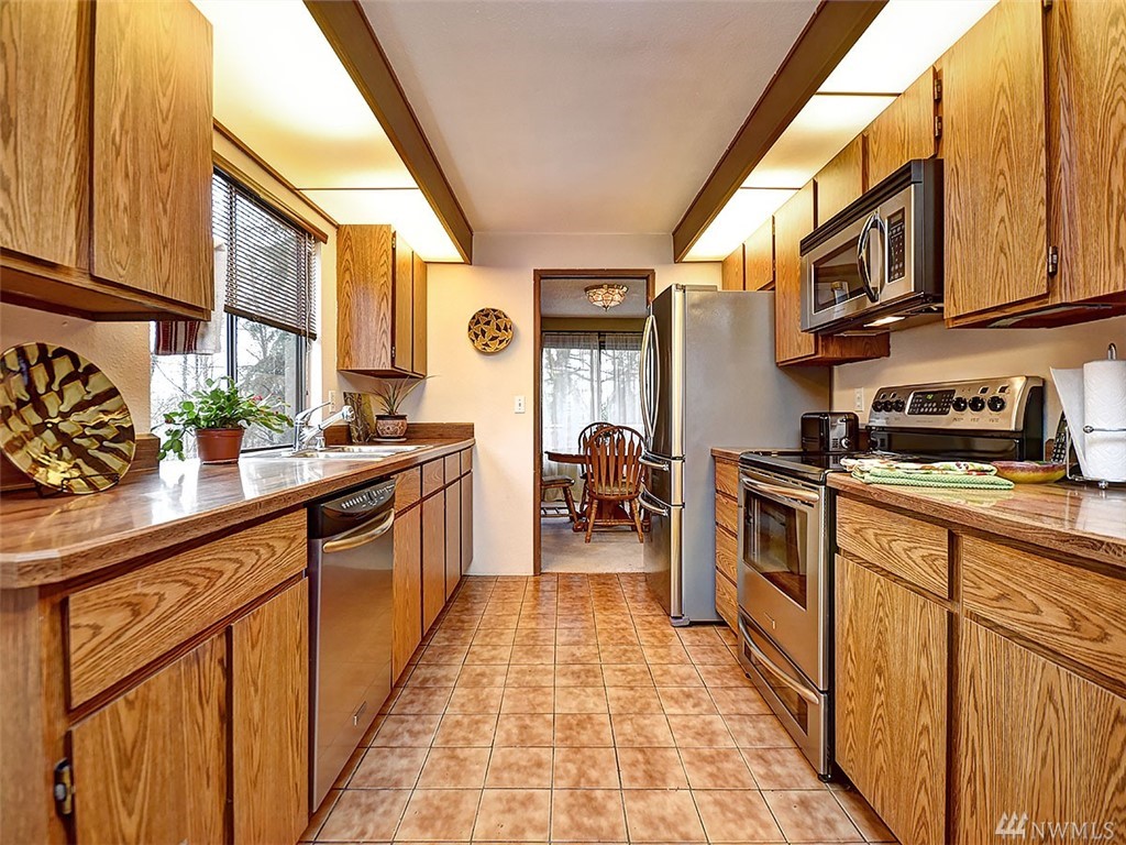 Spacious & lovingly cared for daylight basement rambler. Entertain in the large kitchen w/stainless appliances. Downstairs boasts a separate living quarters: private entrance, kitchen, rec room, 2 bedrooms, full bath & storage room. Updated Bathrooms. Park-like yard. Corner lot features a huge side yard, decks & additional parking pad. Next to a neighborhood park on a dead end street. Close to schools, library, shopping, dining & freeways. Great bones, huge potential! Bring ideas to add pizzazz!