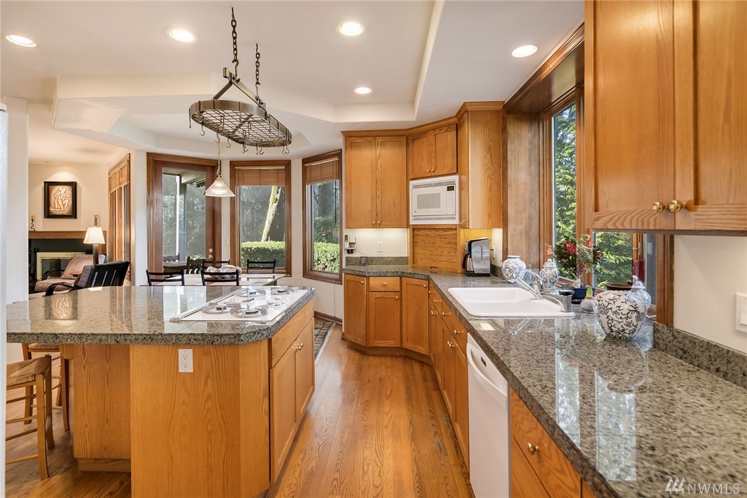 Fabulous Lakemont home 5 BR 3.25 BA + den situated on private lot backing up to tranquil Greenbelt w/partial lake view.Grand entry w/soaring ceilings welcomes you home.Bright open Liv Rm w/secret Rm behind bookshelf. Expansive gourmet kitchen w/center island & gas cooking.Hdwd flrs throughout main level.Elegant staircase to 2nd flr. Luxurious Mst Suite w/5 piece bath, dual shower heads & closets. Guest suite w/3/4 BA, 5th BR could be bonus/media Rm,lots of built-ins & storage.A great floor plan!