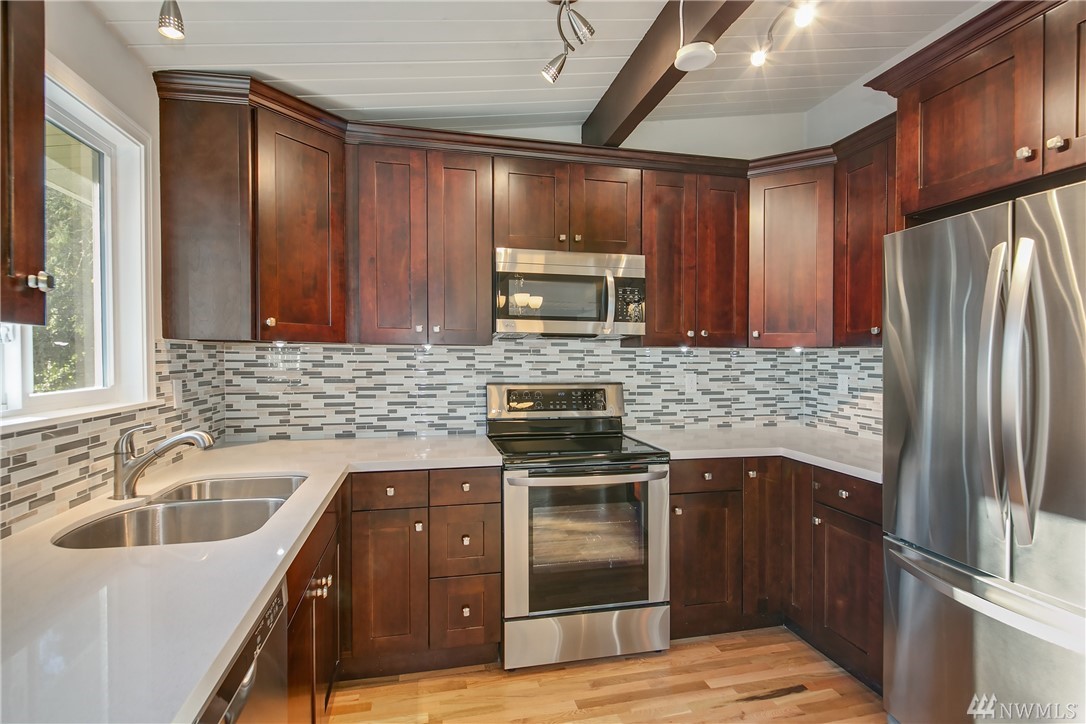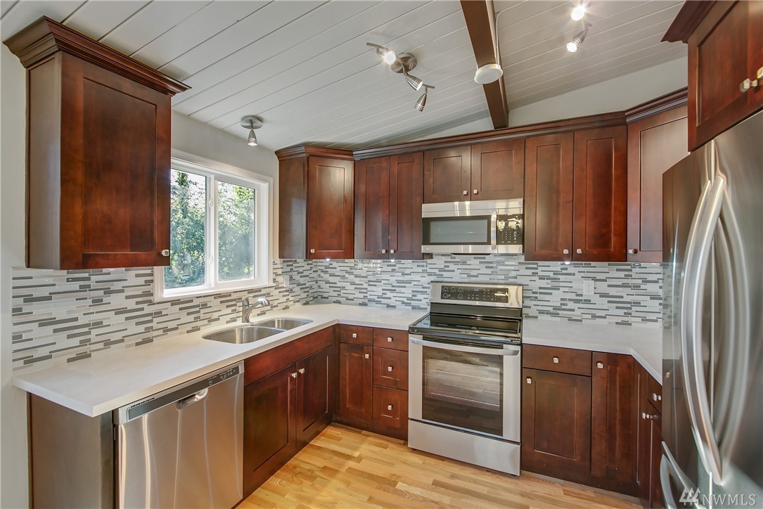 Sunrise Park rambler has been completely remodeled and updated and is in move-in ready condition. The kitchen has new granite counters, backsplash, plus stainless steel appliances. All bathrooms remodeled with new tile floors, vanity and fixtures. All new flooring, both hardwoods and carpet. Lastly, new roof, septic system, furnace plus windows were installed. The beautiful lot is over 15,000 sq.ft., and is level with a huge, fully fenced backyard. All this and a great location.