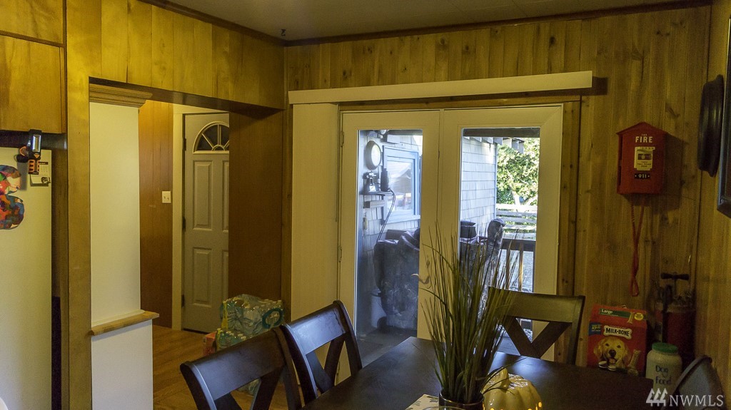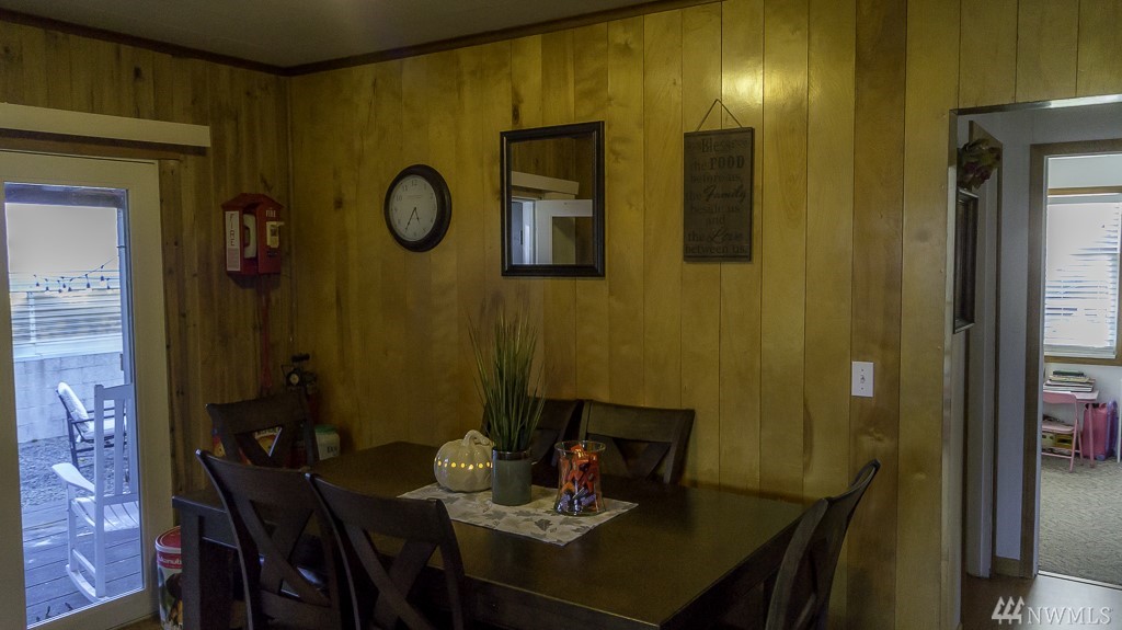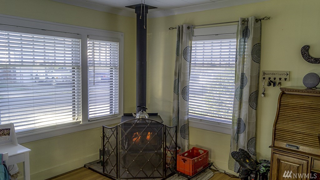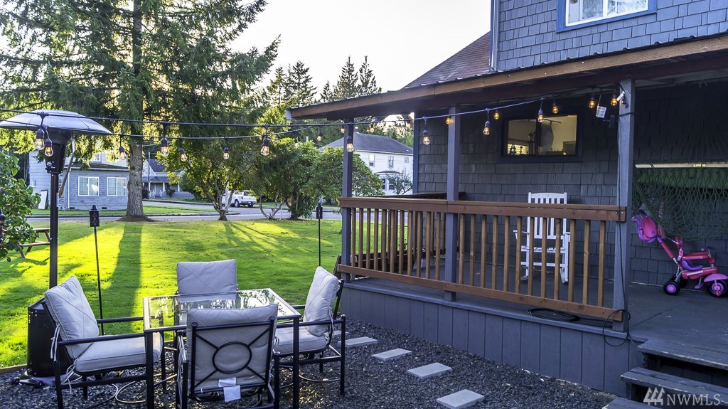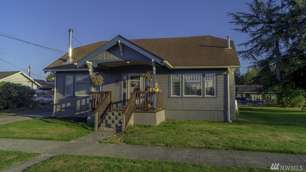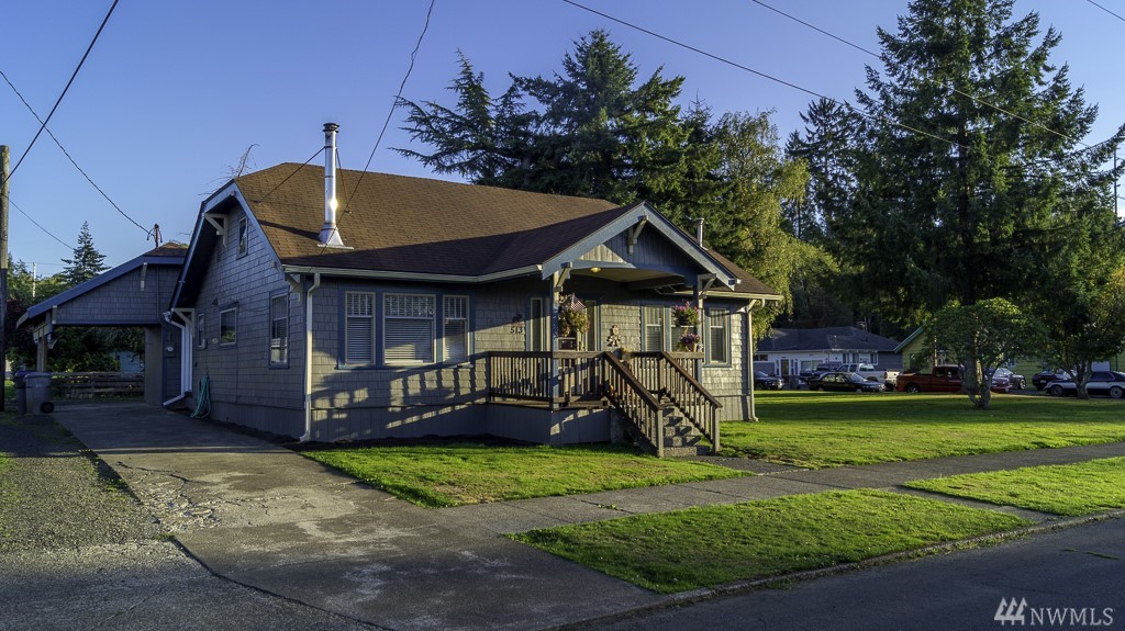 Nicely maintained 3 bedroom, 1 bath home on corner lot (4 lots) in Cosmopolis. This home features a recently updated kitchen, remodeled bath, formal dining with built-in glass pocket doors, wood stove, propane insert and hardwood floors. Outside you will find an inviting front porch, covered back porch with French doors, attached carport, alley access, newer outside paint and an additional outbuilding provides extra storage with multiple functions