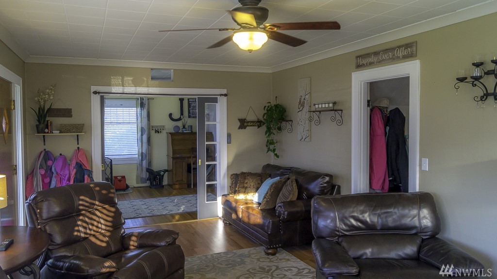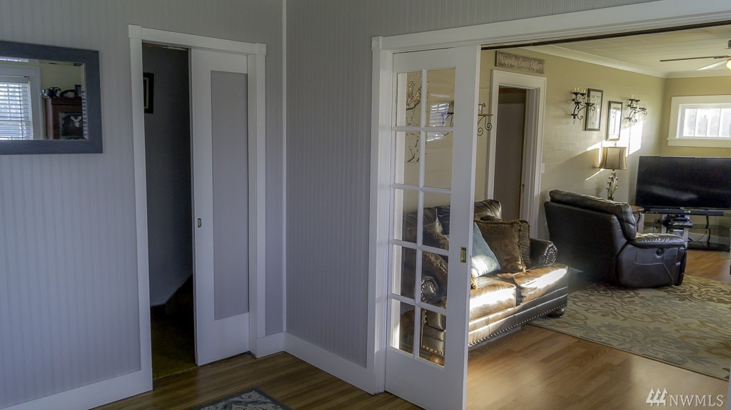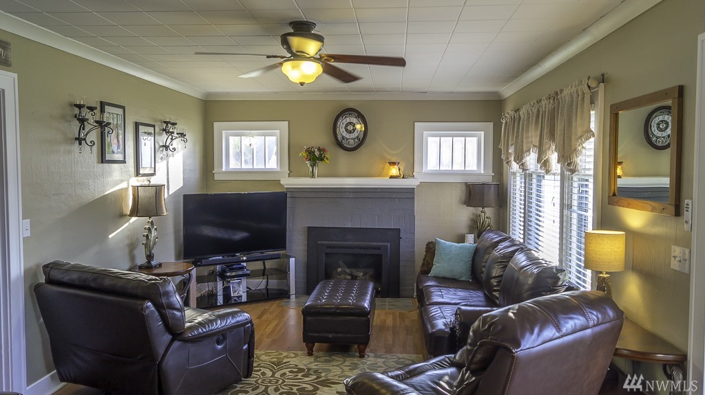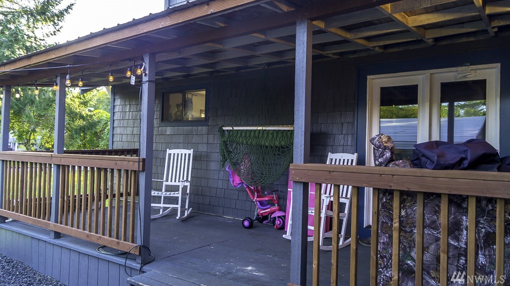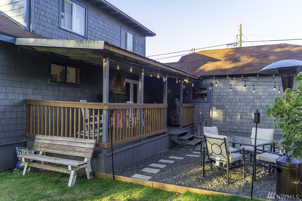 Nicely maintained 3 bedroom, 1 bath home on corner lot (4 lots) in Cosmopolis. This home features a recently updated kitchen, remodeled bath, formal dining with built-in glass pocket doors, wood stove, propane insert and hardwood floors. Outside you will find an inviting front porch, covered back porch with French doors, attached carport, alley access, newer outside paint and an additional outbuilding provides extra storage with multiple functions