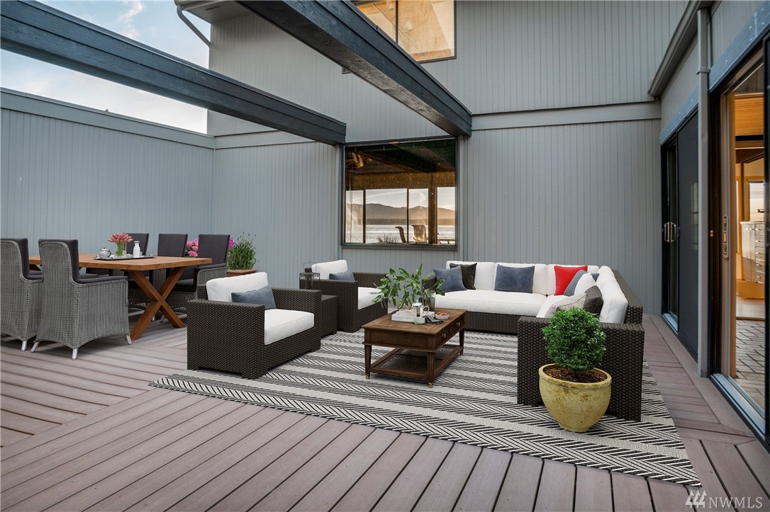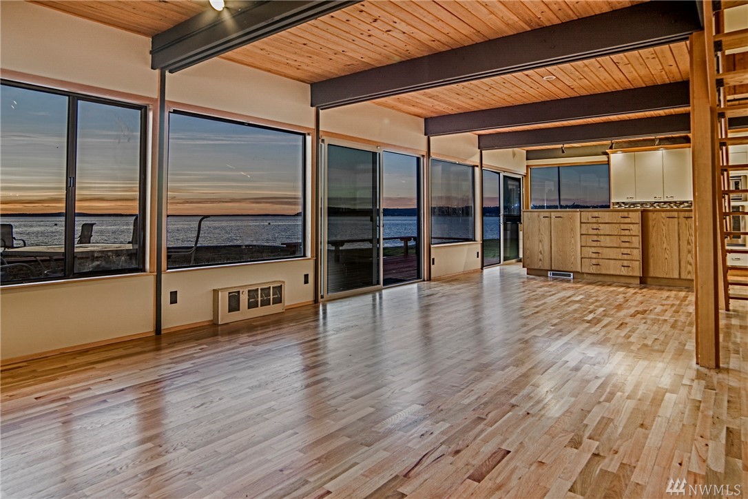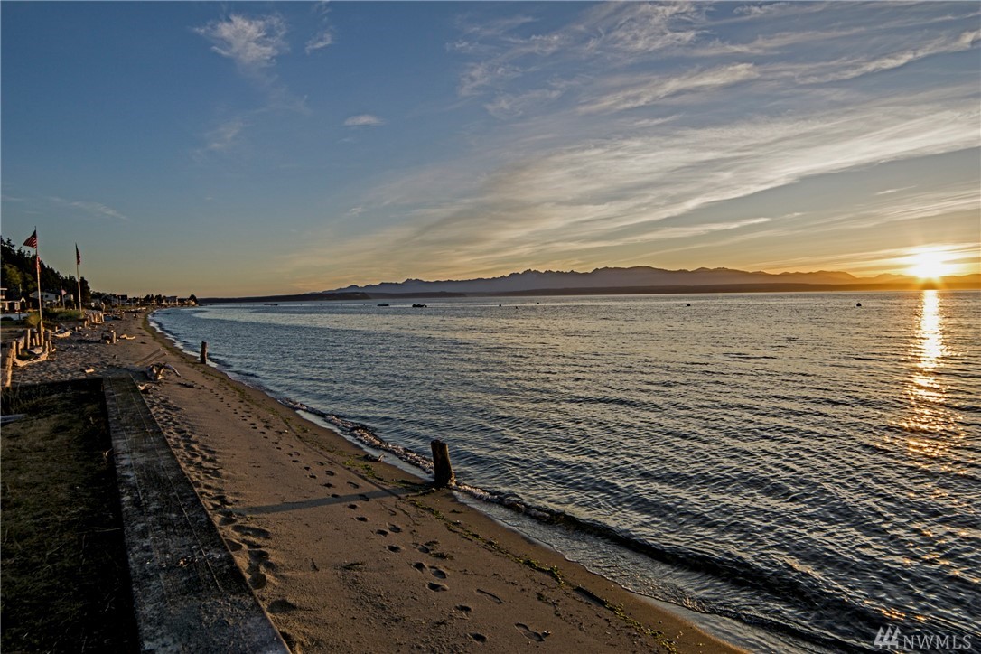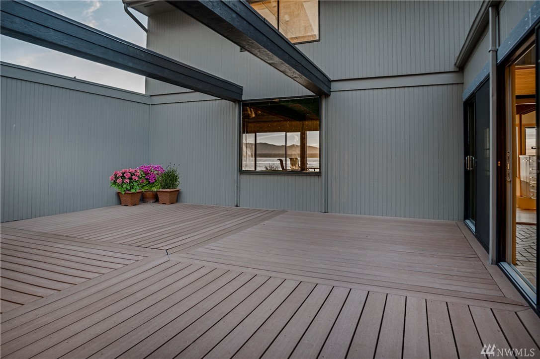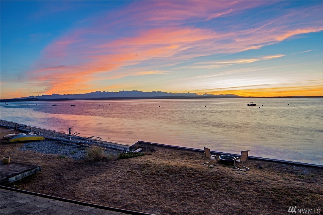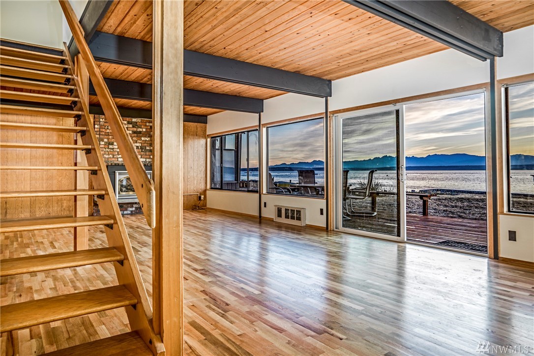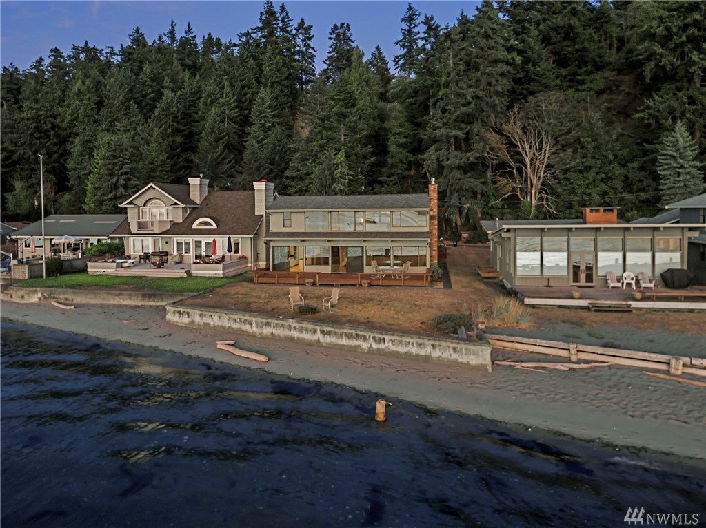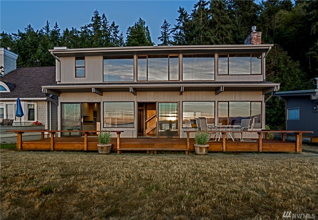 Rare Mutiny Bay waterfront on private Barr Beach. 52' of soft sand & sensational views of the Mountains and shipping lanes. Paul Kirk design highlights walls of windows that capture the spectacular surroundings. Recent updates to the kitchen, hardwoods, carpet, roof, paint, deck, and fence enhance the classic design. Includes 2nd floor master, enclosed central deck, 2 guest rooms, atrium with bonus space for bunks, and huge 2-car garage w/shop. The finest beach and view Whidbey has to offer.