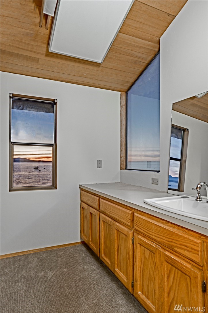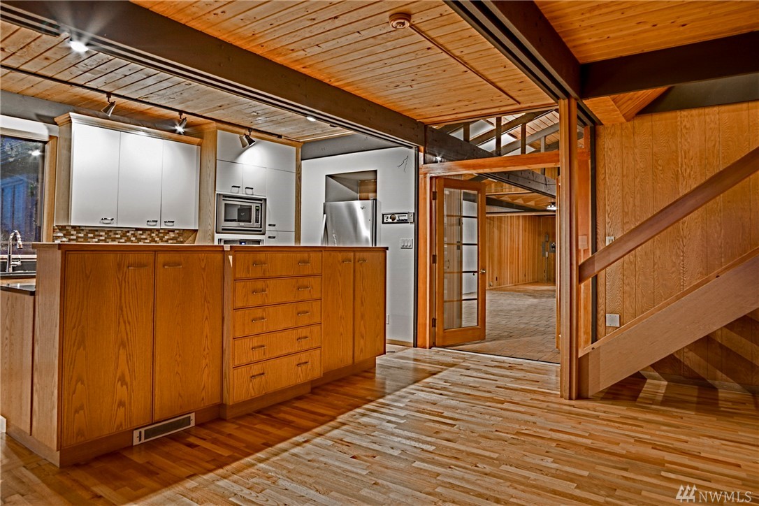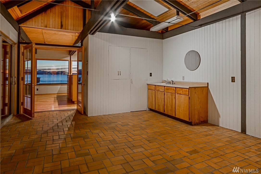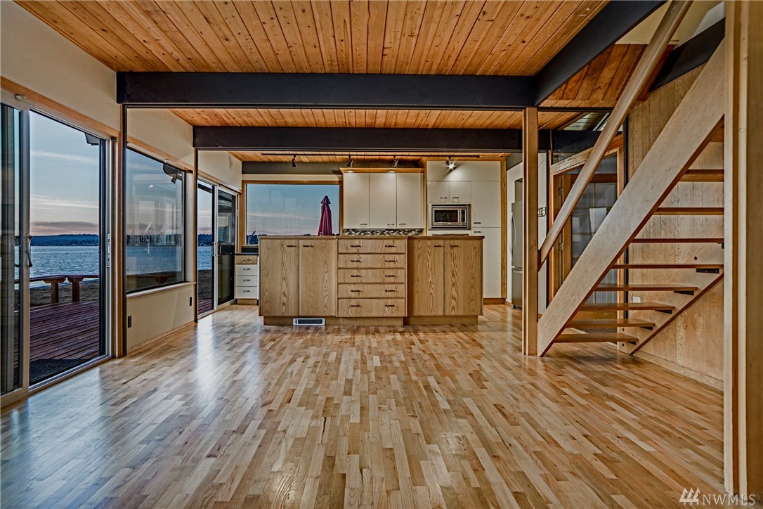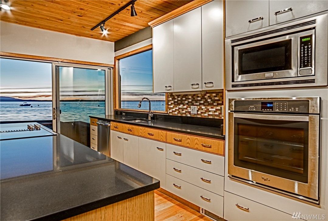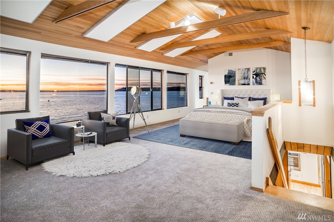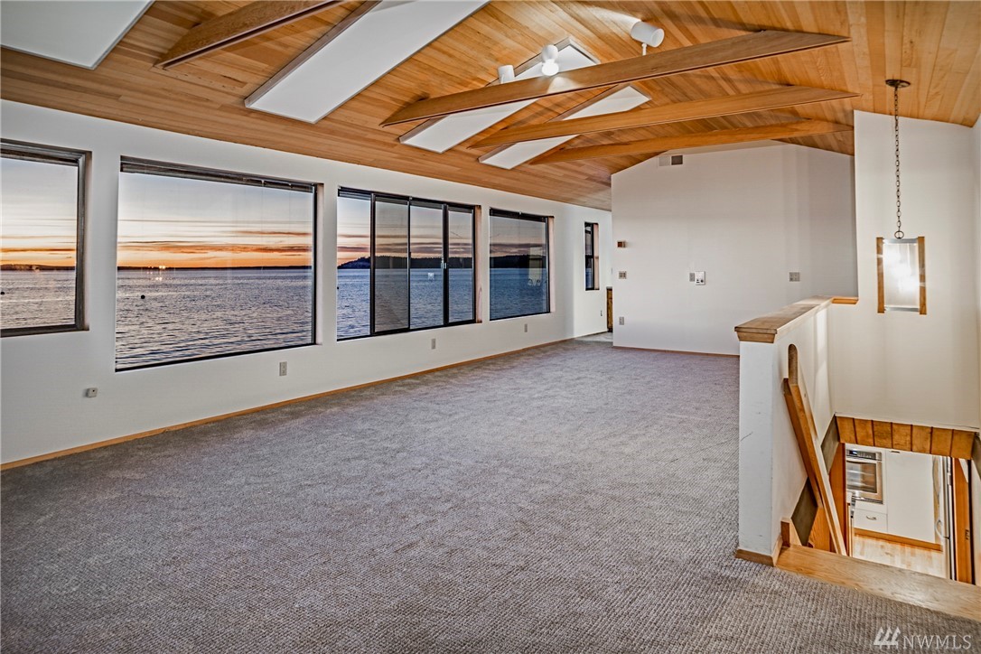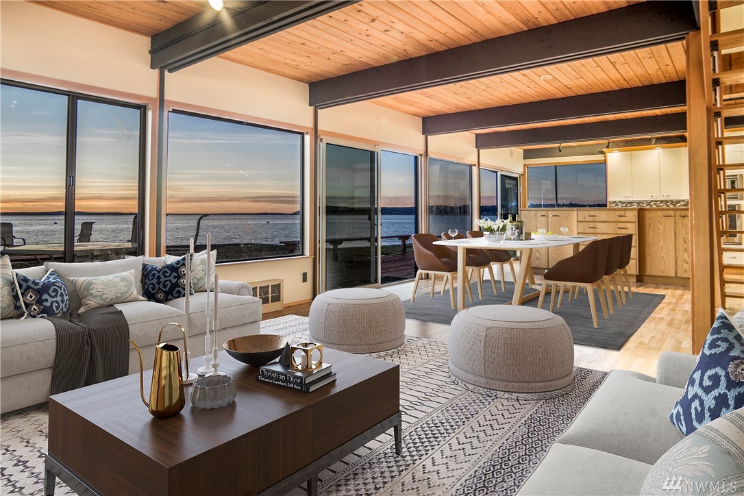 Rare Mutiny Bay waterfront on private Barr Beach. 52' of soft sand & sensational views of the Mountains and shipping lanes. Paul Kirk design highlights walls of windows that capture the spectacular surroundings. Recent updates to the kitchen, hardwoods, carpet, roof, paint, deck, and fence enhance the classic design. Includes 2nd floor master, enclosed central deck, 2 guest rooms, atrium with bonus space for bunks, and huge 2-car garage w/shop. The finest beach and view Whidbey has to offer.
