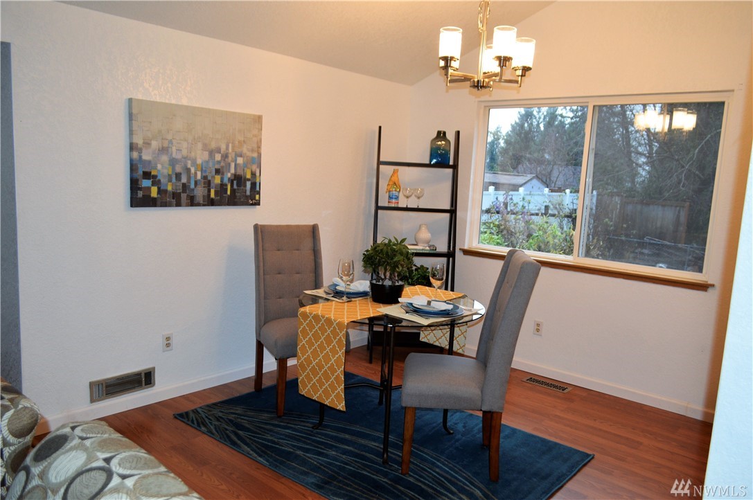 Location is everything! Popular South Eastside Olympia. 3 bedrm, 2.5 ba home w/new laminate floors, new vinyl, new carpet & int. freshly painted, new garage doors. Formal living & dining, kitchen w/breakfast bar w/new DW, downstairs family rm has closet & 1/2 bath. Minutes to downtown, shopping, schools, restaurants & easy commute to Fwy. Newer 50 year comp roof installed in 2014, new hot water tank & new furnace in 2016, gas stub-out for bar-be-que. Backups to private property.