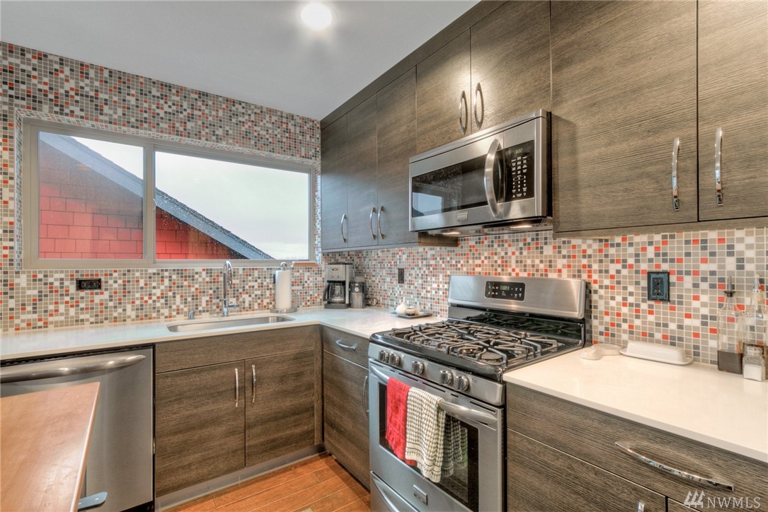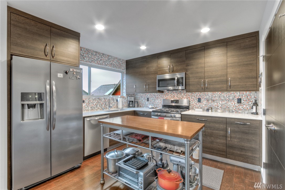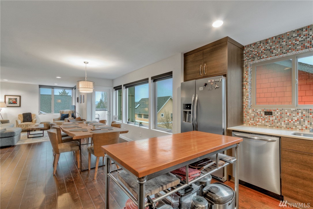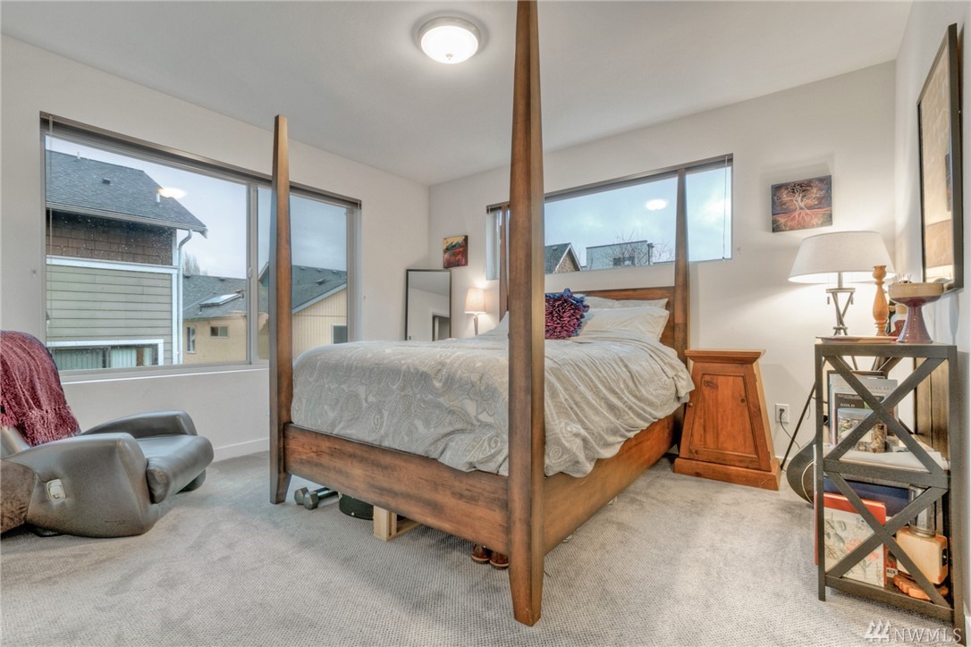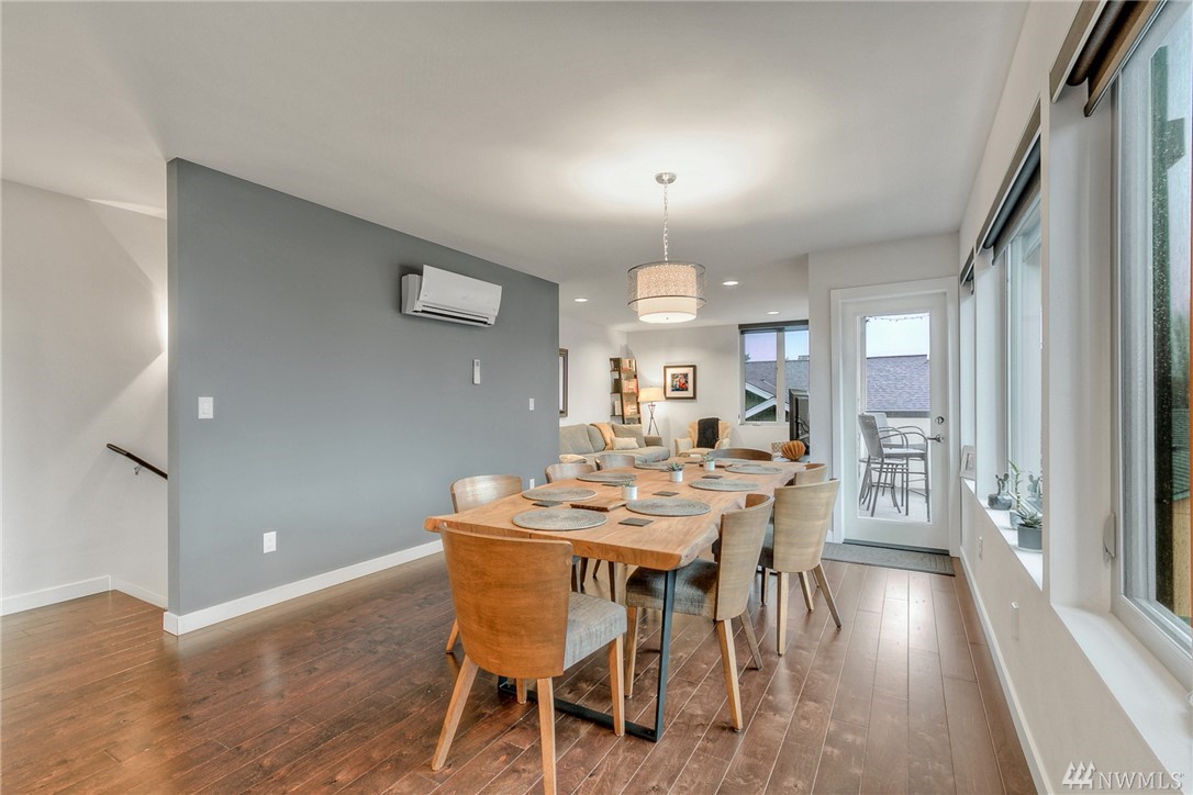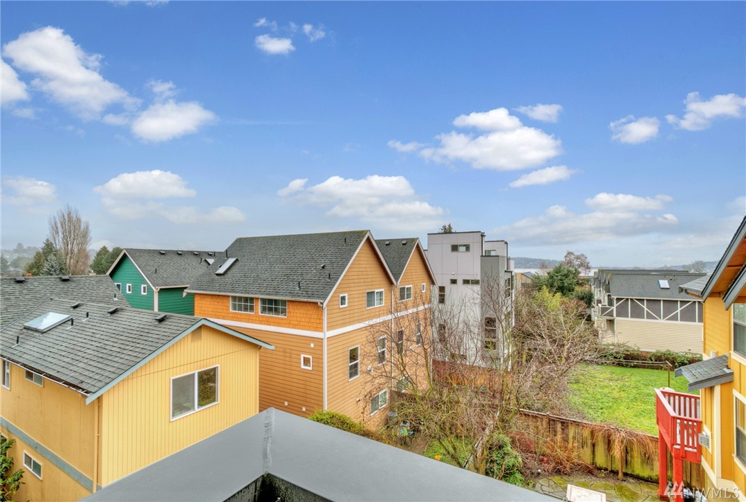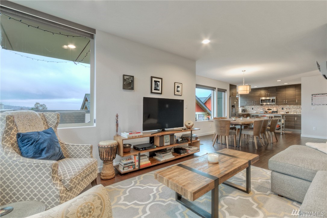 Views of the City & Water from top floor living plus a covered deck to enjoy all year! Open, light, modern & almost new, this Green Built townhouse wows w/hardwood floors & beautiful kitchen w/stone counters, custom cabinets, unique tile accents & ss appls. Master suite on mid level enjoys large walk-in + 3/4 bath w/beautiful tile. One bdrm on ground level, 2nd on mid, full bath & laundry. Great patio in back w/partial fencing could be more! 1 car garage w/storage. AC, tankless HW, ductless HP.