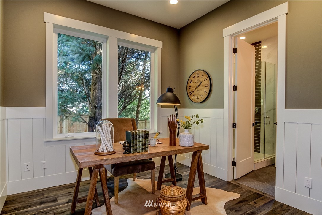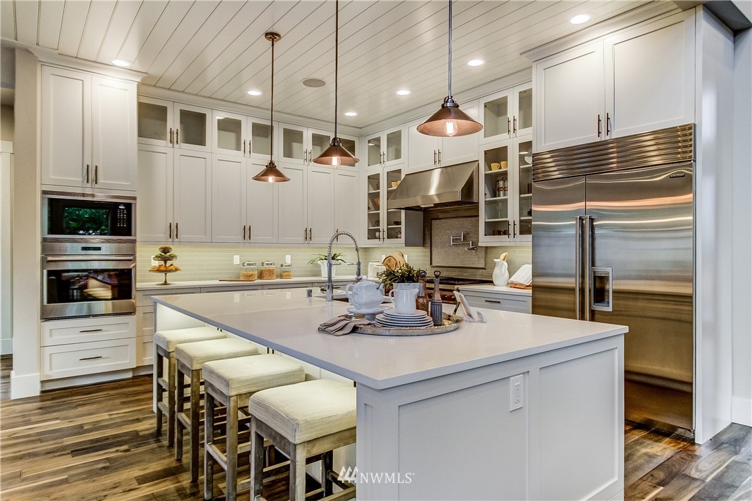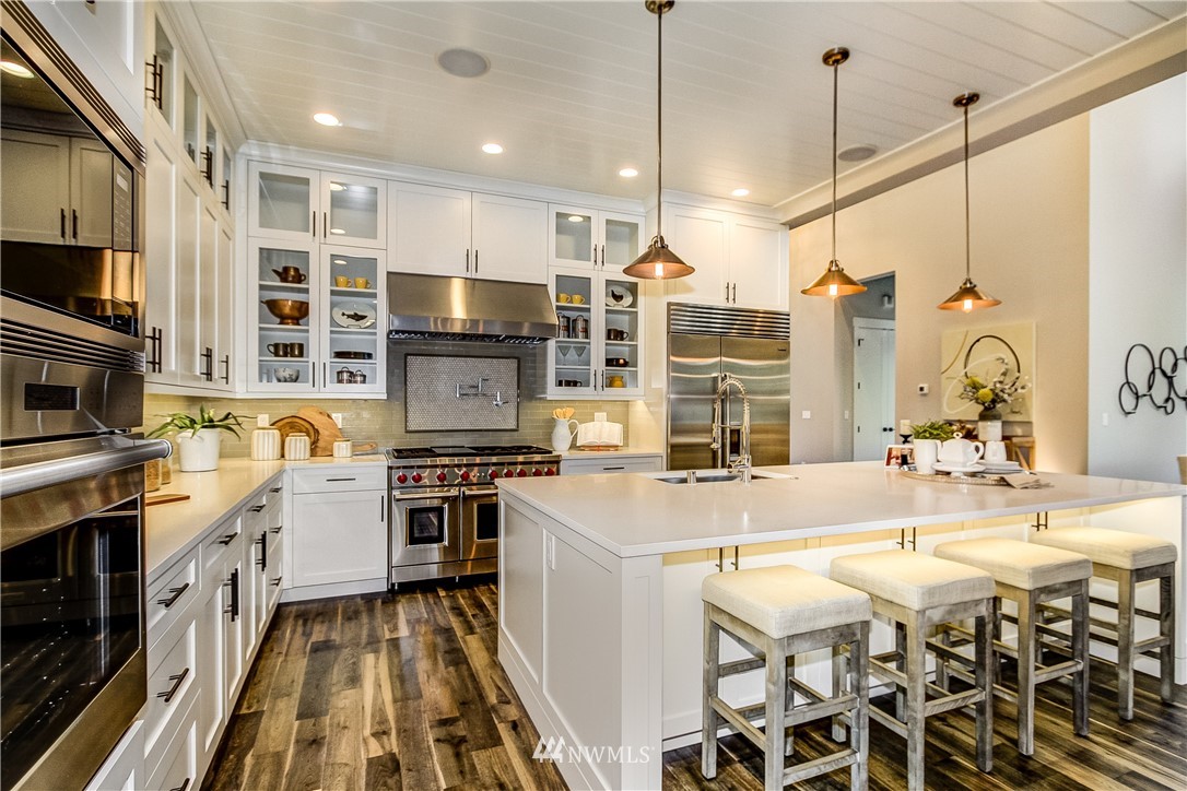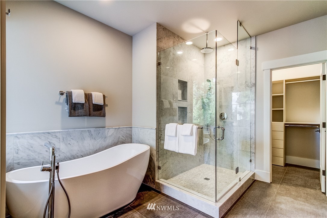 PAG proudly pres. New NW Contem.Lux.Cust. home with the lake view in Enatai. Gourm. kitch. feat.48"Wolf range & oven, 48"Subzero refr., cust. cabin. w/quartz ctrs. Great feat. of the house incl.: president. roof.,triple pane windows, heated mast. floor, cust. cabin. built in closets,5" oak flooring, dual heating and cooling-2 zones,surround sound speak.,LED lighting ,hansgrohe plumbing fixtures, 2 laundries,permeable paver driveway,recirculating hot water w/tankless water heater.