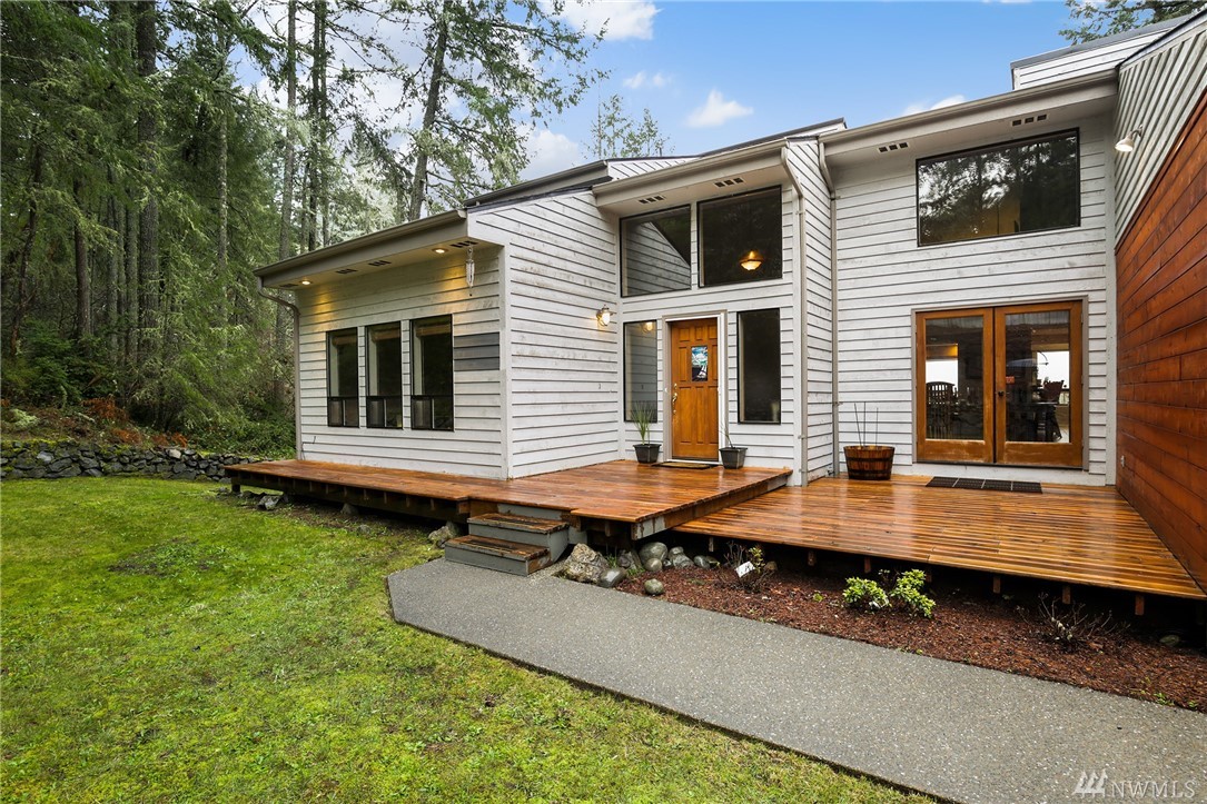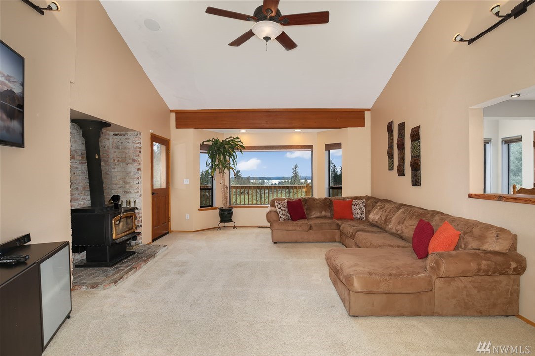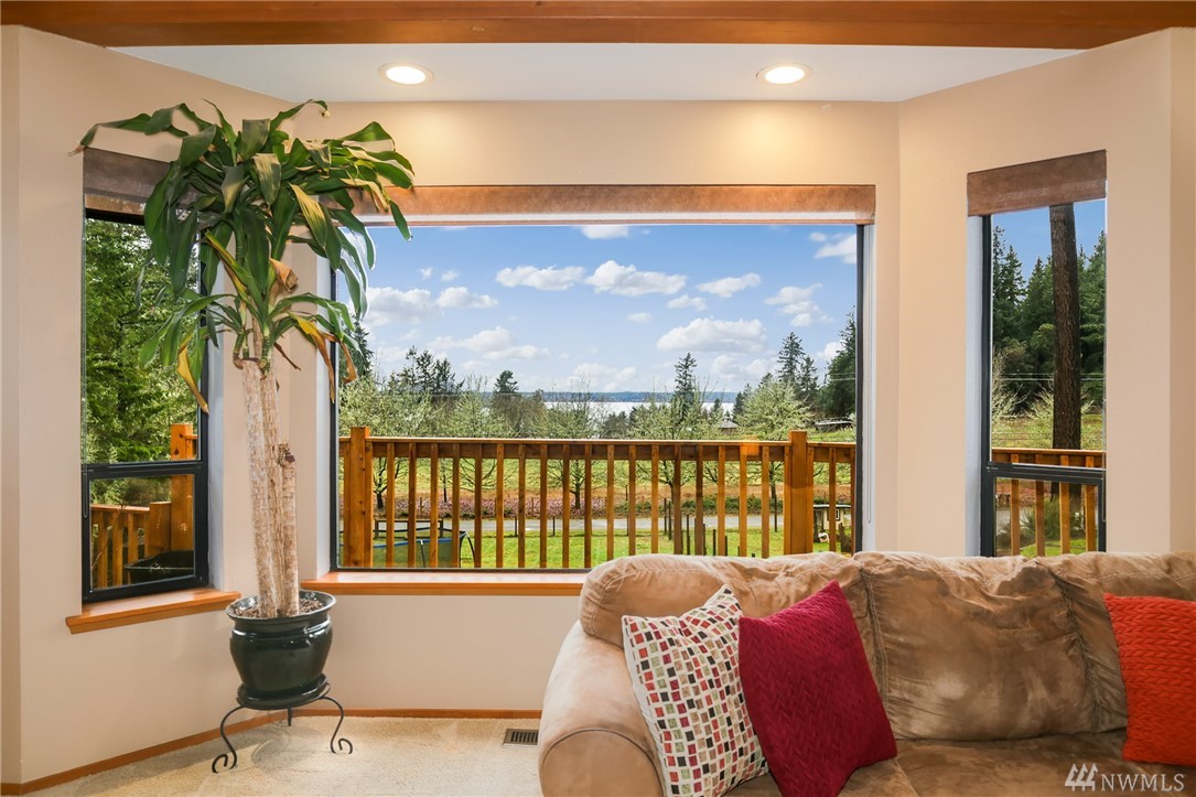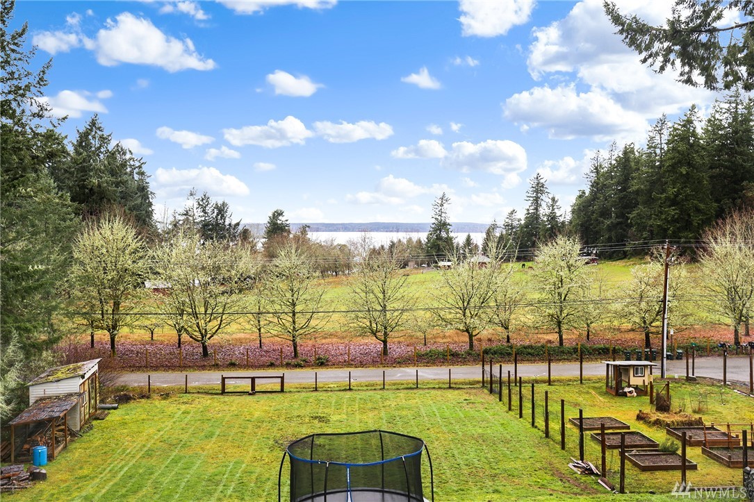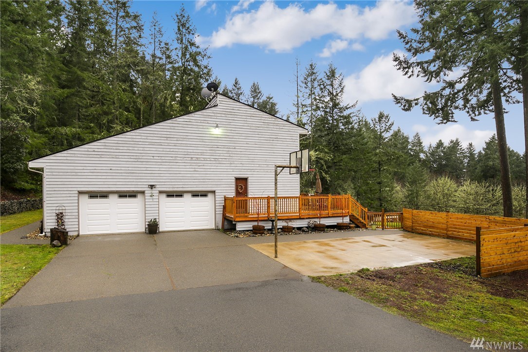 Fabulous acreage in highly desired Fox Island location! This amazing layout with SOUND VIEW is decorated with Real Hardwood floors, soaring ceilings to the second floor, granite and marble, counter-tops, HUGE Master walk-in closet, wrap-around deck, gas cooking, second master on main, over-sized laundry room, large 2.5 car garage, a wood burning stove, spacious basement/rec room, and sprawls out over an acre of private serenity! Newer roof put on just last year!