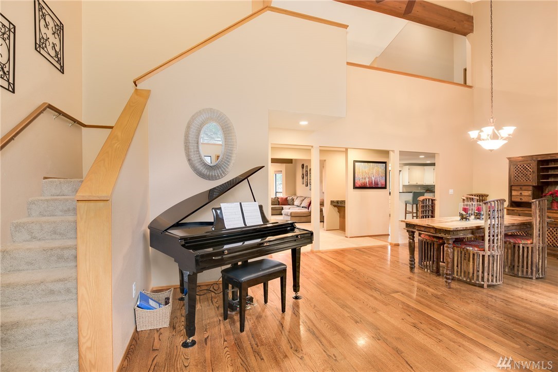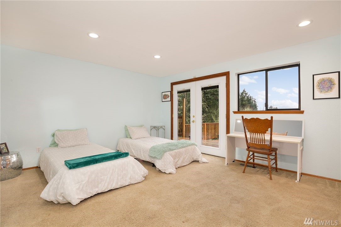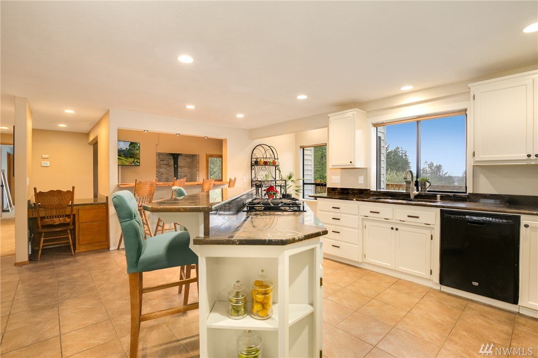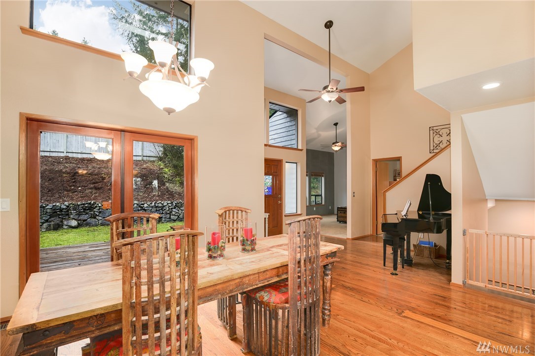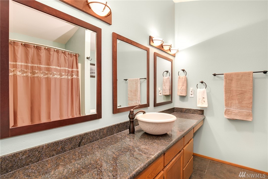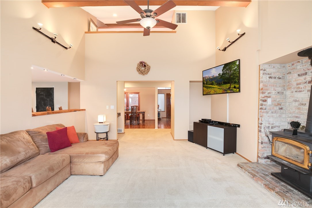 Fabulous acreage in highly desired Fox Island location! This amazing layout with SOUND VIEW is decorated with Real Hardwood floors, soaring ceilings to the second floor, granite and marble, counter-tops, HUGE Master walk-in closet, wrap-around deck, gas cooking, second master on main, over-sized laundry room, large 2.5 car garage, a wood burning stove, spacious basement/rec room, and sprawls out over an acre of private serenity! Newer roof put on just last year!