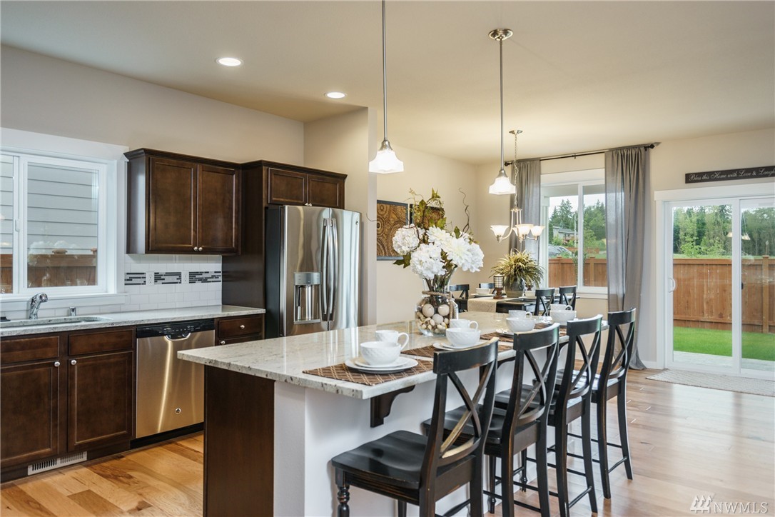 Popular SummerSun Plan! 3 bed + den/1.75 bath. Vaulted great room w/gas fireplace. Engineered hardwood floors in great room/dining/kitchen. Kitchen w/granite counter and stainless steel appliances. Large island. Spacious master bedroom w/wic and bath. Covered back patio w/stamped concrete. Landscaped and fenced backyard. Heat pump for AC and efficient gas furnace. Tankless water heater. Interior Pics are of similar home features/colors may differ. COMPLETED home!!!