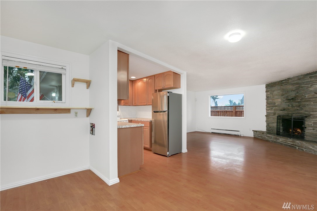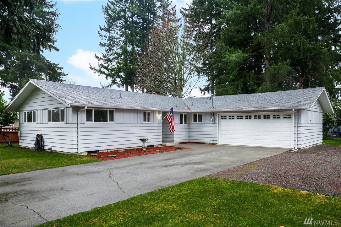 Move-in ready rambler on a large lot in Lacey! Living room of this appealing home has a cool rock fireplace and hearth to cozy up to on those chilly nights. Remodeled kitchen w/ new cabinets & tile back splash behind range & eating space w/ slider to covered back patio for year round BBQ's. Updated bath w/ tile floors. Large laundry room w/ half bath. RV and extra off street parking. Super location close to JBLM, schools, shopping and freeways. Perfect starter or investment home. Nice!