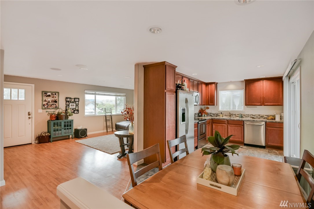 Charming Rambler Nestled in the Quiet Farm Lands of Sumner, Located on a Dead End Street with Beautiful Views of Mt Rainier. Home has Three Large Bedrooms & Bath with a Separate Mud-Laundry Room off the Garage. Completely Remodeled to the Studs in 2014, Everything Replaced, Sub-Floor, Flooring, Efficient Windows, Heating, Fixtures, Bath, Kitchen, Stainless Appliances, Siding, Roof, Trex-Deck, A Sound System & All Rooms Are Wired for Wall Mount TVs. A Large Private Fenced Yard & RV & Boat Parking