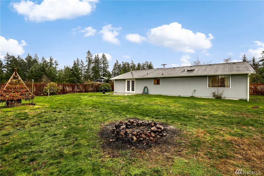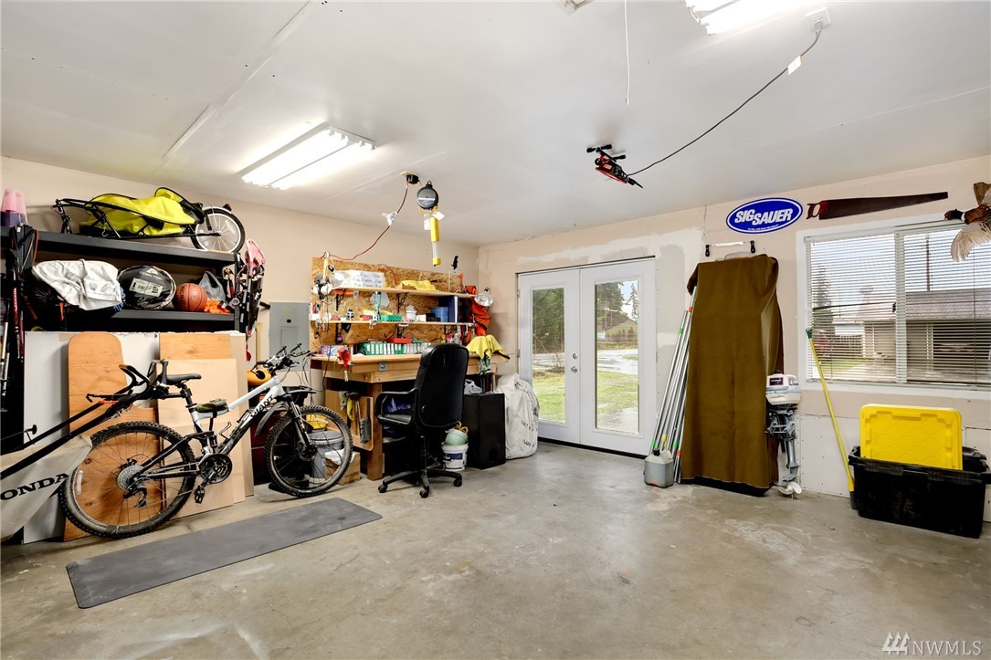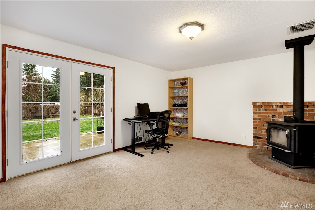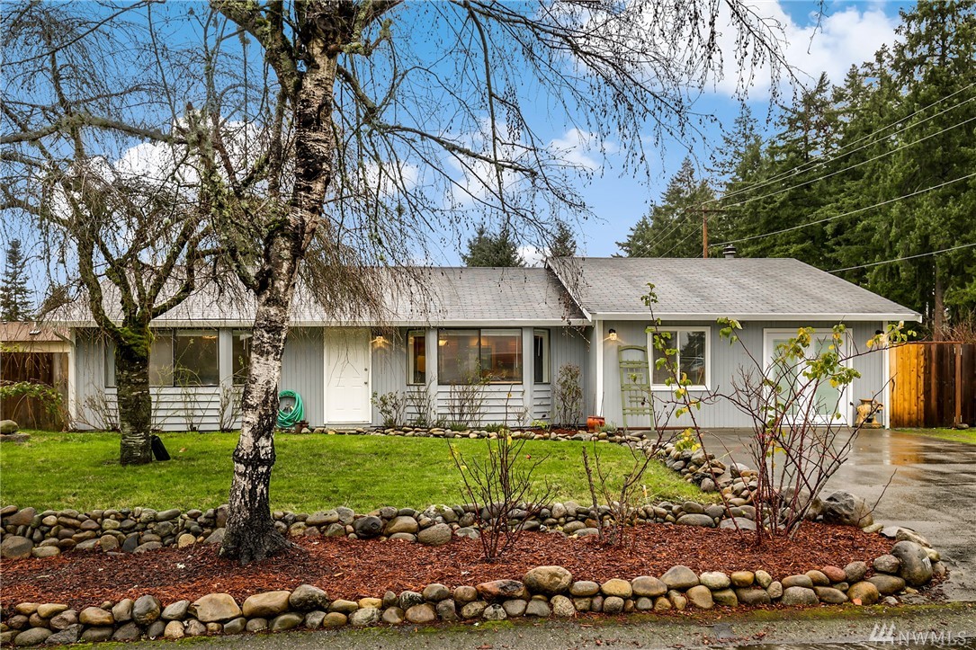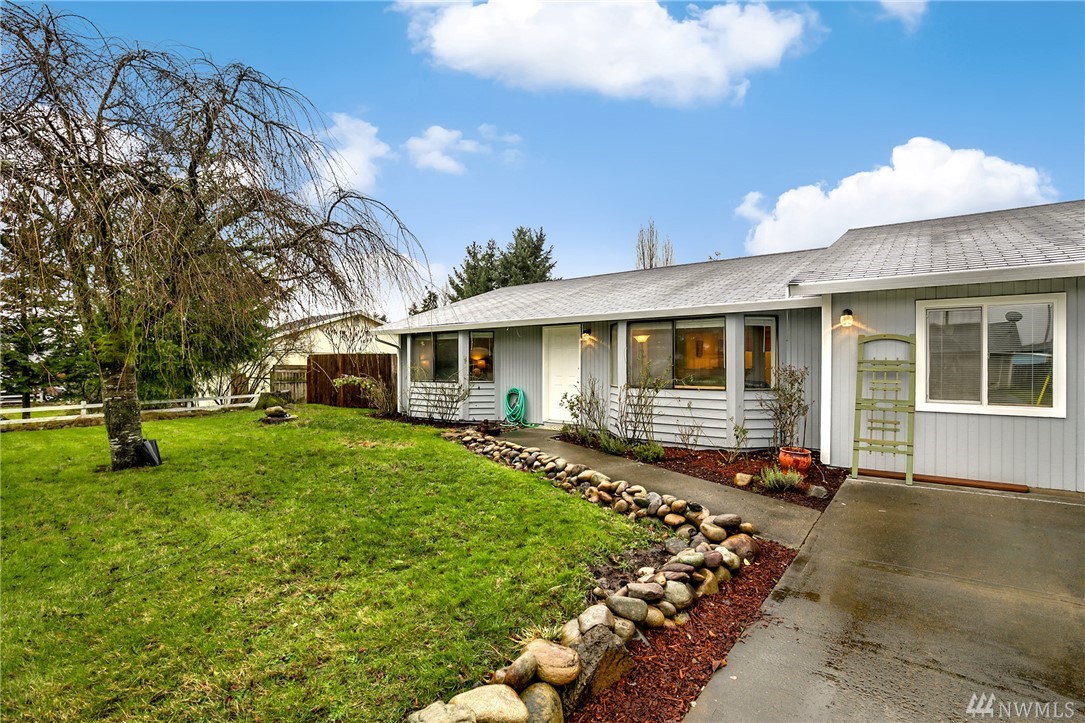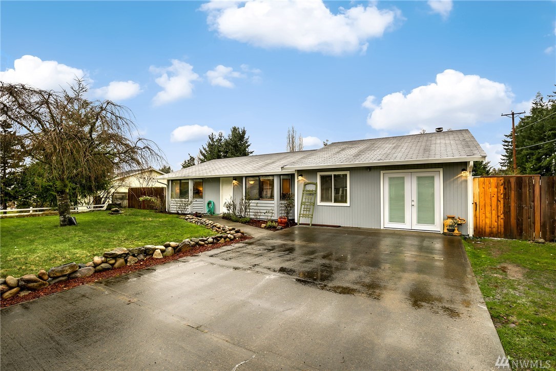 Beautifully redone home on huge fenced corner lot. Gleaming laminate floors, wonderful kitchen with plenty of oak cabinets. Big living room and bonus room with french doors and wood stove. The garage has been nicely converted into a big rec or craft room. Full remodel on the spacious bathroom. Master has plenty of room as does the other bedroom. 2" custom blinds throughout. New (2017) composition roof. Big patio in the huge fenced back yard. Irrigation for the garden! This home is a must see!