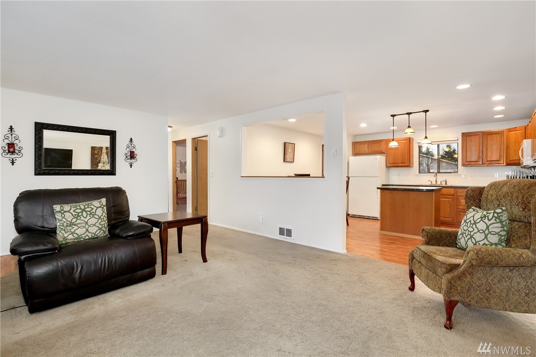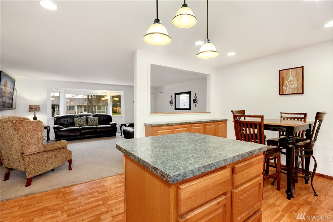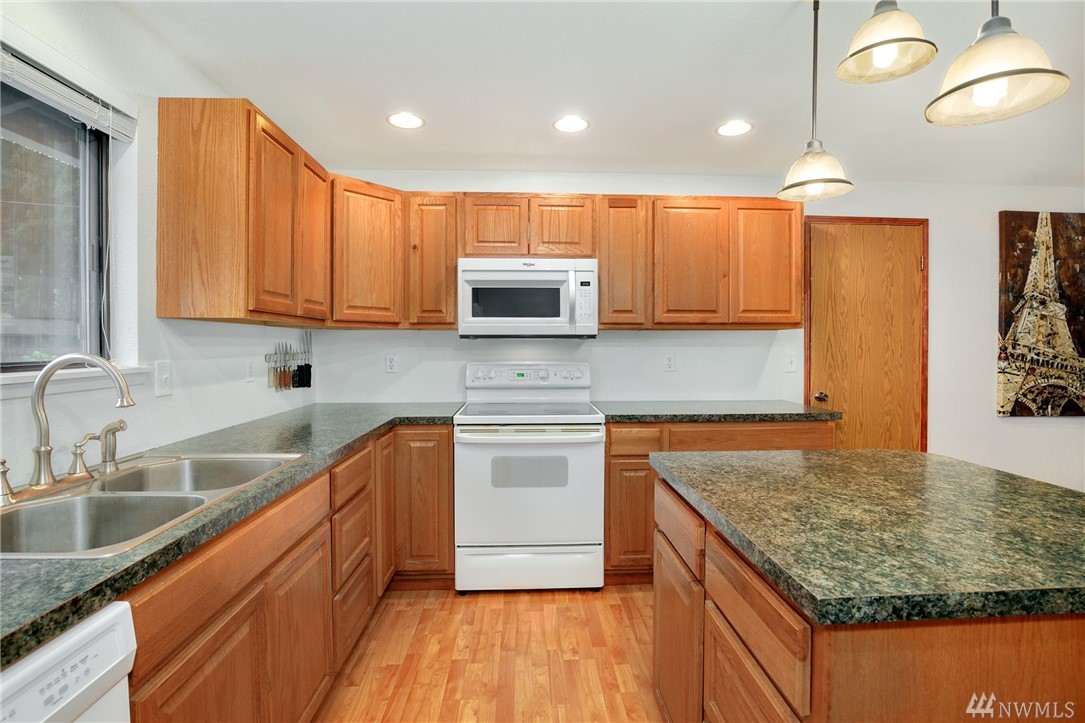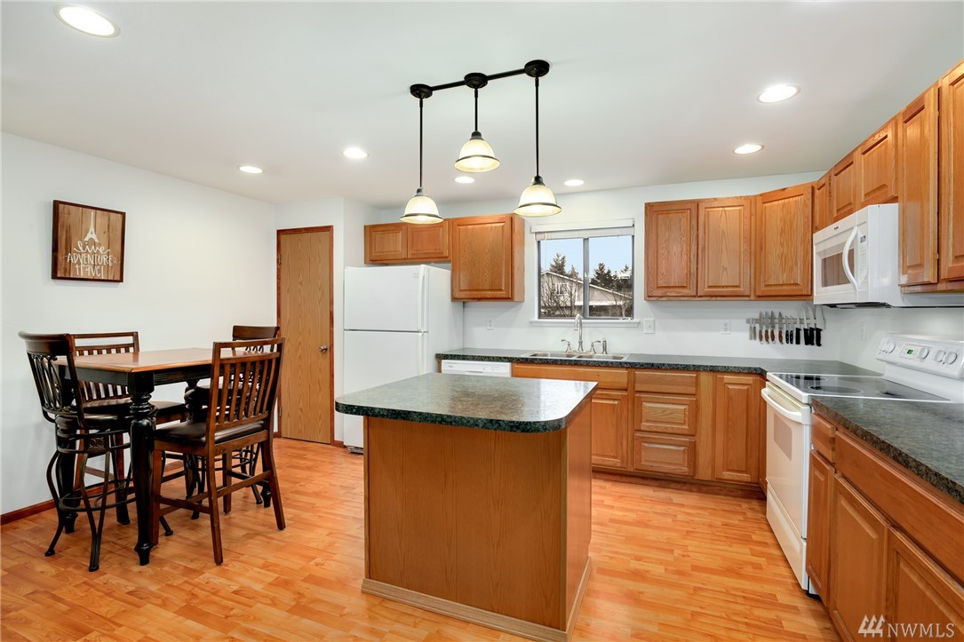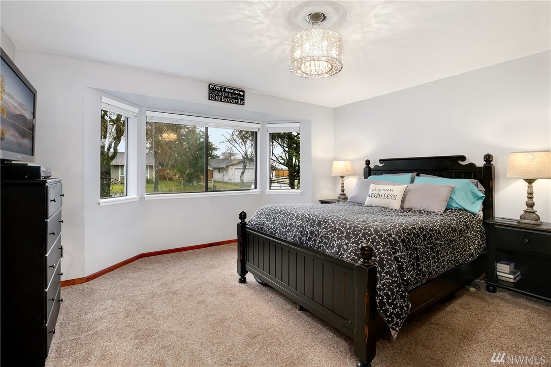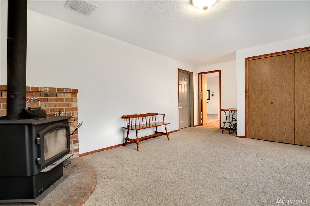 Beautifully redone home on huge fenced corner lot. Gleaming laminate floors, wonderful kitchen with plenty of oak cabinets. Big living room and bonus room with french doors and wood stove. The garage has been nicely converted into a big rec or craft room. Full remodel on the spacious bathroom. Master has plenty of room as does the other bedroom. 2" custom blinds throughout. New (2017) composition roof. Big patio in the huge fenced back yard. Irrigation for the garden! This home is a must see!