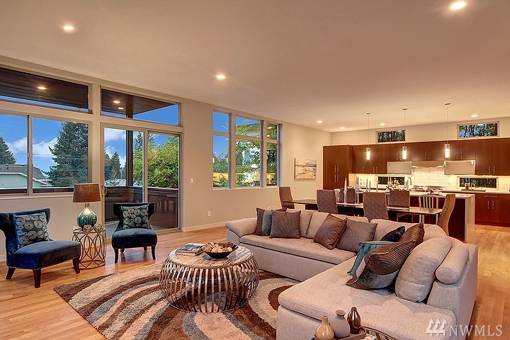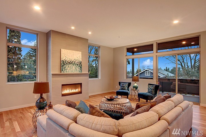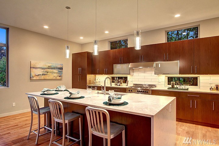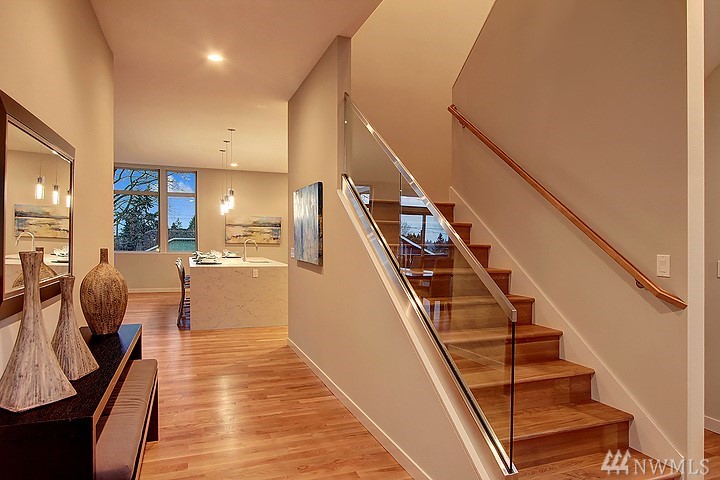 Welcome to this beautiful, spacious, modern home crafted by Greatwood Construction. Outstanding curb appeal. Stunning true oak flrs & dramatic 9+ ft ceilings. Gourmet kitchen w/ cooking island & tons of cabinet & counter space. Elegant gas fireplace. Two grand decks w/ sunset & mountain views. Inviting Master Suite w/ sumptuous 5 piece bath, huge walk in closet & prvt deck. Separate hm office w/ French drs. Great rec rm on lower level. Air conditioned! Fabulous park like grounds. Truly Lovey hm!