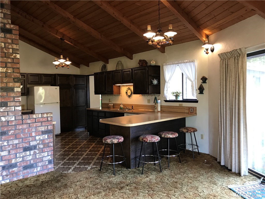 Nice private home on Island lake with .933 acres with 5 bedrooms/ 3 full baths. (3 bedroom septic) This home features 2 fireplaces,wet bar for entertaining on the covered balcony or just relax and read a book. Large home with 3 bd and 2 bth upstairs with large kitchen and living area. Down stairs has 2 bd, 1 bth and opens up to a full basement / garage with room to grow. Nice driveway with lots of parking and RV parking. Great location with private well and septic. Neighboring lot for sale also.