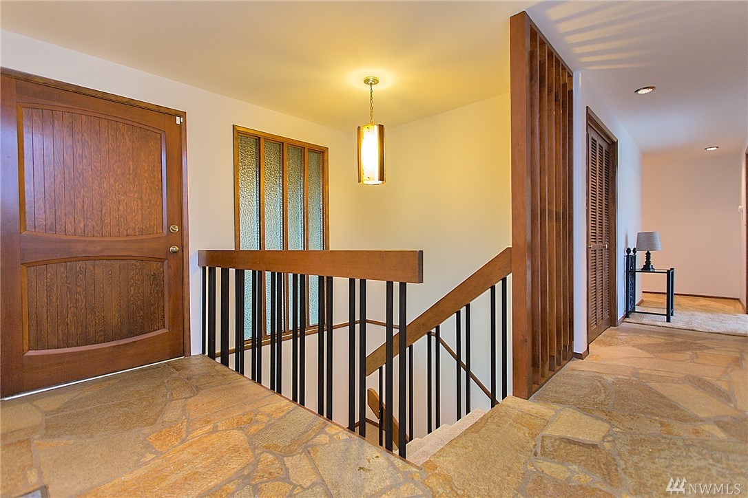 Frank Lloyd Wright Inspired blending Design with a Creekside Setting! Begins with an Exquisitely Executed CourtYard Entry w/4' Door opening to Stone Entry leads to Spacious Living Room w/Soaring Ceilings, Wall of Windows bringing the Outdoors of Nature Inside. Kitchen has tons of Cabinets, Eating Area & Slider opens to Entertaining Size Deck! Family Room features Soaring Ceilings, Floor-to-Ceiling Fireplace & Slider to Private Patio! Downstairs has Huge Rec Room w/Wetbar & Sauna for Relaxing!