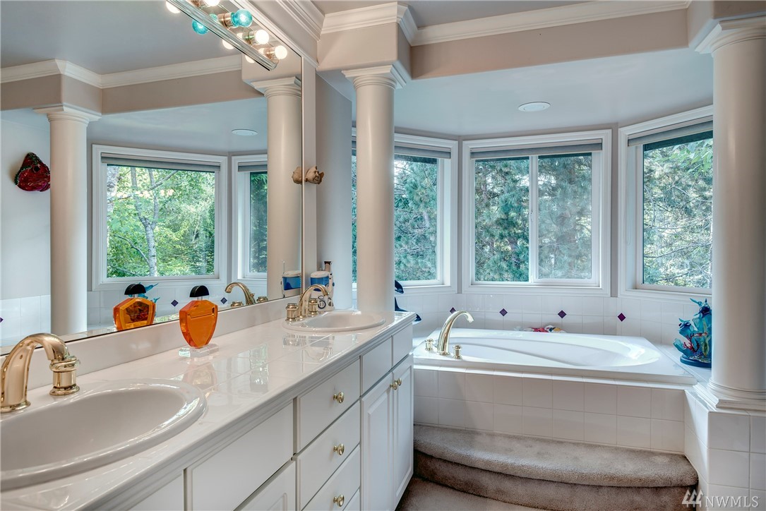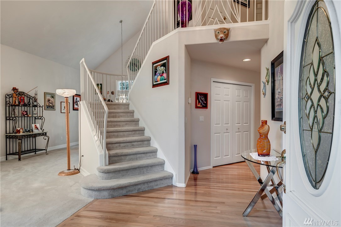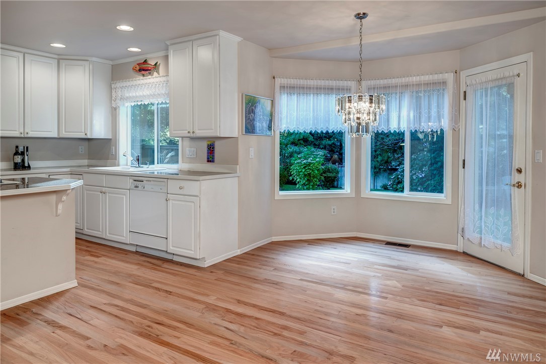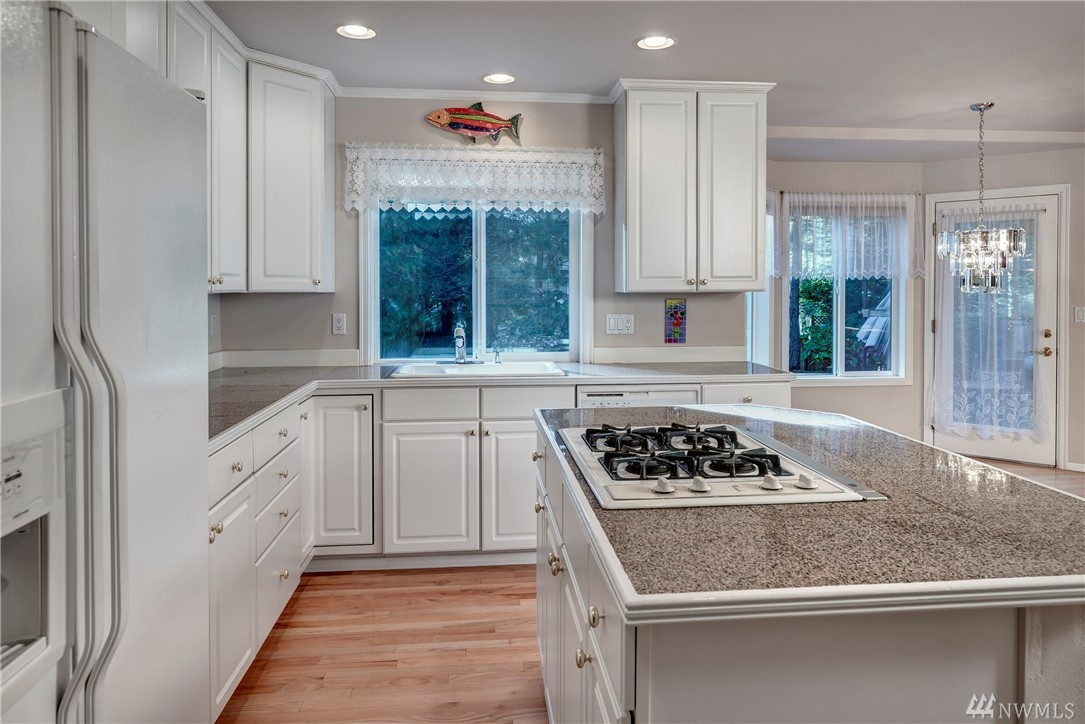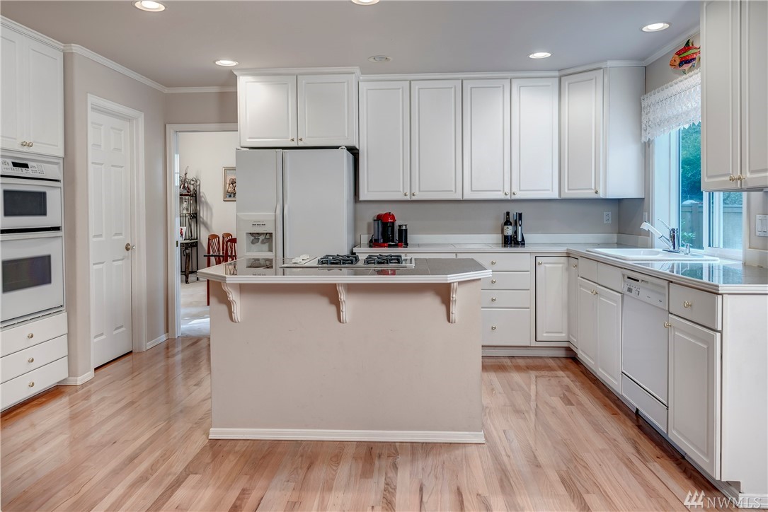 Sunny & open in a quiet setting w/large private yd & entertaining patio. Grand entry w/vaulted ceilings in living & dining rms. Fresh kitchen w/white cabinets & granite counters; fabulous island, work station & nook + all appliances stay. Hardwood floors, rounded corners. Main floor office/den, laundry & mudroom off 3 car wide garage. Rounded staircase leads you to master suite w/5 piece bath & WUI. Sec system, landscape lights/sprinklers. Fireplace in LR & FR. Iss Schools. 5-year cert on Roof.
