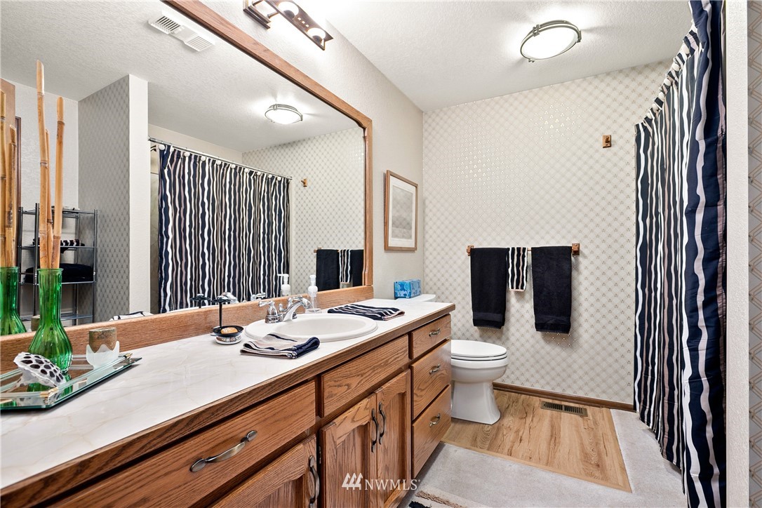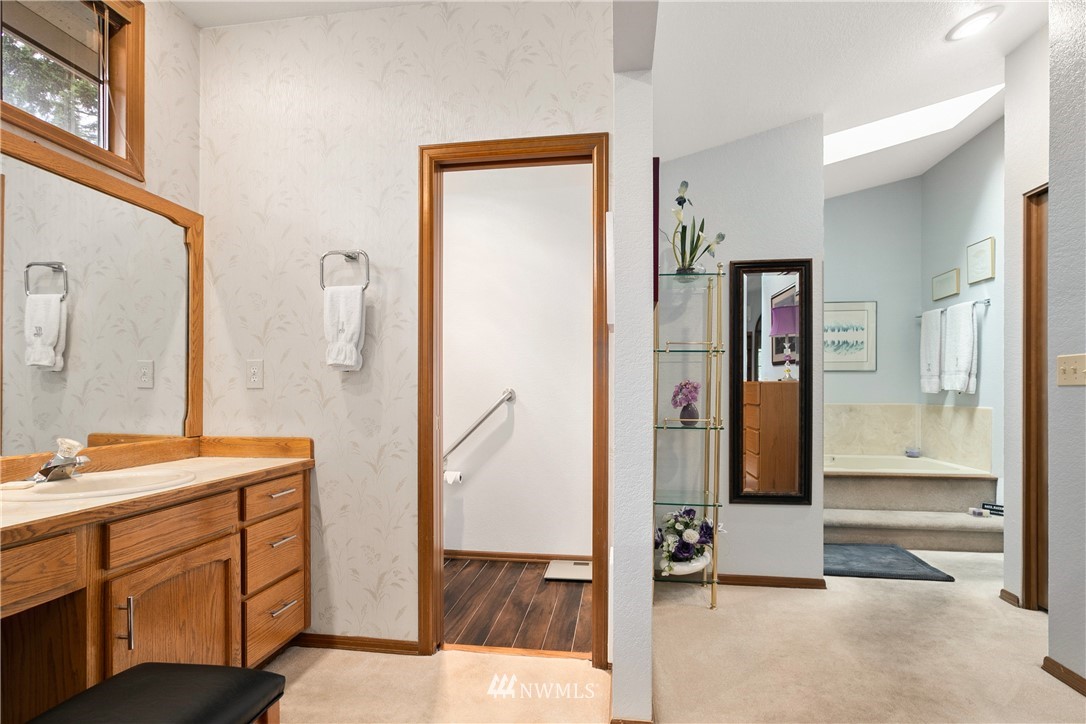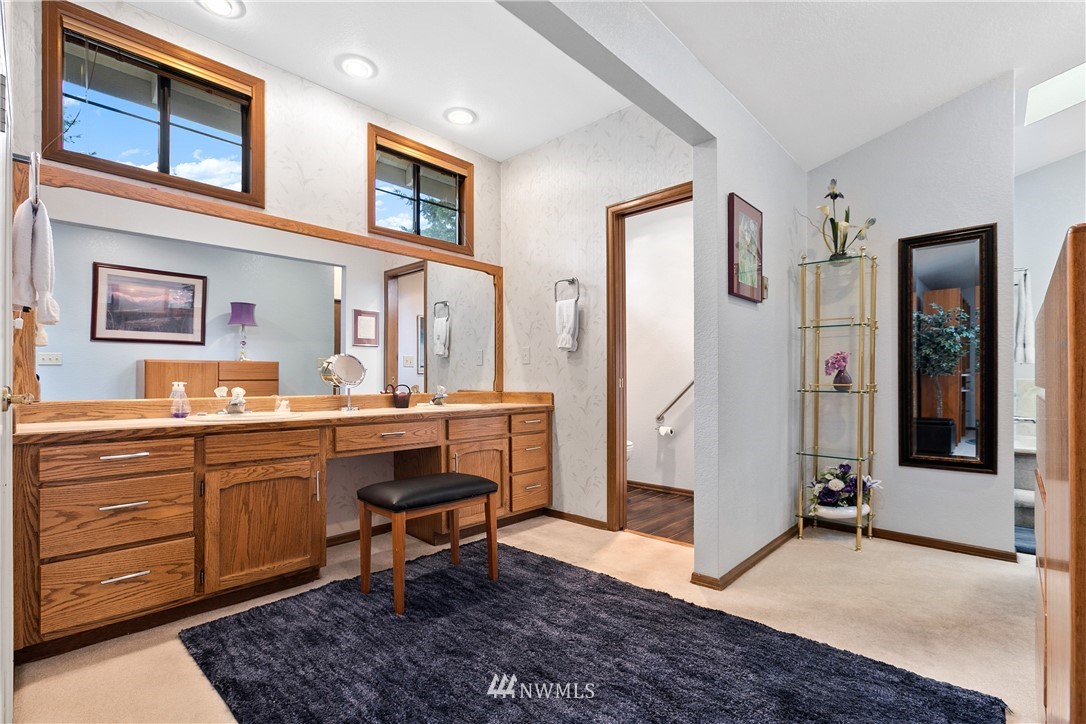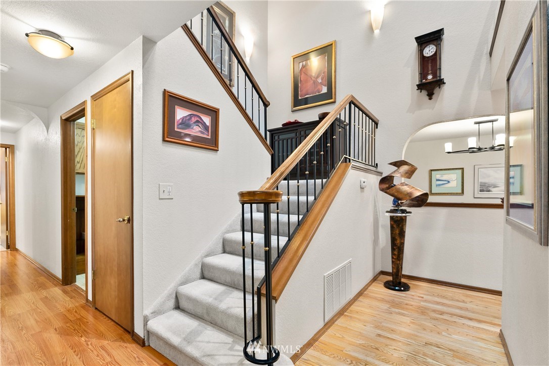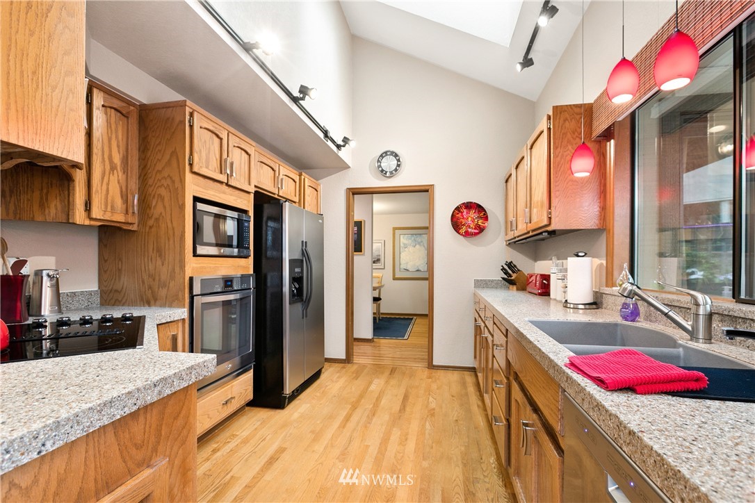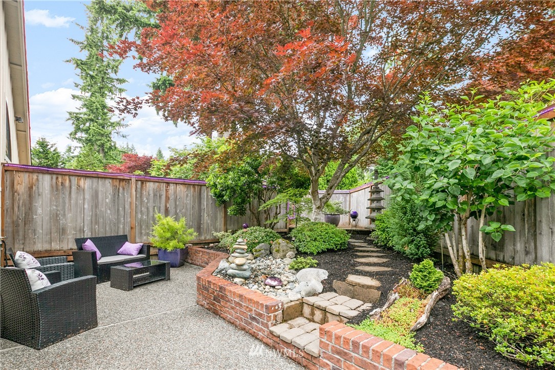 Beautifully maintained 2295 ASF Mill Creek townhome in the highly sought after Trillium Court! Features include 2 master suites - one on each level, gleaming hardwood floors, large skylights and an inviting kitchen with stainless steel appliances. You'll love the open family room with vaulted ceiling, cozy gas fireplace and main floor den. Exterior amenities include a private fully fenced patio area for your enjoyment and attached 2 car garage. So many peaceful walking trails throughout the Mill Creek community and only minutes to the Mill Creek Town Center with excellent shopping, medical facilities & restaurants. Plenty of extra guest parking right out front.