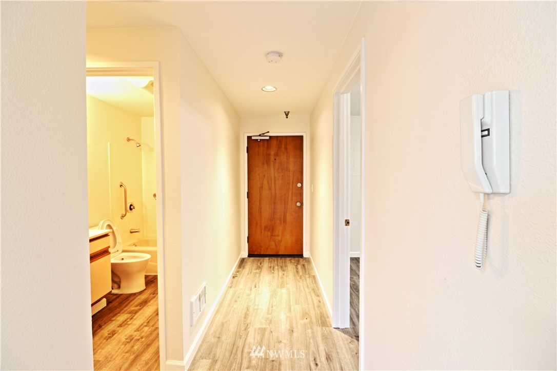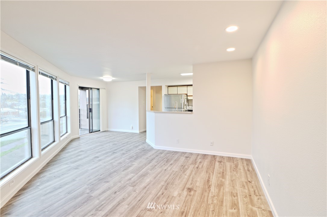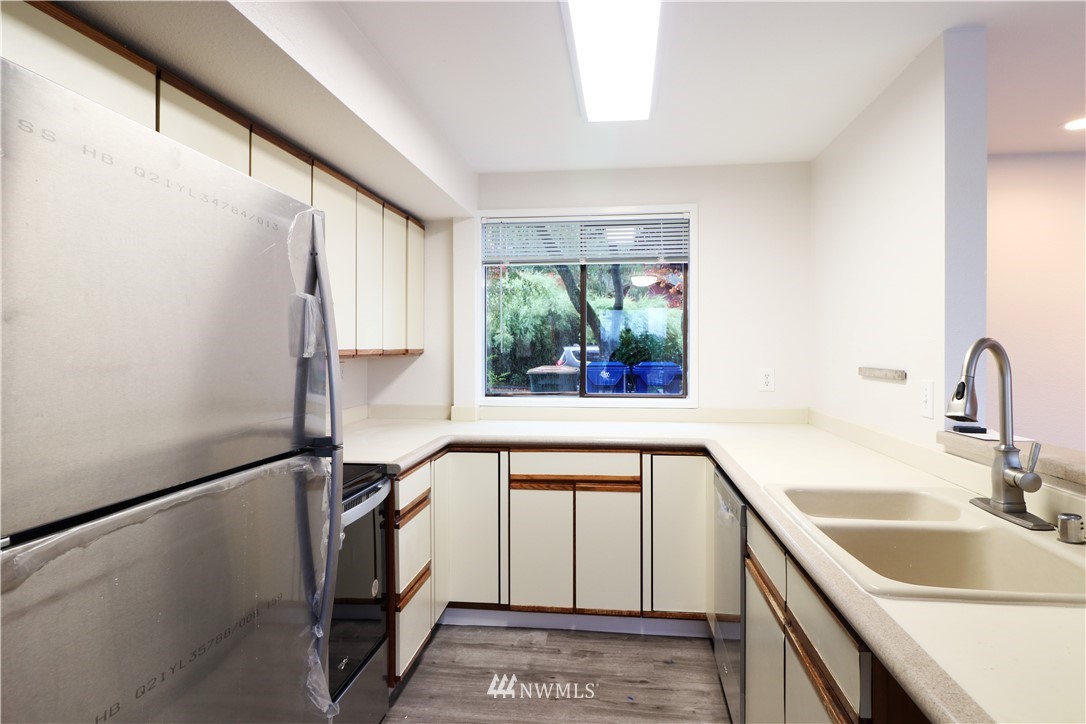 Centrally located in Magnolia condo featuring 2 spacious bedrooms and 1 bath, and 1 common garage parking. Recently updated with new interior paint thru-out and new Luxury vinyl plank flooring, new baseboard and new light fixtures. Kitchen with quartz countertop and brand new stainless steel appliances. Living room featuring wood burning fireplace. Washer/dryer is less than year old. convenience location to Fishermen Terminal, Discovery park, downtown Seattle, and bus nearby. Small complex with low HOA due. NO rental cap.