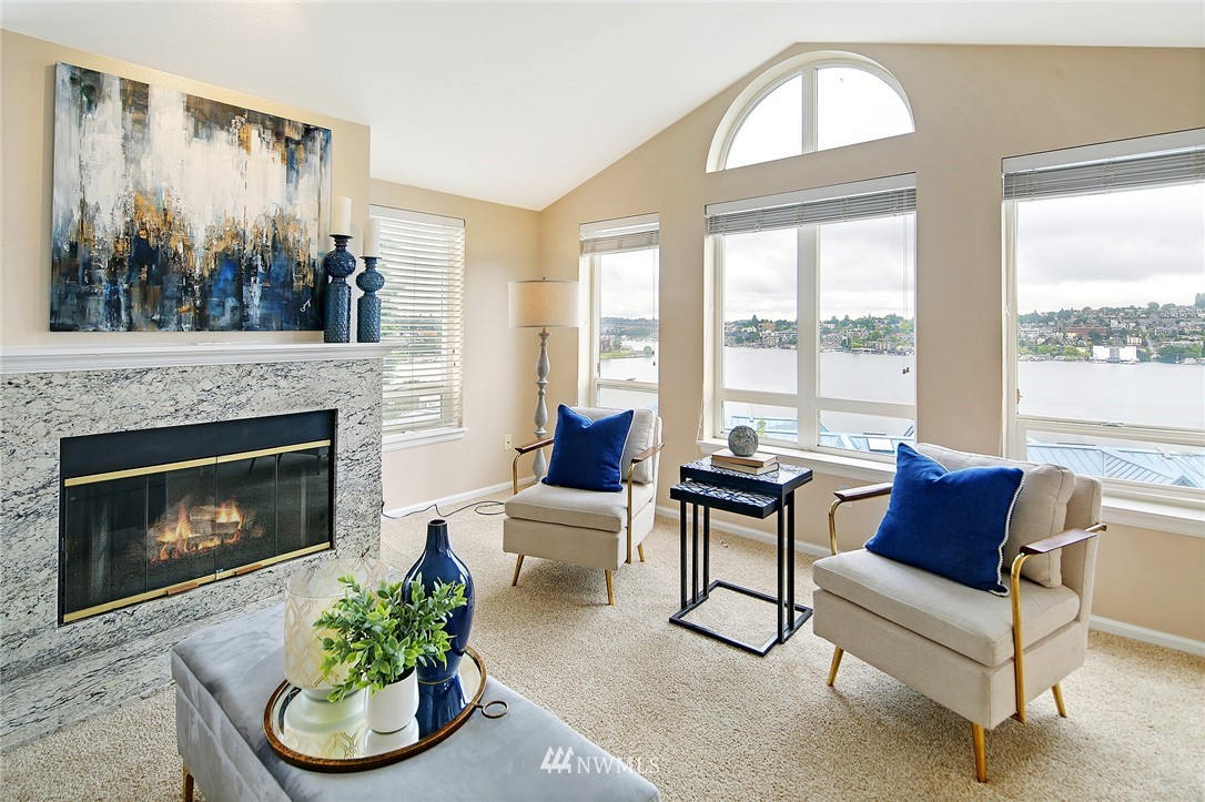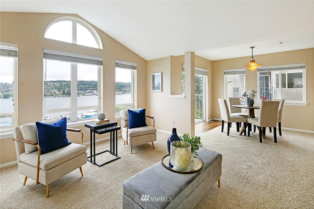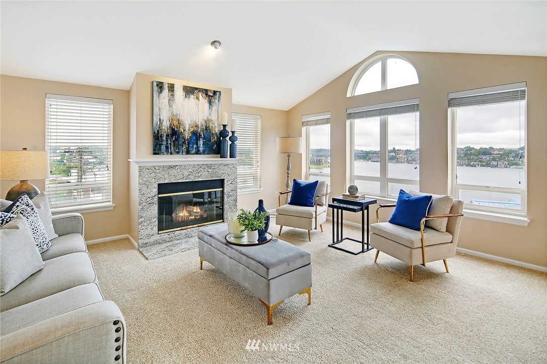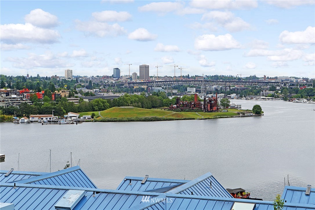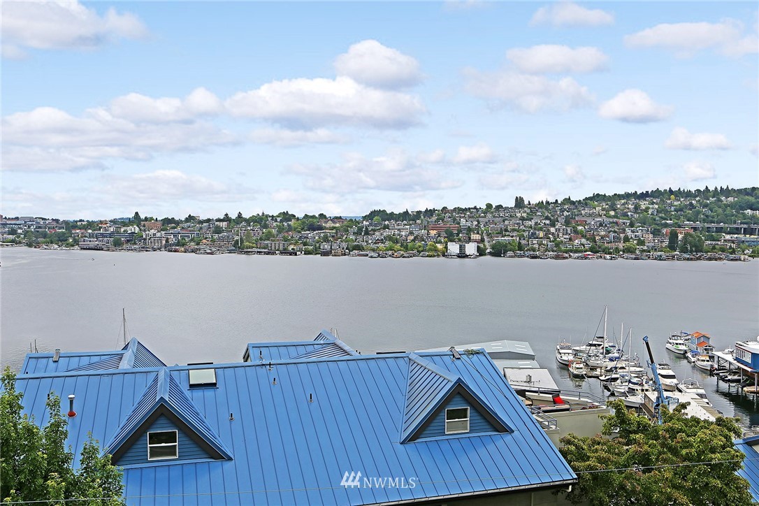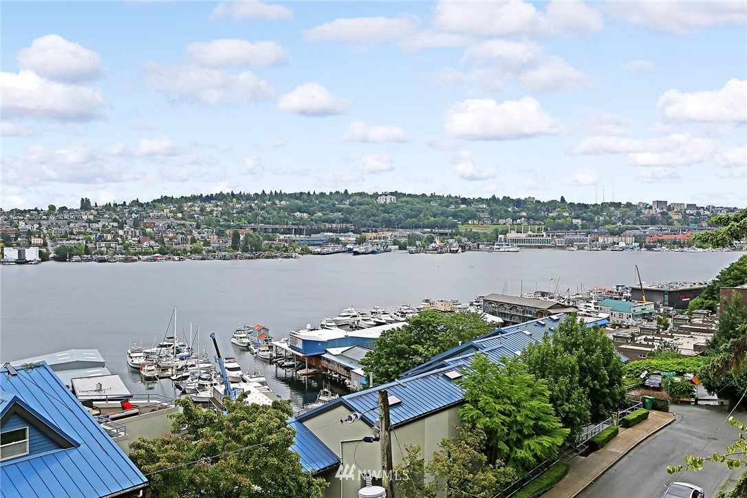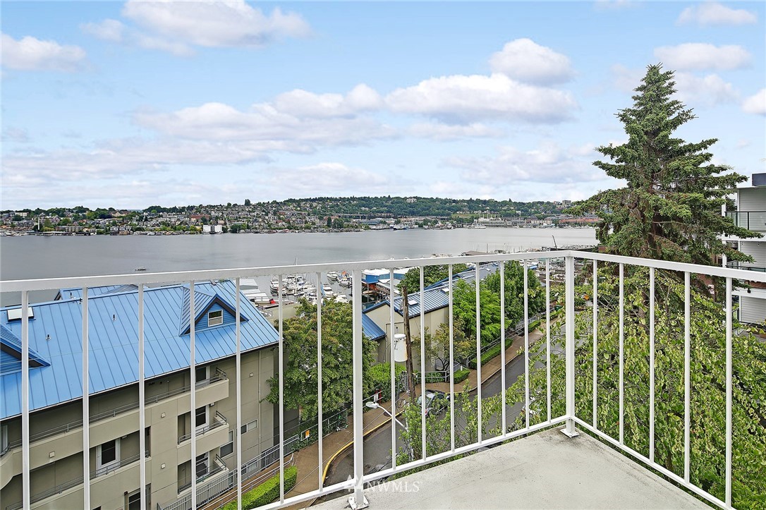 Enjoy a pageant of views from this stunning one level top floor condominium on coveted lower Queen Anne, just minutes to the vibrant downtown and Amazon's headquarters. Bask in the morning sun as it comes up over Capitol Hill and reflects off the crystalline waters of bustling Lake Union as you sip your coffee on one of the two balconies. You will be front and center for the 4th of July festivities and the cascade of fireworks at your feet. The great room has a wall of windows encompassing the lake and city vistas. Huge owner's suite with walk in closet. Both bathrooms have been updated. One covered parking spots in secure garage, storage unit and guest parking. This is the perfect investment property or simply a lovely place to call home!
