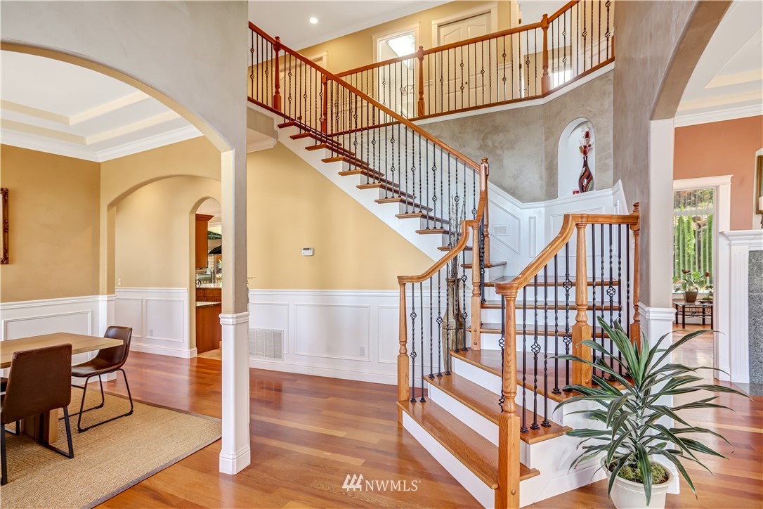 Mediterranean 2 story + fully finished MIL w/second kitchen w/granite counters, 1 bedrooms, 3/4 bath, living room & outside level access! Can be use as rental unit. Upper levels feature 4 bedrooms (total 5), 2 3/4 bathrooms (total 4), chef's kitchen w/granite & stainless appliances, hardwood floors on main & upstairs, A/C, beautiful custom wrought iron railings. Vaulted Entry Lobby, Inviting Living & Dining Rm, 2 fireplaces, huge laundry & office on main. Kitchen Island With Granite Slab, Custom Cabinet. Family Rm with Gas Fireplace Fully fenced backyard.