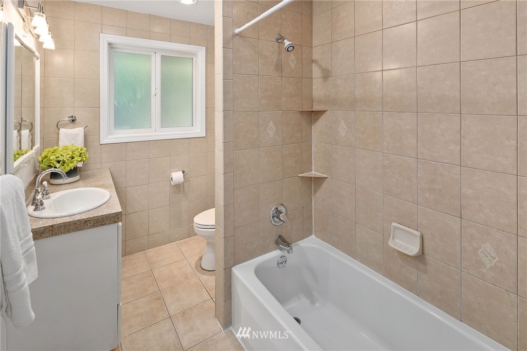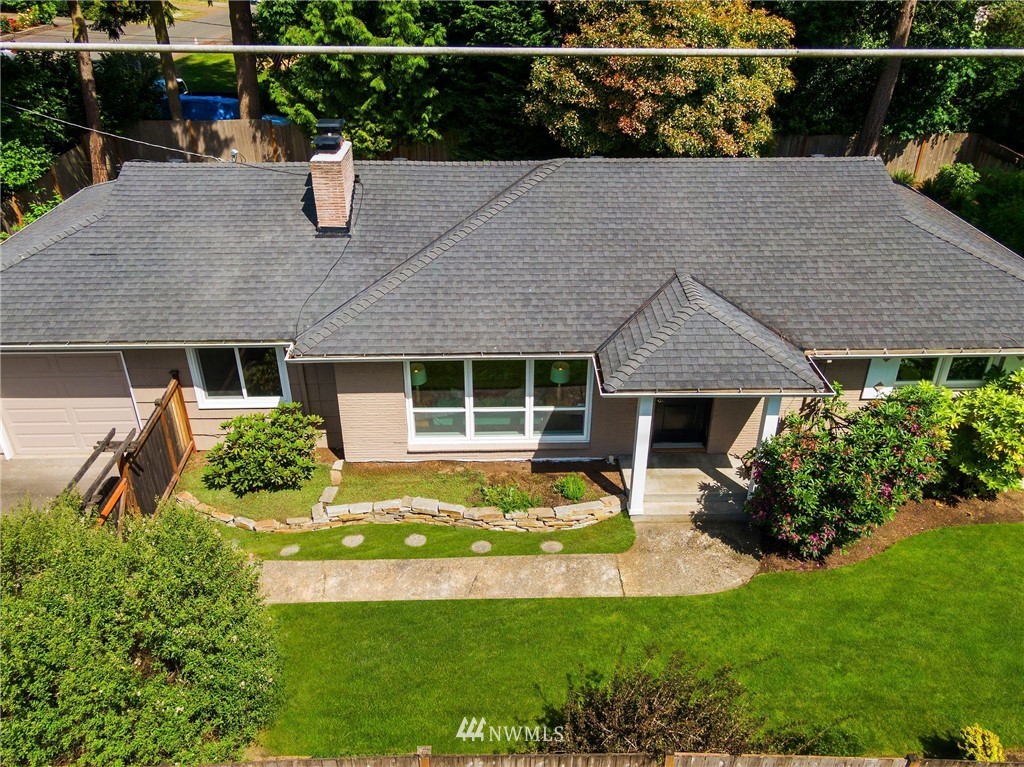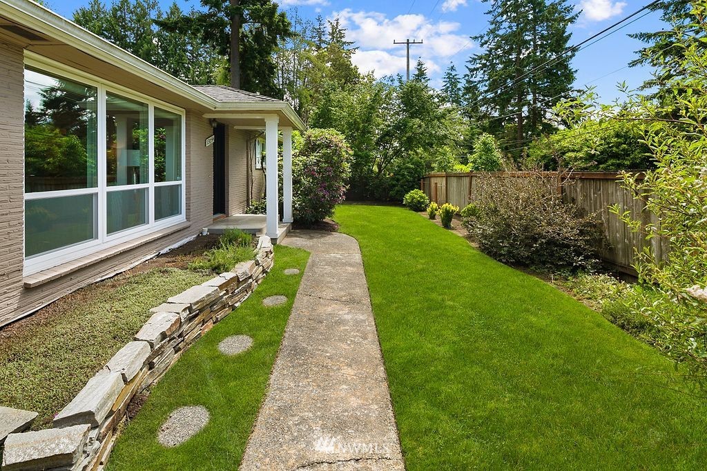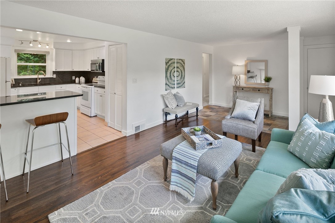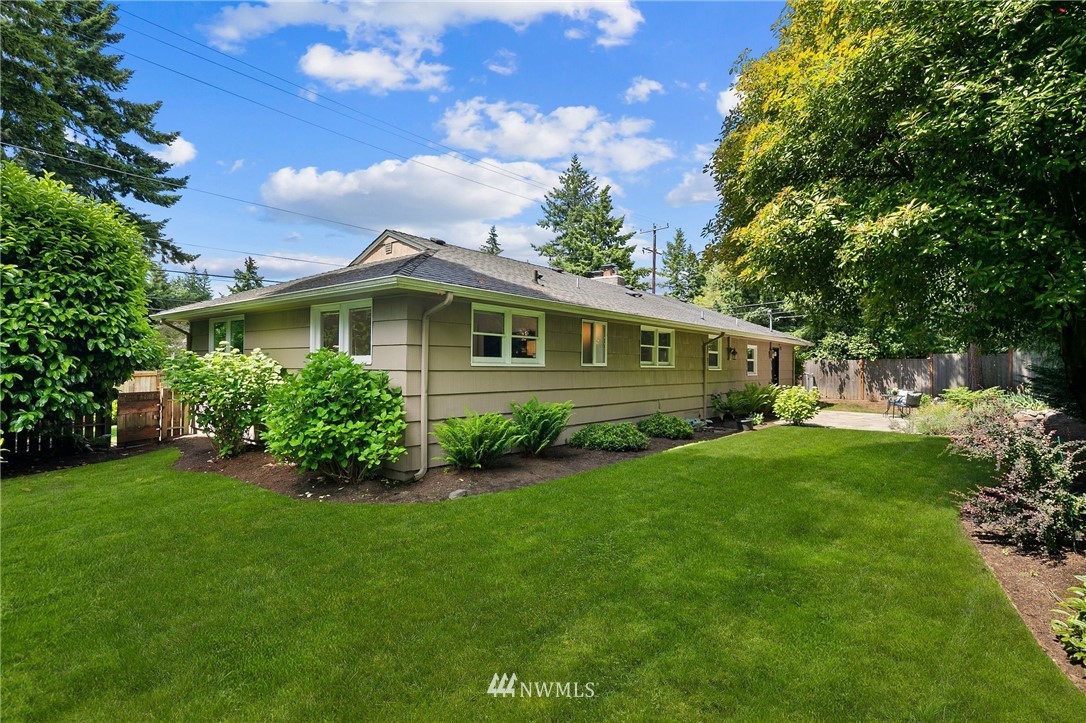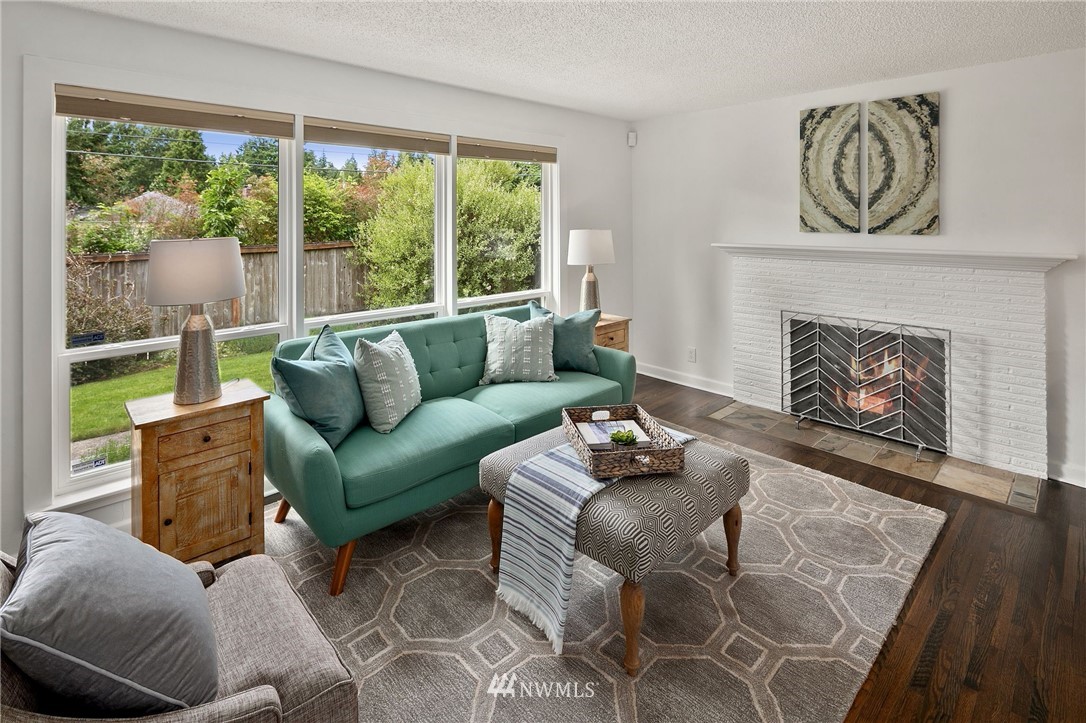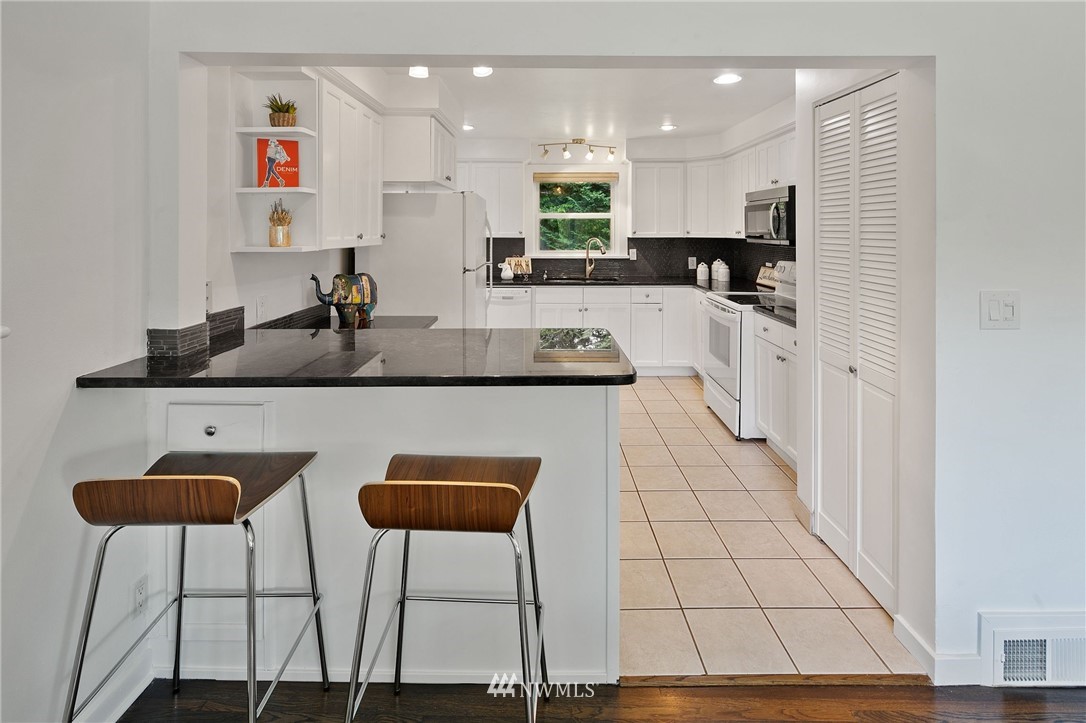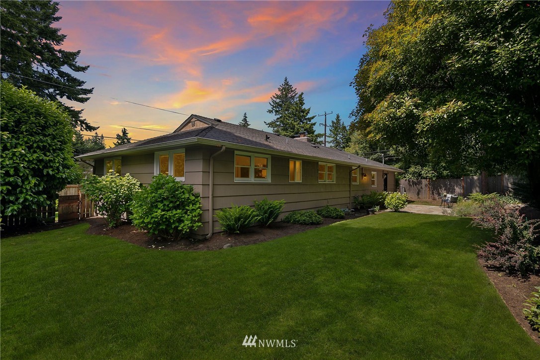 This supremely livable & freshly updated Olympic Hills rambler is situated on a desirable corner w/ lush landscaping. Upon entering you are greeted by the inviting living room that is flooded w/ warm western light & dark stained wood floors. The kitchen was designed w/ entertaining in mind & features quartz counters, painted cabs & designer backsplash. Bonus room offers multi-use potential as zoom office, media, or work out area. The bedrooms are generous in size & offer fresh paint, new carpet & are serviced by a nicely appointed full bath. Fully fenced yard w/ rear yard patio. 1 car gar w/ 2 car off-street parking. Super desirable & walkable neighborhood is conveniently located to shopping, restaurants & is an easy commute to downtown.