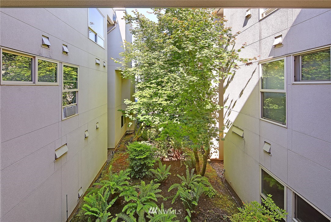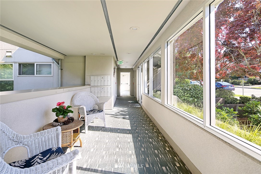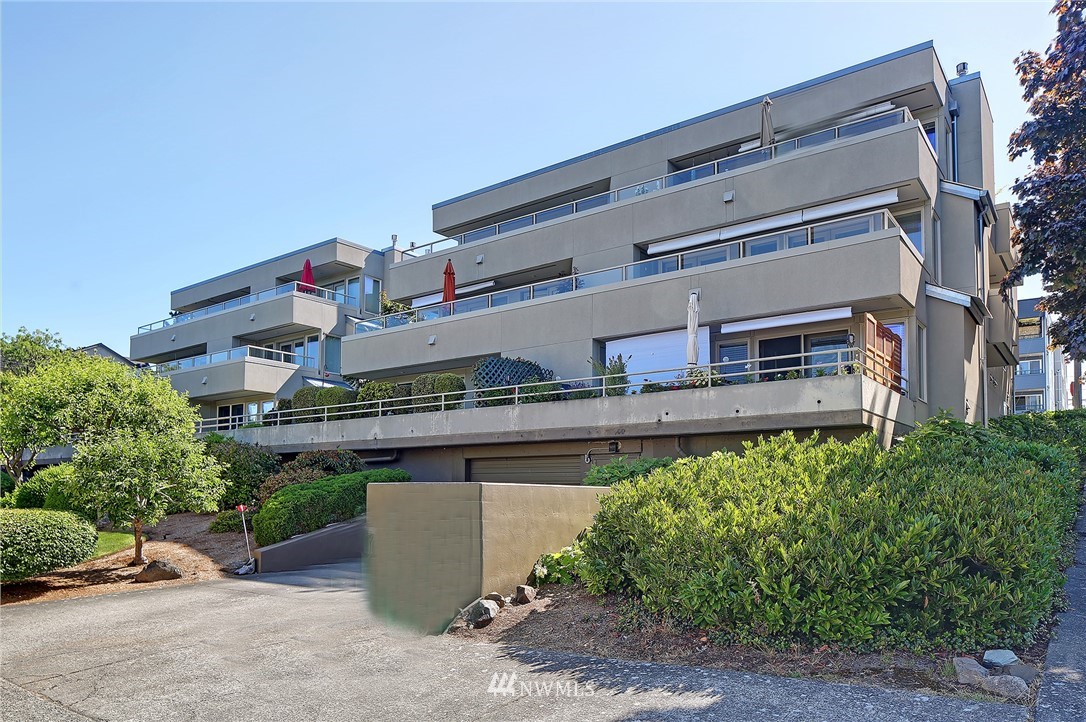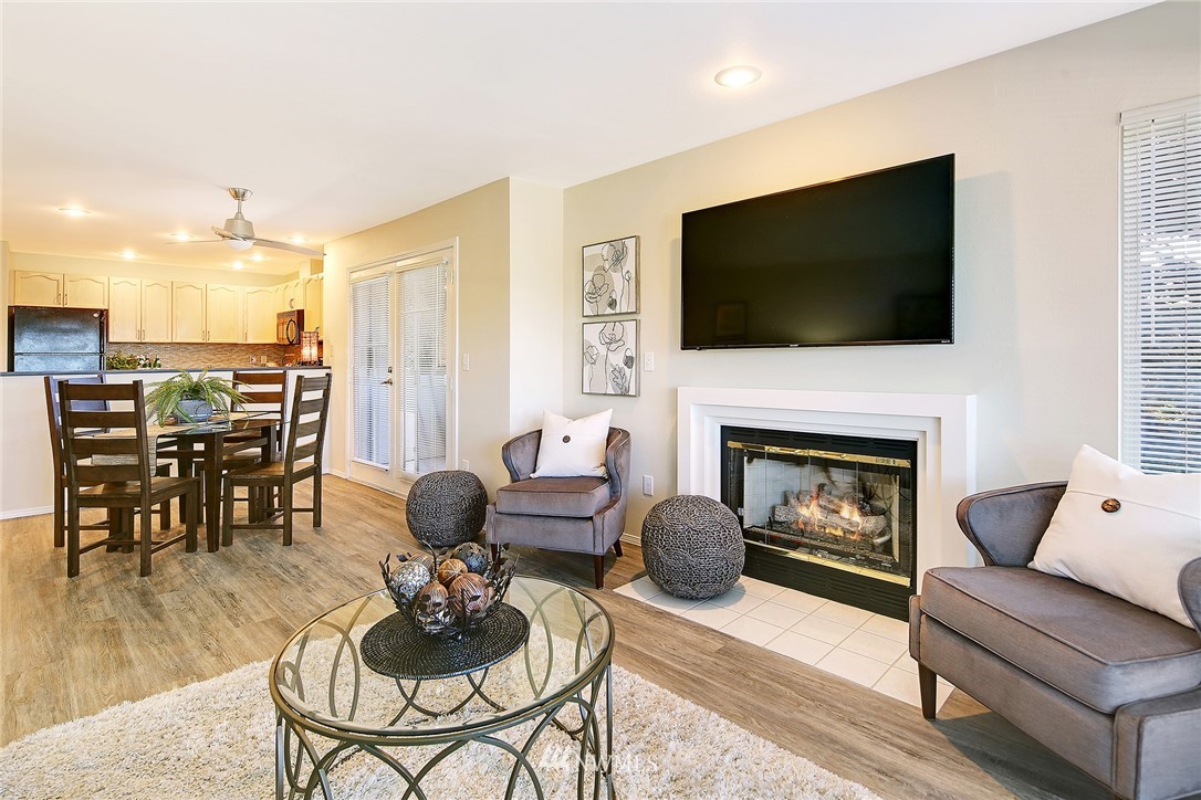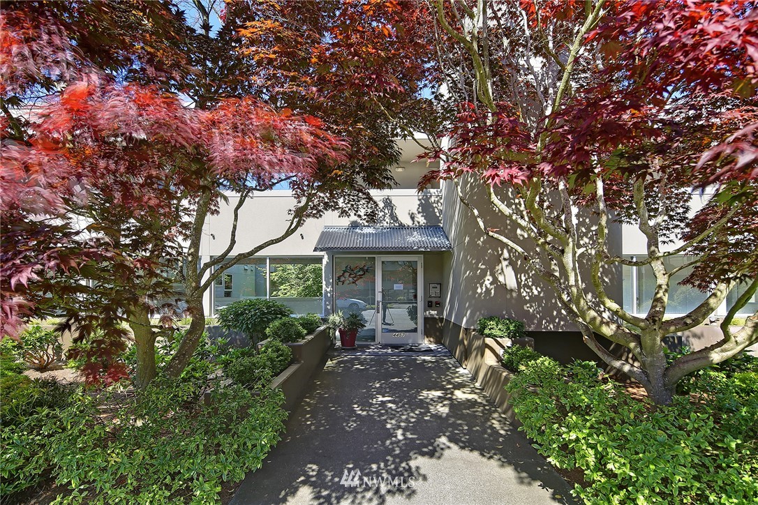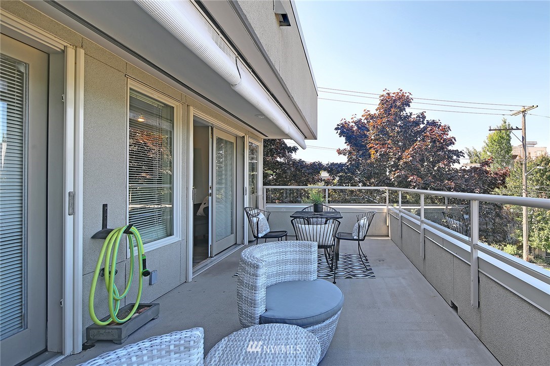 Stunning corner unit w/2 bedrooms, 2 baths w/den & 2 decks. Newer plank flooring & lined w/large windows & an abundance of natural light. Guest bdrm, office, guest bathroom & separate laundry rm. Open living area & large chefs kit w/generous amounts of cabinet & counter space. French doors off the dining area lead you to the first deck. Living rm w/gas frplc & 2nd set of French doors leading outside to large deck offering lots of room for furniture & BBQ while you dine al fresco. Travel back inside to the master bdrm featuring a custom walk-in closet w/built ins, ensuite bath w/stunning glass shower. Secure covered garage, 2 large designated handicapped parking spaces & one w/Electric Car Charger, strong HOA & 1 block to WS Junction