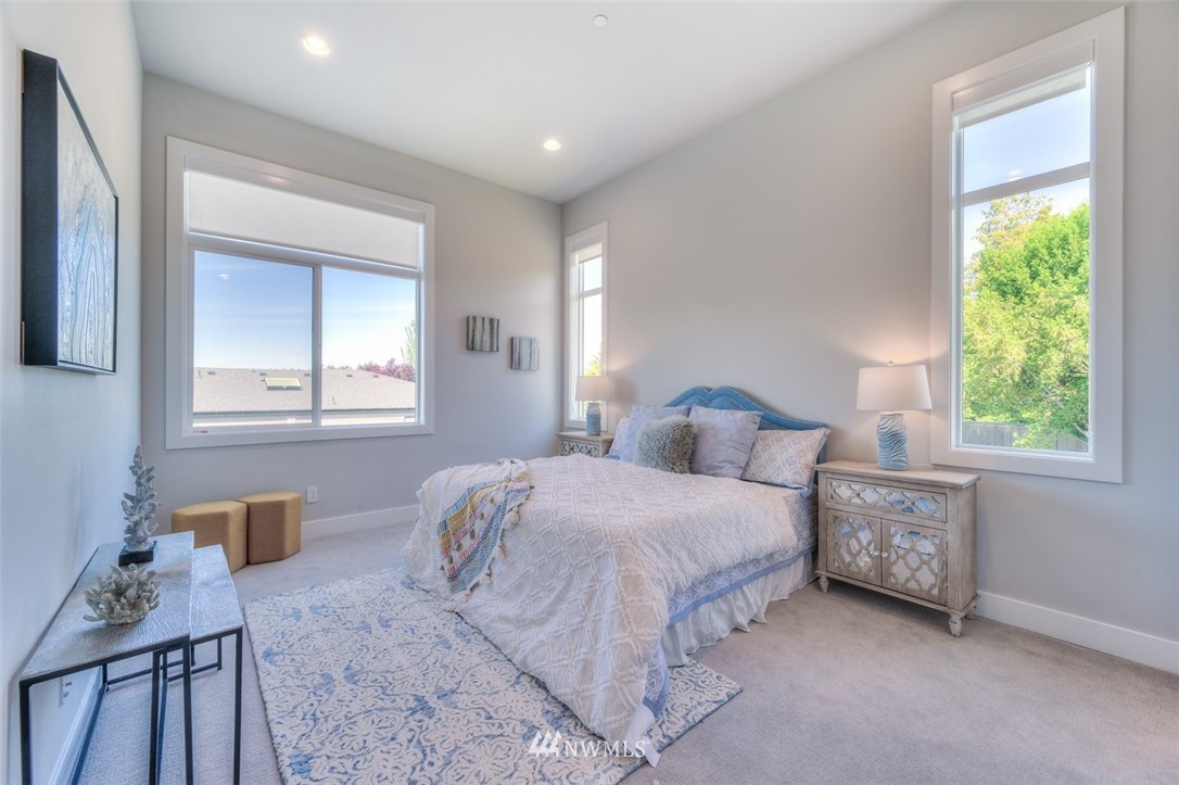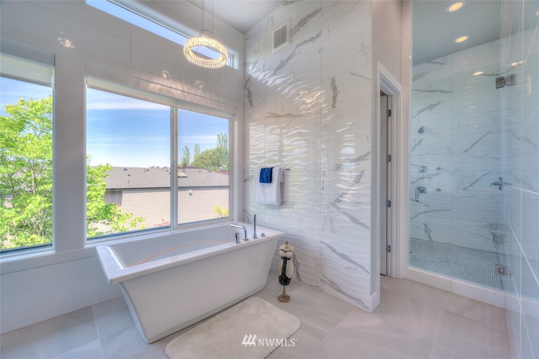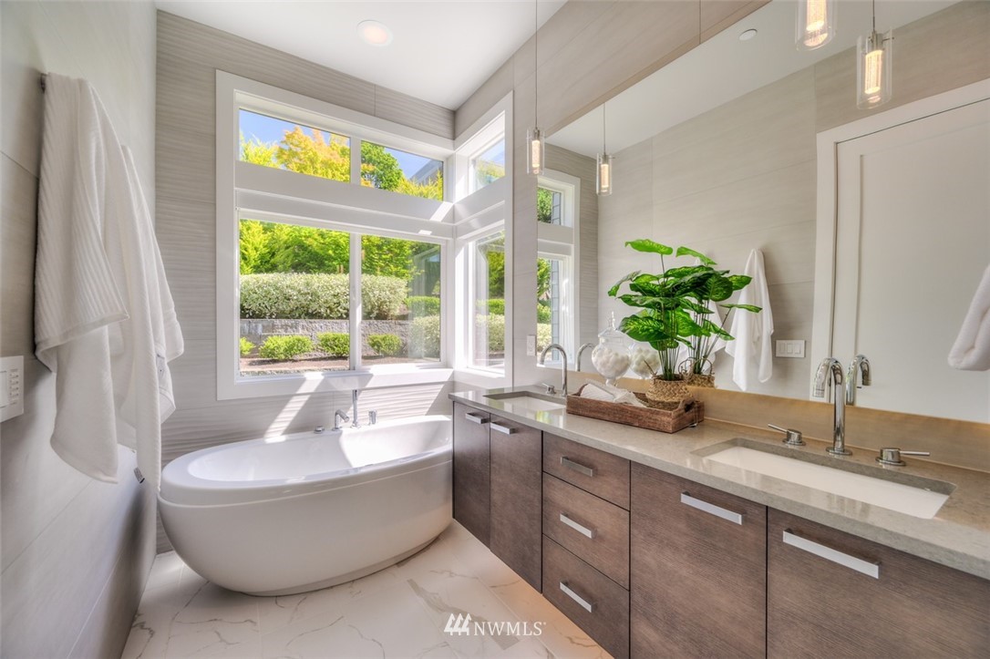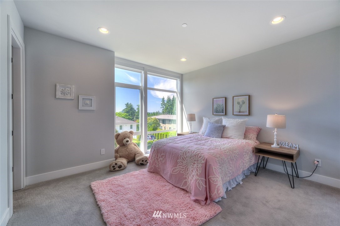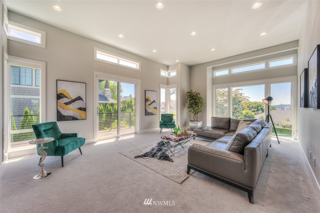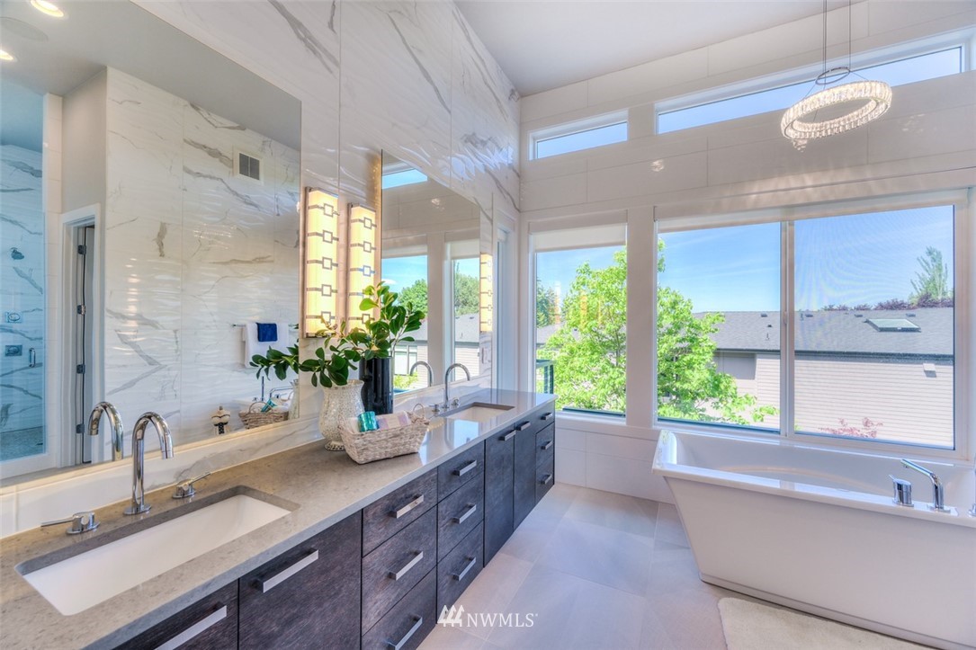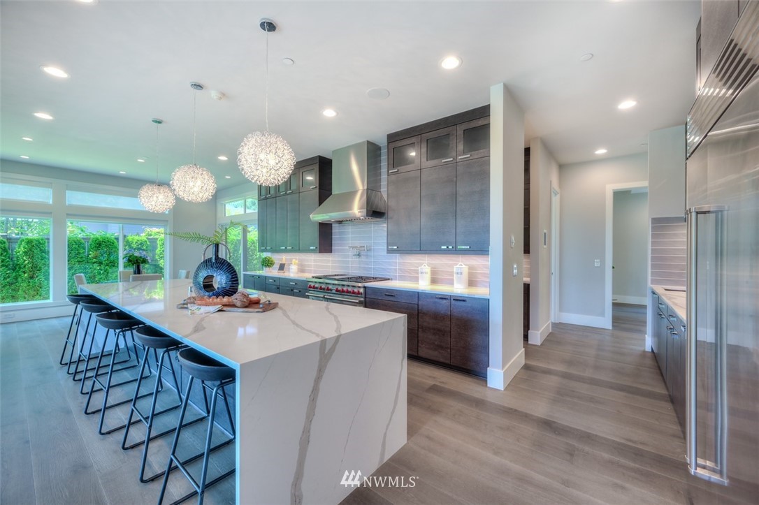 Stunning Contemporary MN Custom Homes on a private road. Green Home & Smart Home features throughout: solar panels, metal roof, electric car charger, Alexa enabled garage doors, lights+power & much more. Main floor includes a guest suite, two home offices, Sub-Zero/Wolf appliances, kitchen with eat-in area 2 heated outdoor living areas. All en-suite bathrooms! Upper floor Master Suite includes a fireplace, private deck, giant walk-in closet & spectacular Bath and separate laundry equipment. Additional recreation rooms include a Theatre and bonus playrooms and deck. Mountain and Lake view on the upper floor. Nationally ranked Bellevue Schools.