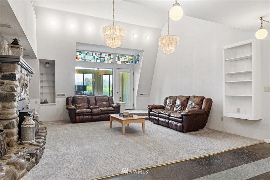 Room for all you ever dreamed in this unique home on a 10+ acre double lot! Imagine over 6000 sq ft of living space, including 4 bdrms (per county), 1-3/4 baths, plus another shower & sink in utility room. New carpet throughout & new kitchen floor. Custom stone fireplace and vaulted ceilings highlight the living room. Large kitchen includes eating space. 2 bdrms on the main, and 2 upstairs, including the vast master suite. An open mezzanine between floors leads to the roughed pool/game room. Enjoy the sun room year-round, and get out in the garden on nice days. Own this generous slice of peace and privacy!