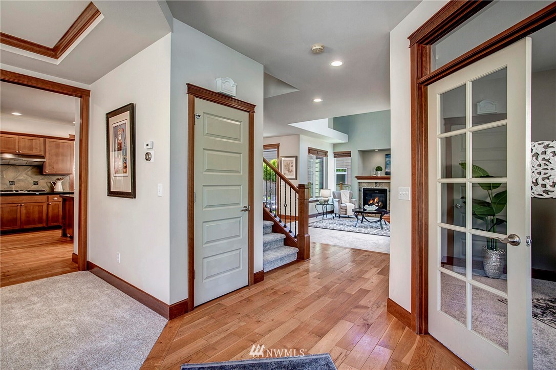 Meticulously built & designed 2600+ 4 bed 2.5 bath home + office/den. Tons of natural light, great room w/ soaring 2-story ceilings, windows galore, pre-wired media center & gas fp. Gourmet kitchen w/ granite, enormous island, SS appls, wine cellar/cooler, & pantry. Formal DR w/ tray ceilings, office/den, 1/2 bath, & utilities on the main. All 4 beds up incl. master retreat w/ vaults, gas fp, 5 pc bath w/ soaking tub,& huge walk-in closet. All this &, 2-car garage, real wood trim/blinds, NEW carpet & exterior paint. Fully fenced backyard, corner lot, In a quiet cul-de-sac, on the Kirkland Border, close to park & ride, Saint Edwards & Burke Gilman Trail.