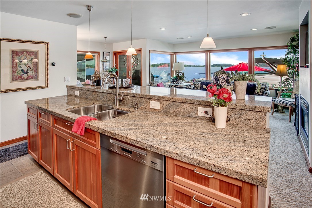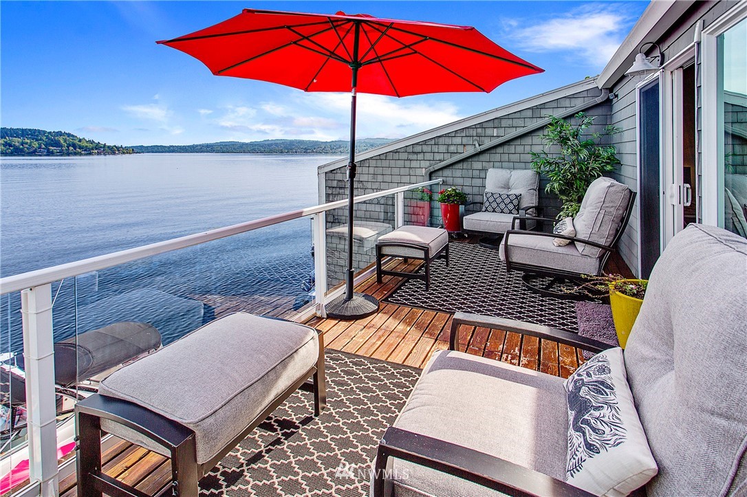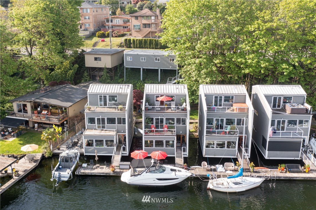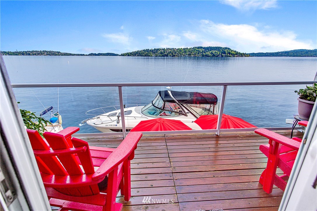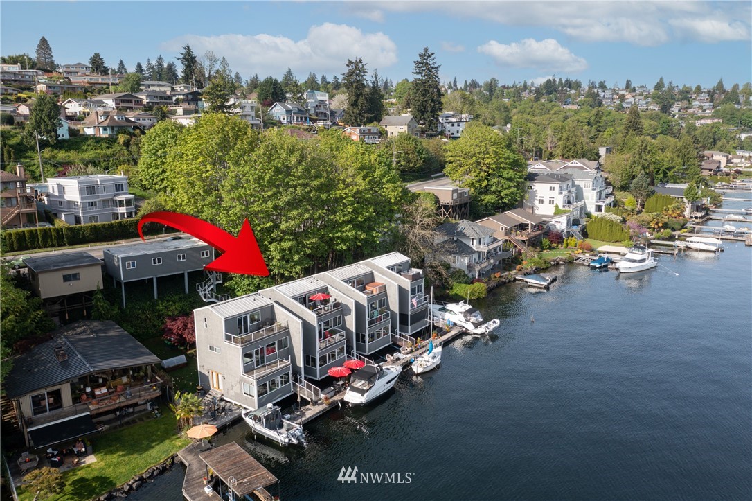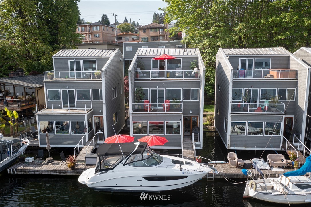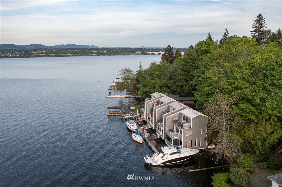 Join the lucky few that enjoy life on the shores of lake Washington with this extraordinary detached freestanding three level home perched over the water in a gated community. This home has 2 bedrooms, 2.5 baths and walls of windows w/endless views of Lake Washington & AC! Entry level has kitchen w/pantry, dining, living and 1/2 bath. 2nd level includes master bedroom, sitting area & full bath (currently used as a family room). 3rd level has bedroom with walk in closet and 3/4 bath. Each bedroom has private view deck. Secure garage space & Storage unit is included. Community has lock and leave feel with secure limited access and common area maintenance. Home has dock & moorage outside your back door as your gateway to water bound adventures