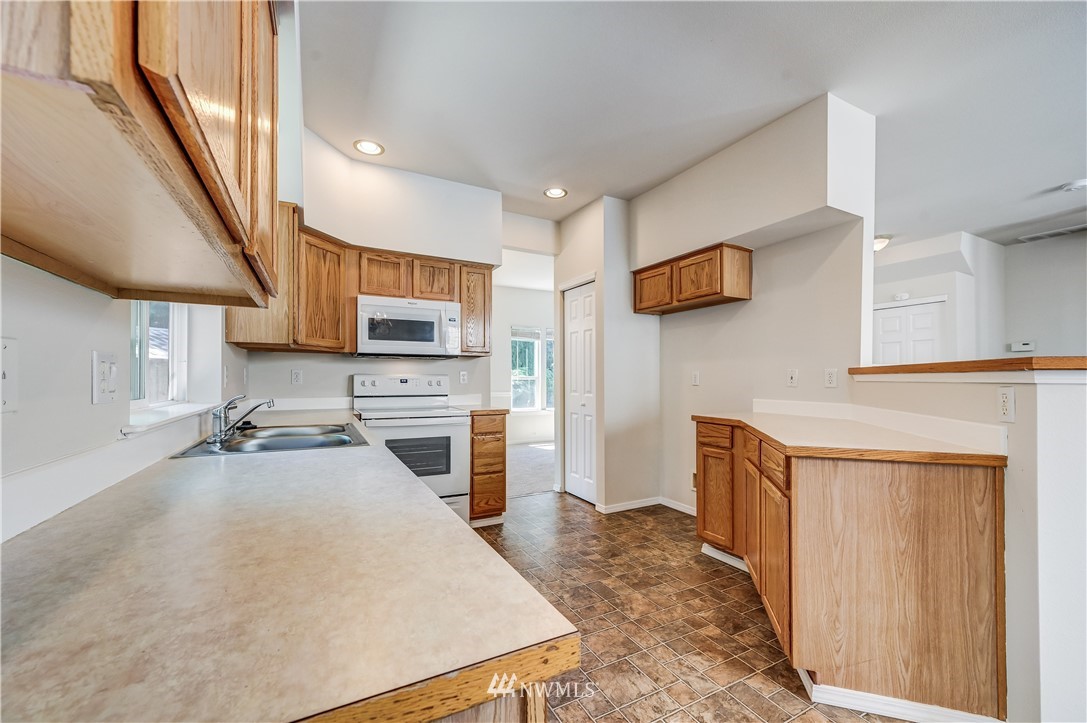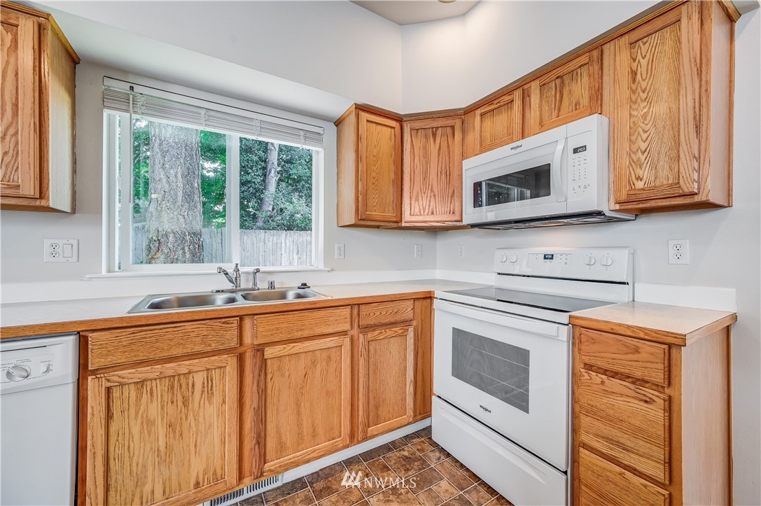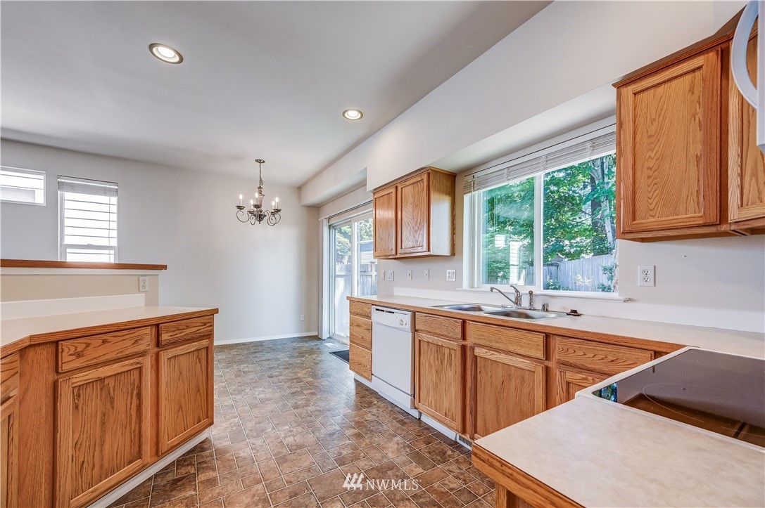 Updated & well-kept home in quiet neighborhood. Open floor plan, formal dining room & living room with vaulted ceiling perfect for entertaining. Cozy fireplace in family room. Spacious kitchen with eating bar. Fully repainted exterior and interior including doors & millwork. New carpet throughout. Master suite features ceiling fan, 5-piece bath with soaker tub & dual closets. Tranquil back yard with large patio. Northshore schools! Great location with easy access to I-405. A must see!