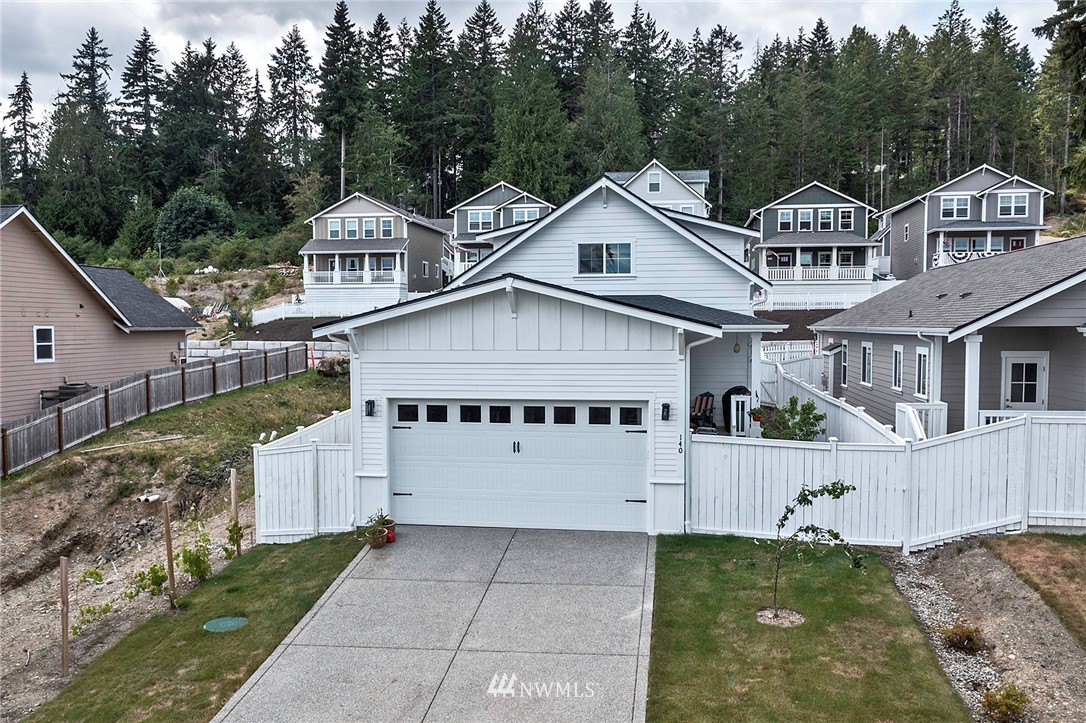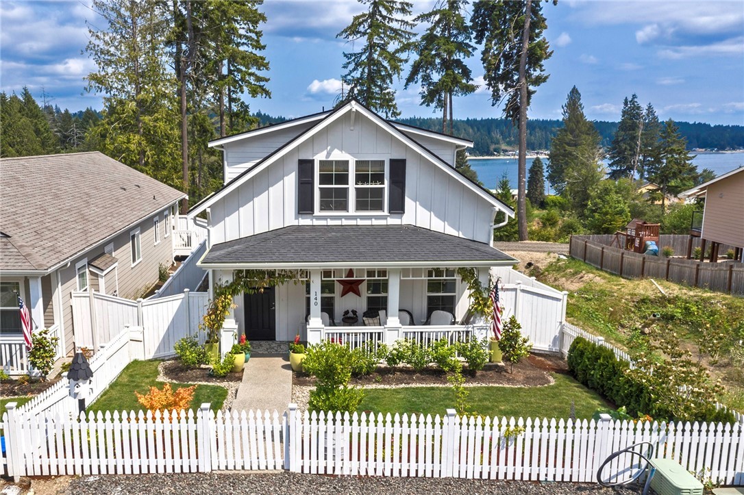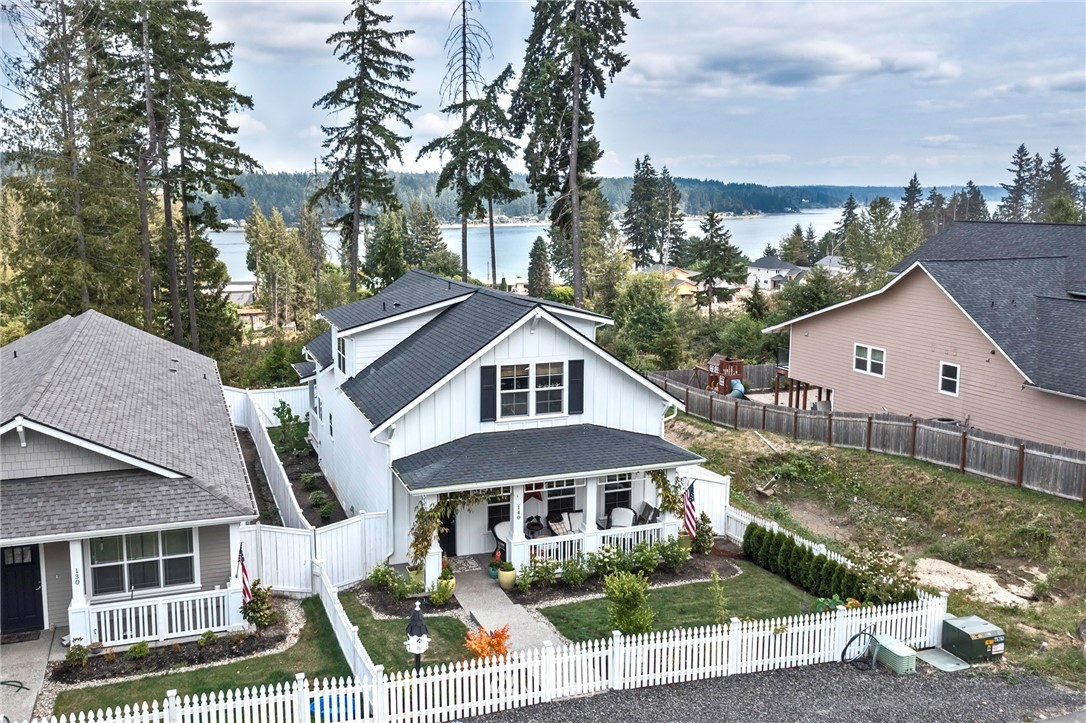 Modern Farmhouse at : The Cottages at North Bay Village! Allyn's newest neighborhood. Two story w/master on main, 2 add bedrooms, den & bathroom-upper-enjoy a view of the Sound &Mt.Rainier. Quartz countertops throughout, white cabinetry, 9 ft ceilings, wide planked hardwoods, upgraded electrolux stainless oven, upgraded freestanding tub, upgraded lights fixtures, tankless water heater & heat pump. A storybook setting of days gone by... this is a community of charm & quaint homes with white picket fences, covered front porches, covered back deck, w/fruit trees. Old fashioned street lights coming in 2021. Two car garage around back. Soundview & view of Mt.Rainier located in Allyn. Feel like a paddle in the bay bring your kayaks. 2/10 warranty