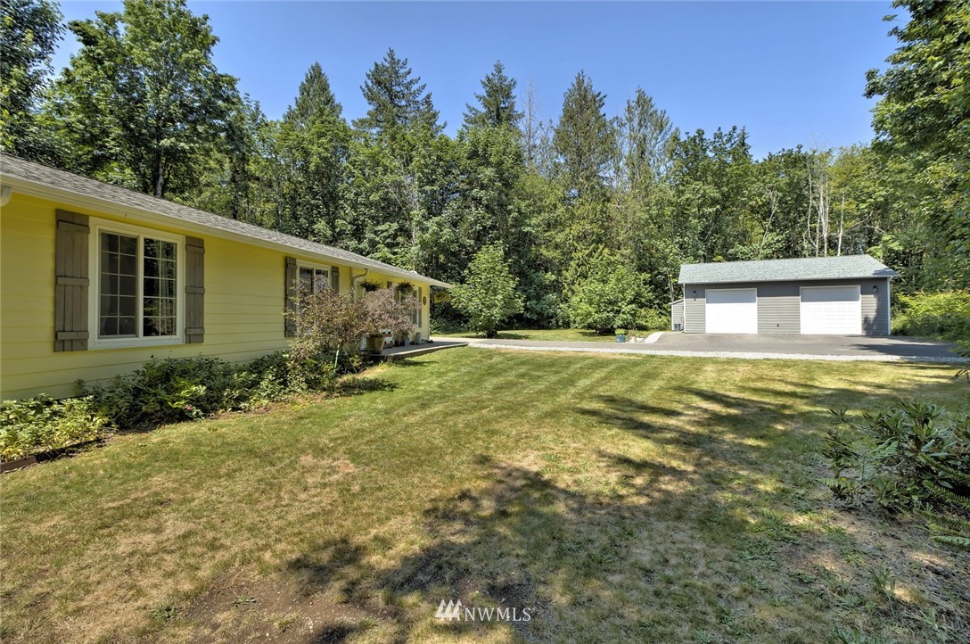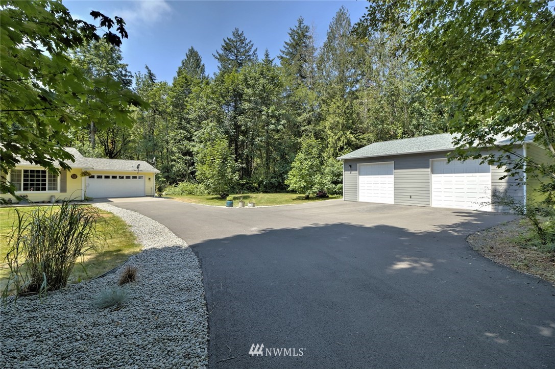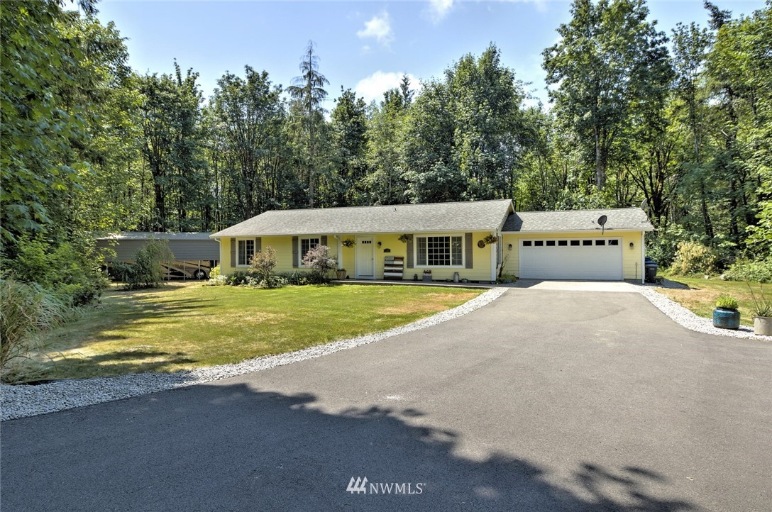 The country home you've been looking for! This 3 bedroom, two bath rambler is situated on 1.56 wooded acres on a quiet paved lane just 5 miles from town. Features include open design interior with vaulted ceilings, durable vinyl floors, maple kitchen w/eating bar, spacious master suite with walk-in closet. Outside you will find an amazing detached 42' x 33' shop complete with hoist, 14' ceiling and two 12' high doors. Large private stamped concrete patio w/ fire pit and 20' x 45' canopy with 30 amp service for your RV. Paved driveway, attached double garage, nicely landscaped, private and secluded.