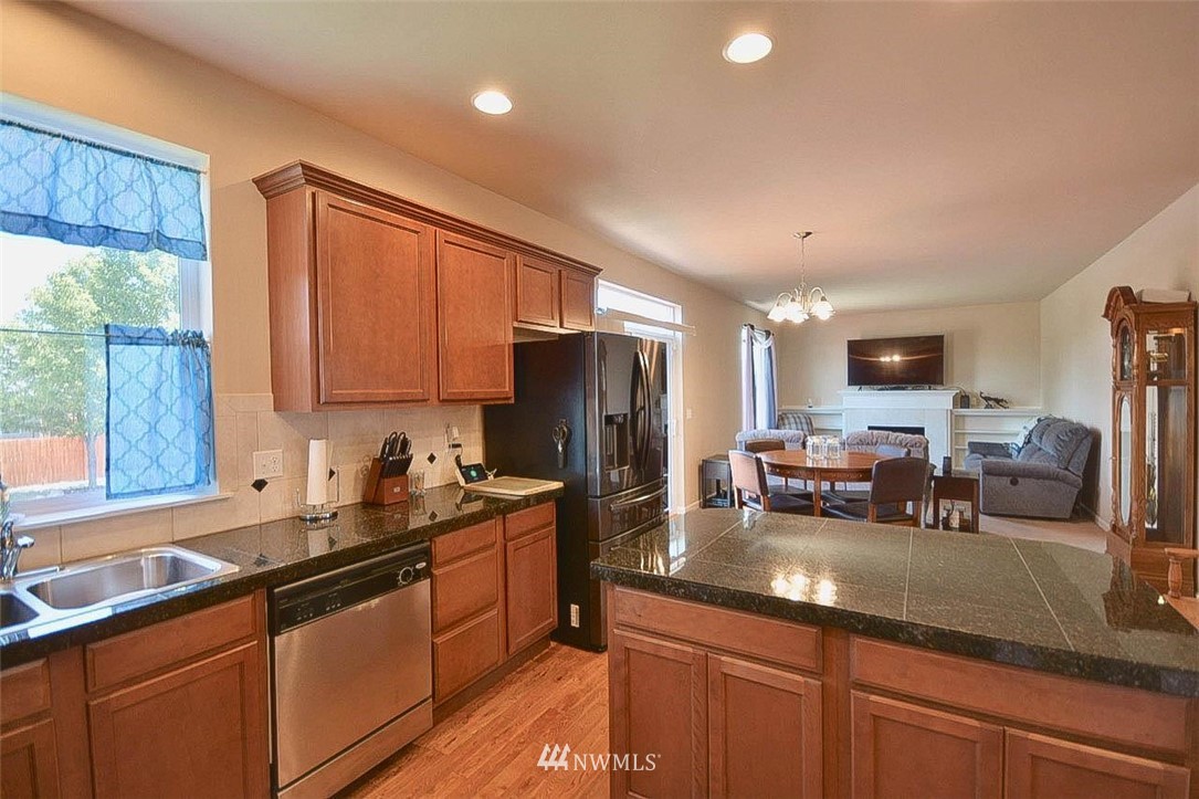 Come see this 5 bedroom 2.5 bath over 2600 square feet home. Beautifully maintained Mountain Shadow home. Pride of ownership is evident. Open floor plan, Kitchen w/ island, pantry and room for breakfast table. Enjoy living room with gas fireplace, another large living room / dining area. Huge Master suite with Fireplace and 5 piece master bath. Front and backyard is finished with landscape curbing, backyard is fully fenced. AC/heat Pump. Close to the heart of town, JBLM. A must See!