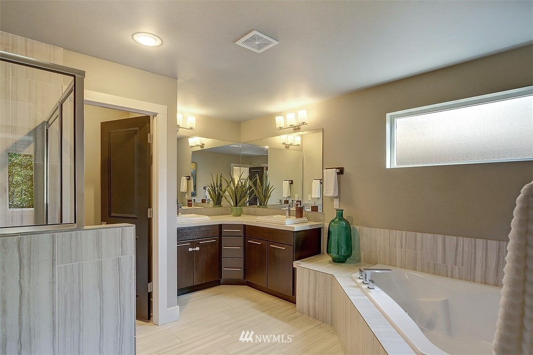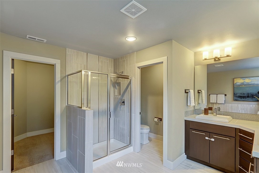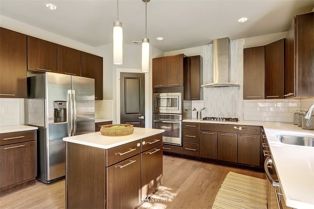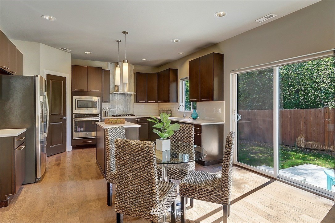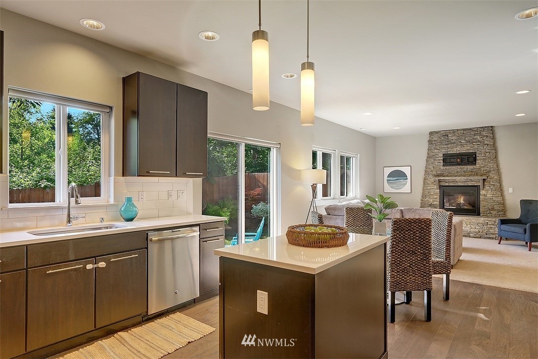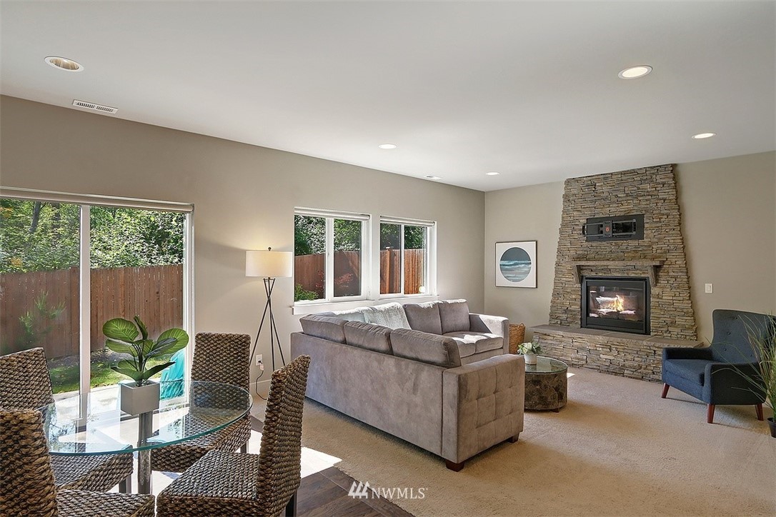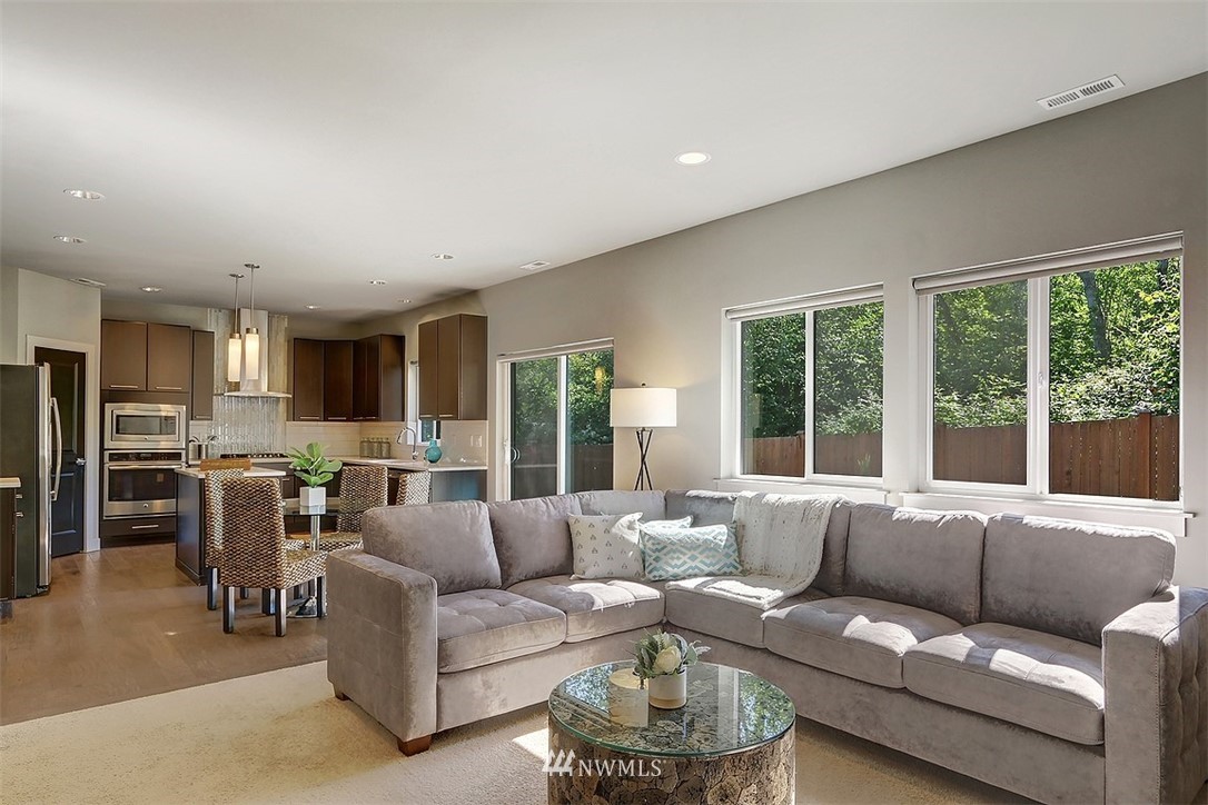 This modern east facing craftsman style home in Bothell's Jordan Creek community will not disappoint. Built in 2015 on a large 5227 sq ft cul-de-sac lot backs to HOA open space! Thoughtful layout w/inviting living rm & dining rm, tall ceilings & white trim t/o. Sunlit family rm w/curved stone gas FP, spacious kitchen w/expresso cabinetry & designer hardware, quartz counters, breakfast bar island, pendant lighting. The household chef will appreciate the SS appliances including newer 5 burner gas stove w/professional vent above, full height subway tile back splash, designer glass inset over the stove & walk-in pantry. Luxurious primary suite w/spa-inspired bth, 3 additional bdrms share a full bath. Sunny fully fenced yard. Northshore Schools!