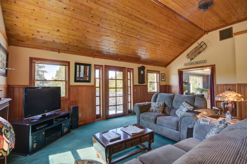You’ll fall in love with this rare gem nestled on a hill top in Cornet Bay! A private bridge leads you thru the mahogany front door & into this 3 bedroom, 2.5 bath home. Exquisite wood craftsmanship boasts cedar plank ceilings & old growth fir interior doors. New carpet!! Additional kitchenette on lower level. Enjoy breathtaking views of the bay from your master bedroom balcony or spend time exploring your neighborhood located next to Deception Pass State Park! Don't let this pass you by!