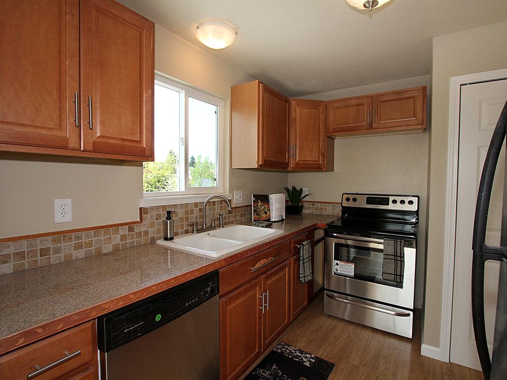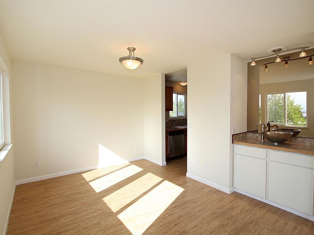 Peek-a-view PENTHOUSE condo in desirable West Seattle. 12 foot ceilings, very light and bright, laminate wood floors. New exterior siding, vinyl windows, roof and walkways. Secure gate for entry. Newly painted interior, new front door, new flooring and new stove too. All ready for a new buyer, so come and see today. Centrally located on California Ave close to shopping, and easy access to freeways.